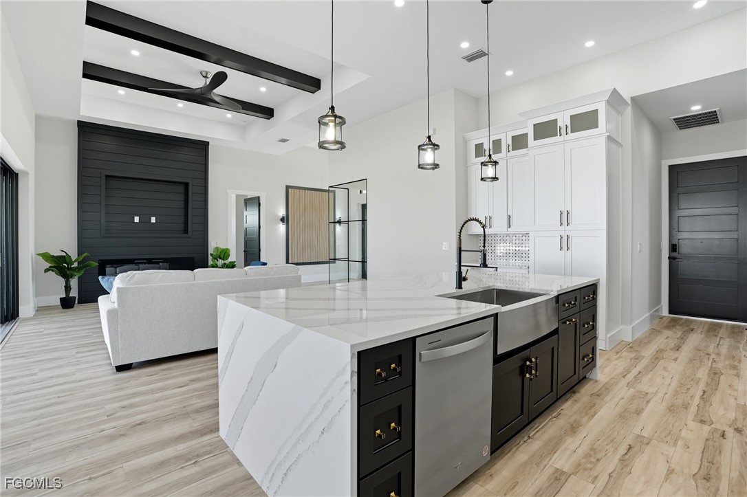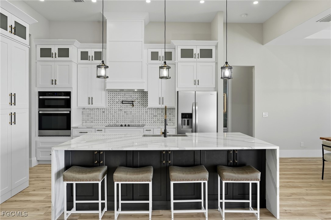 This Toto Custom Homes model home is a 3 bedroom, 3 bath, den, saltwater pool home with a 3 car garage and all the bells and whistles. This is the builder's model home. 2195 Sq Ft od luxury finishes including solid wood cabinets throughout with Cambria Quartz countertops. The glass corner wall den with glass sliding barn door give this home the open feel for entertaining your guests. Hidden walk in pantry, full stainless appliance package including front loader washer and dryer with pedestals, double wall oven, 36" cooktop with vented hood. Frameless shower doors, 12' ceilings with 8' interior solid core doors. New vinyl PVC fence, flora-tam sod with sprinklers, epoxy garage floors, insulated impact garage doors with glass windows are just a few interior features. Behind the scenes are PGT windows and doors with 90-degree sliders, Standing seam metal roof, spray foam insulation, insulated exterior walls, whole house reverse osmosis system, 18 SEER HVAC, smooth finish walls and ceilings. Shiplap fireplace wall, porcelain baths and LVP flooring throughout the home. This house is a showstopper and will not last long at this price. 2-10 Builders warranty included. You do not want to miss this one!!