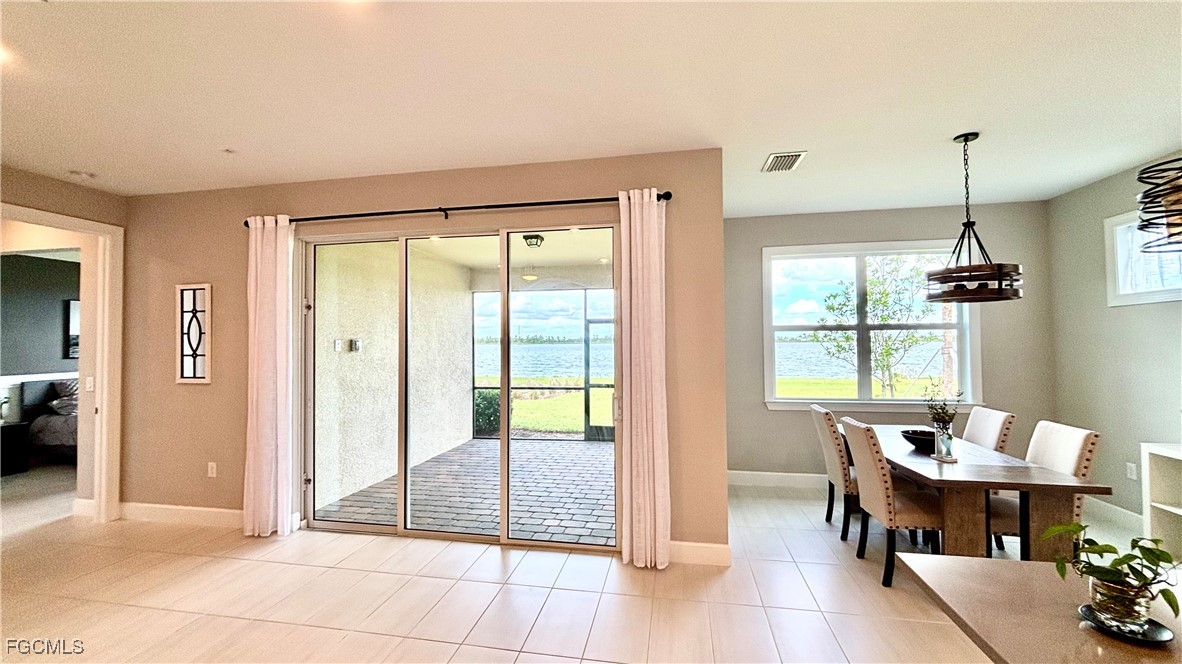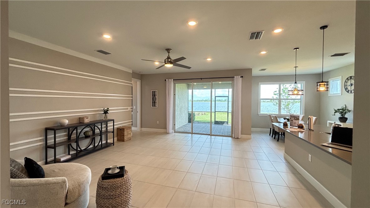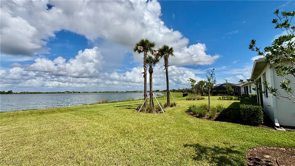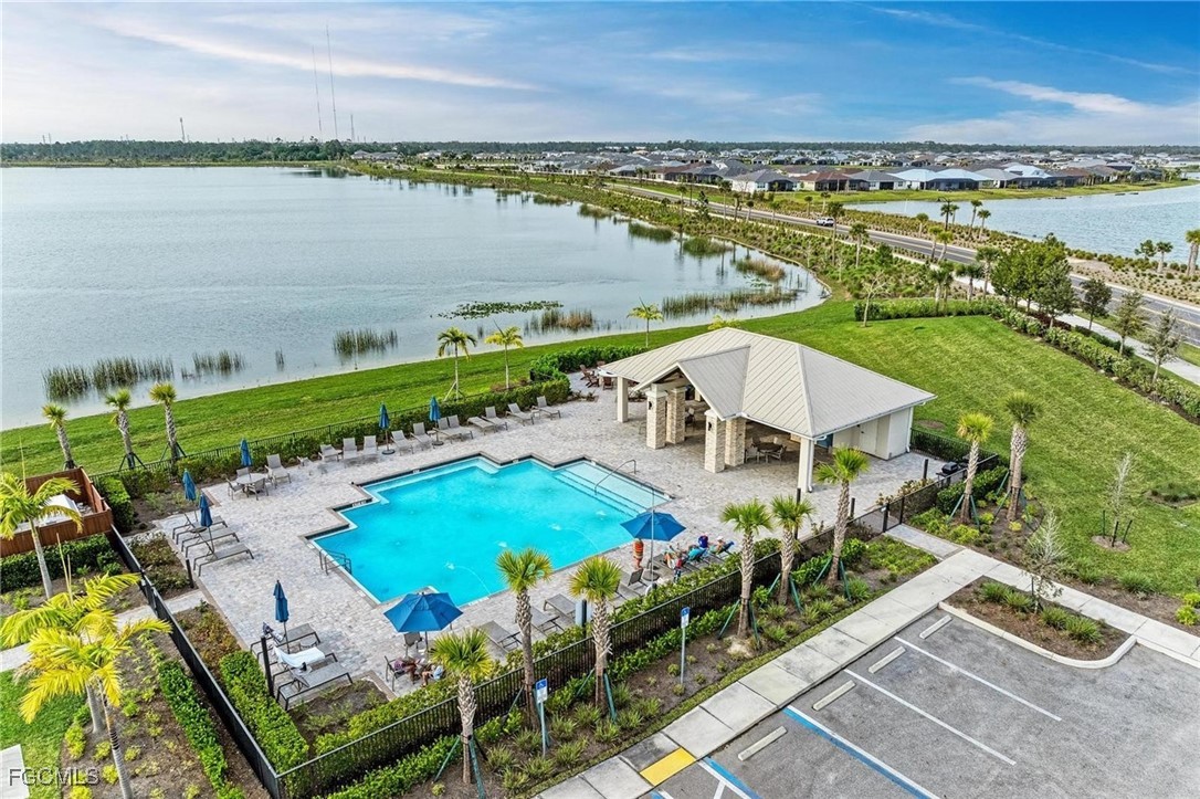PREMIUM LOT, .23 ACRES IN BABCOCK RANCH ON THE LAKE FRONT. 3 Bedrooms and 2.5 Baths with a 2 Car Extended Garage. Two bedrooms feature a private bath (one in the front of the house, one on the lake side- split bedroom floor plan for ample flexibility and privacy). LAKE VIEWS ARE STUNNING IN THIS HOME. Enjoy peaceful mornings, sipping coffee and watching nature right from your waterfront backyard. The extended 2-car garage offers plenty of room for storage, larger vehicles, a golf cart, or even a workshop, all enhanced by a durable epoxy floor for a clean, polished look and easy upkeep. Additional features include hurricane shutters for peace of mind, upgraded ceiling fans, custom lighting throughout, and solid wood interior doors. Inside, you’ll love the soaring ceilings, quartz kitchen island, stainless steel appliances, and a natural gas range—a chef’s favorite for precise cooking. Edgewater at Babcock Ranch is a gated community of just 168 homes, where residents enjoy exclusive access to a private pool, cabana, and fire pit—a perfect place to relax and connect with neighbors. Beyond Edgewater, all Babcock Ranch homeowners also enjoy two resort-style pools with lodges and countless amenities. Babcock Ranch is designed for an active, connected lifestyle. From dog parks, playgrounds, and sports courts to a new skate park, splash pad, and inclusive areas like Explorers Park, there’s something for everyone. Outdoor lovers can enjoy fishing at Lagoon Park, trails, and community events, while families appreciate the covered basketball and tennis courts at Palmetto Park. Practical features add to the appeal—underground utilities for storm protection, an HOA that includes lawn care, and a location 30 miles inland and 30 feet above sea level, providing extra peace of mind. Shopping and dining continue to grow, with Publix, Starbucks, Ace Hardware, Marshalls, Panera, Ulta, and more just a short golf cart ride away. This home truly has it all—comfort, style, and access to the best of Babcock Ranch. Don’t miss your chance to own in Edgewater! Call today for your private showing.