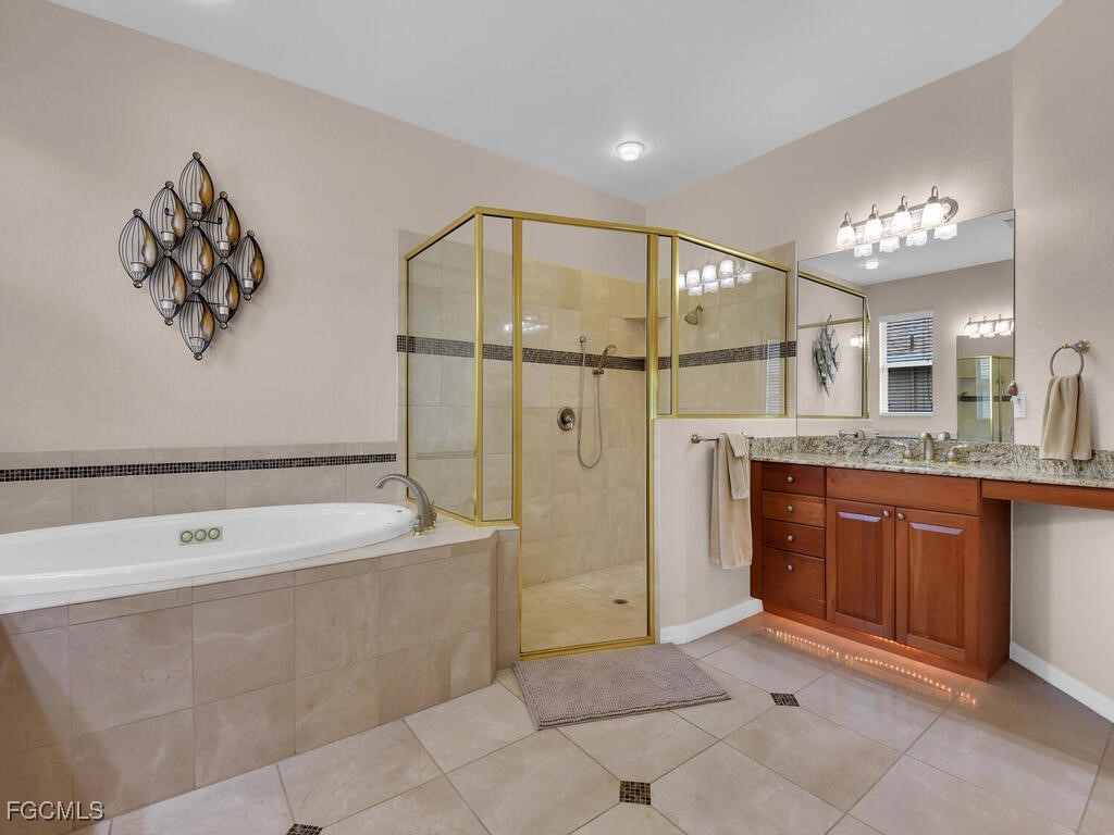 At the heart of the home, the kitchen features an expansive breakfast bar, cherry wood cabinets with custom pull-out shelving, granite countertops and a center island. Ideal for entertaining, the open great room with formal dining and soaring vaulted ceilings (9’4” to 12’), flows seamlessly through 8’ pocketing sliders to an expansive (1,327-square-foot) screened lanai and pool deck, perfect for hosting or relaxing under the Florida sun.