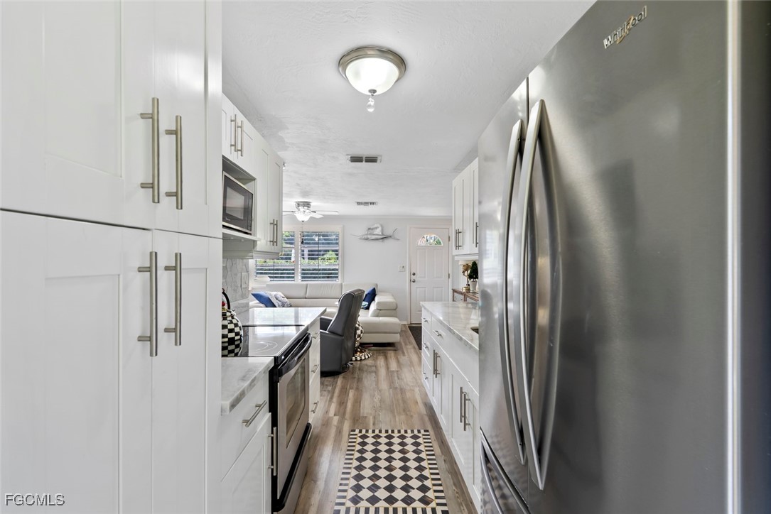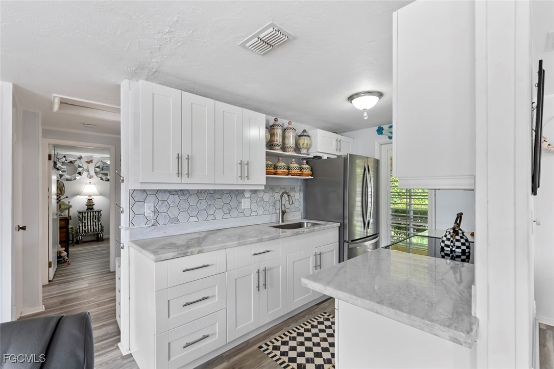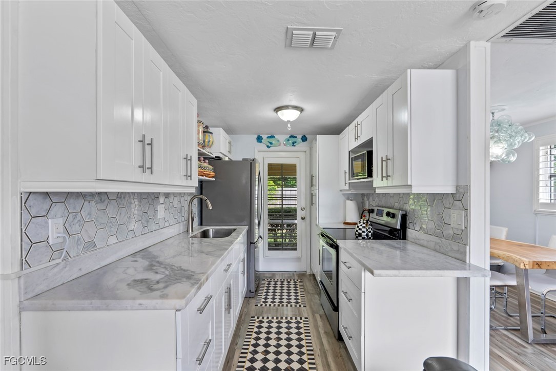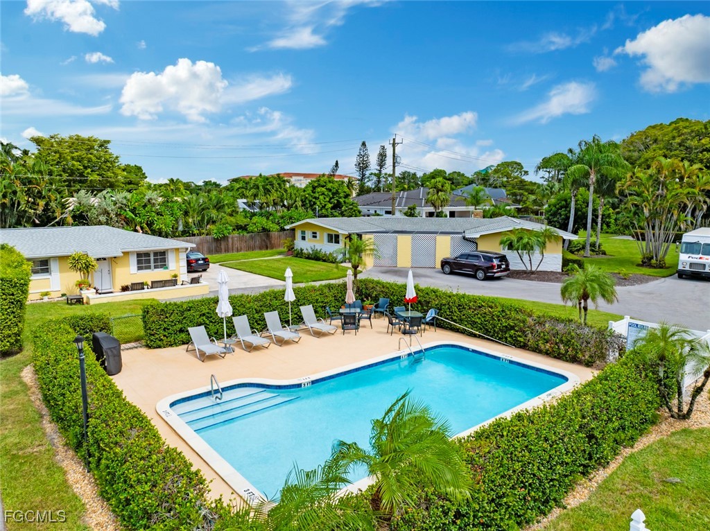 Highly desirable PARK SHORE area of Naples OUTSIDE FLOOD ZONE. This beautifully remodeled 2-bedroom, 1-bath condo is located just minutes from the pristine shores of SEAGATE BEACH. Inside, you’ll find a bright and airy layout with modern finishes, new laminate flooring throughout, and a fully renovated kitchen featuring granite countertops, shaker-style soft-close cabinetry, a stylish backsplash, stainless-steel appliances, and a separate room for washer, dryer, and water heater. The spacious bedrooms are designed for comfort and privacy with plantation shutters, while the updated bathroom showcases elegant upgrades. A BRAND NEW AC installed in 2025 and a water heater from 2017 provide efficiency and peace of mind. The screened-in back porch adds versatility with space for laundry and storage, while the private fenced backyard with a sidewalk area for grilling offers a rare sense of privacy in this prime Naples location. A private driveway adds convenience, and the community pool is just steps away for easy relaxation. Best of all, the property is in a X500 - NOT IN AE FLOOD ZONE. Perfect as a year-round residence or a vacation getaway, this move-in ready condo combines coastal charm with modern living in one of Naples’ most coveted neighborhoods. Don’t delay and get your slice of paradise today!