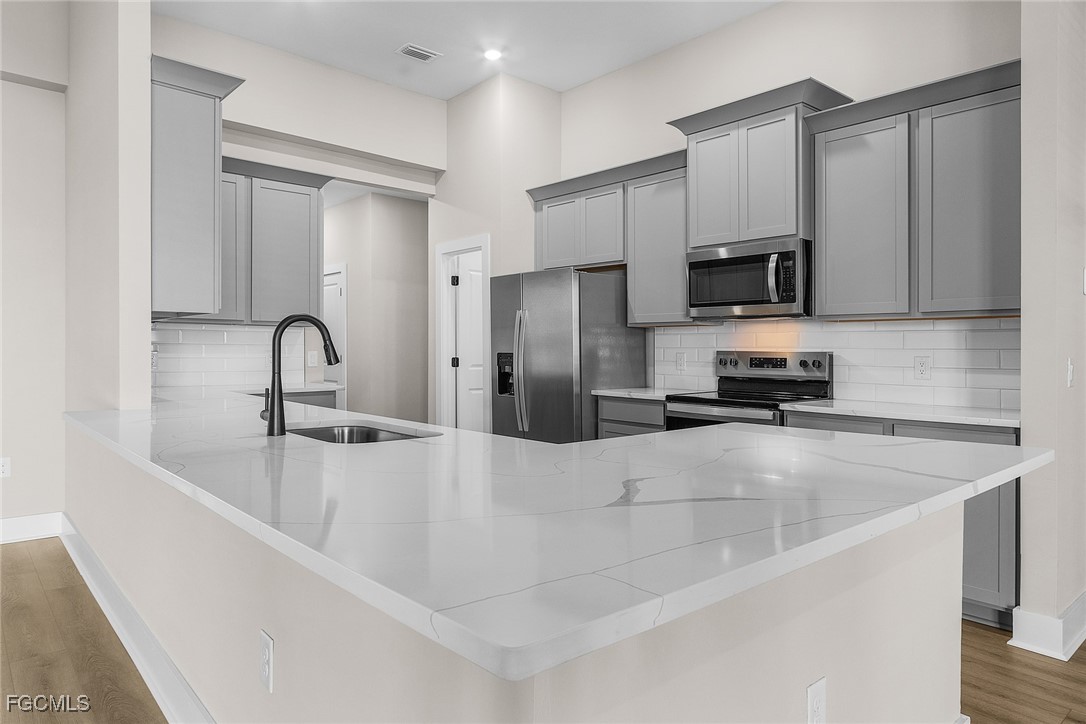 ***$25,000 purchase incentives including closing costs.*** Ready for move-in. No HOA. The Palm Beach plan is available in the gorgeous area of south Cape Coral. This new, one-story home features an open floor plan, 5 bedrooms and 2.5 bathrooms complete with unbelievable upgrades including energy-efficient Whirlpool® appliances, spacious quartz countertops, 42” upper cabinets with crown molding, an undermount kitchen sink, Moen® faucets, a convenient outlet with USB charging capability, paver driveway, impact resistant windows and doors and an attached three-car garage with a Wi-Fi-enabled garage door opener. The Palm Beach consists of a master suite complete with a massive walk-in closet, 9’ tall ceilings, a large covered back patio and a breakfast bar and a walk-in pantry. Residents will enjoy convenient access to the best shopping, dining and entertainment around.