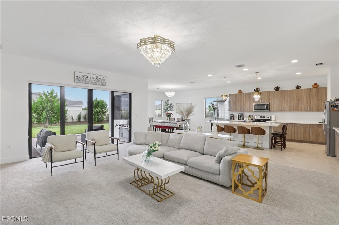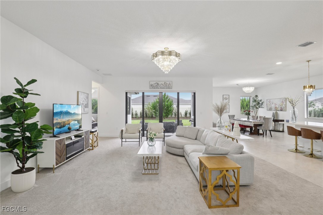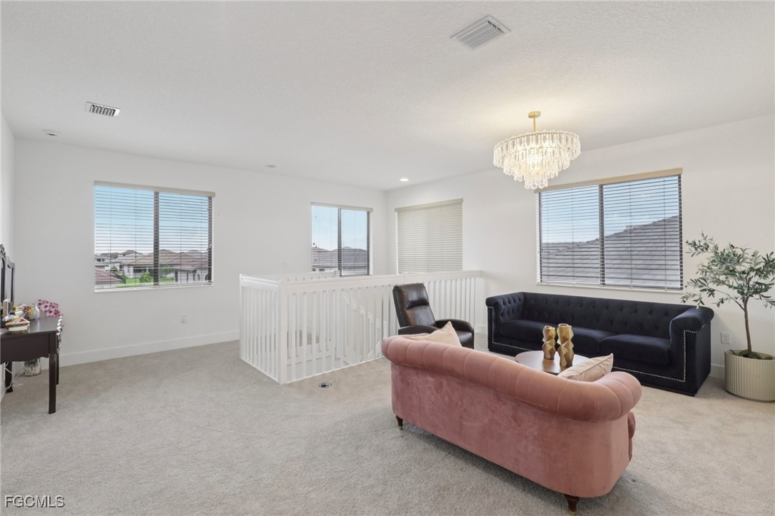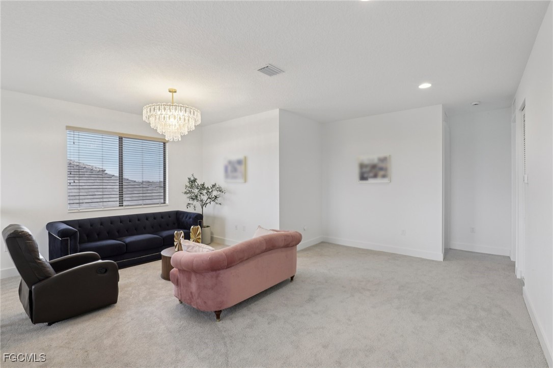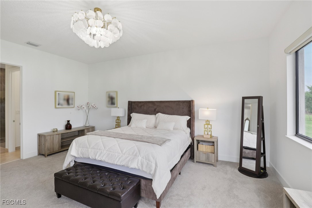 Discover luxury living with scenic golf course views and no rear neighbors. This home boasts a chef’s kitchen with extended island, upgraded tiles, backsplash, and enhanced sinks. Enjoy hurricane-impact windows and doors, elegant chandeliers, new fans and lighting, plus upgraded A/C and electrical. Spacious 4 bedrooms including a downstairs master with den/office, open loft, soaring ceilings, and enlarged showers. Outdoors features extended pavers, new gutters, large driveway, and 3-car garage. Community offers a clubhouse with gym, sauna, pool, and access to Ave Maria’s master clubhouse.