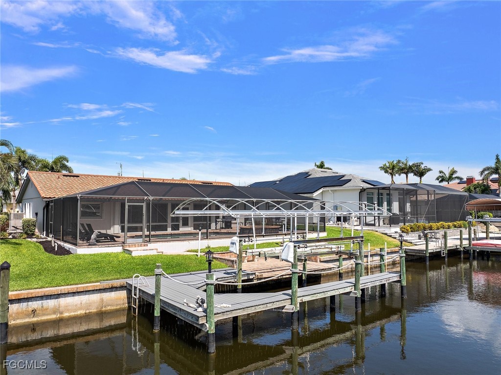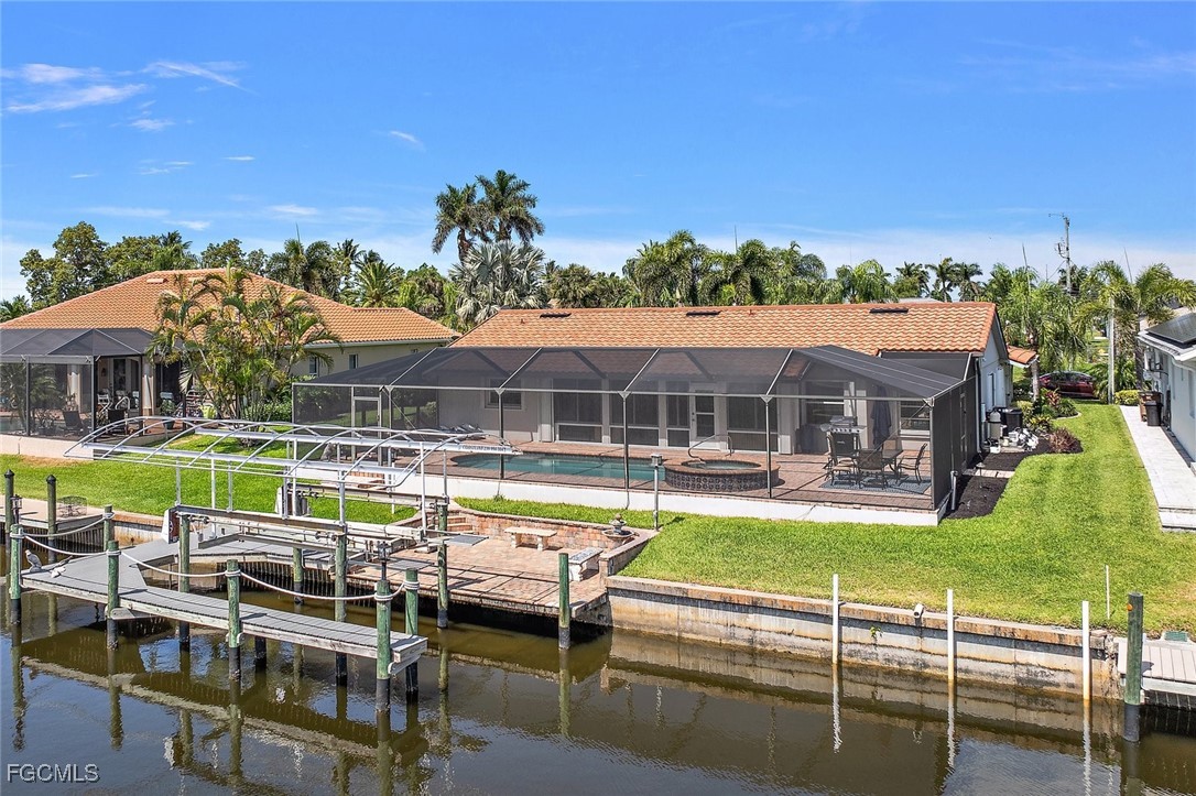 Back on the Market at NEW Price!! Motivated Seller!! Turn-Key Waterfront Paradise with Pool, Spa, and Direct Gulf Access – No Bridges! A MUST-SEE waterfront pool home that perfectly blends luxury, comfort, and Florida lifestyle! Situated on a beautifully landscaped lot, this stunning property offers super-fast, no-bridge access to the Caloosahatchee River and Gulf of Mexico—a true boater’s dream. Enjoy the best of outdoor living with an oversized paver patio, leading to your composite covered dock complete with boat lift and canopy—ideal for docking your boat after a sun-filled day on the water. Relax in the screen-enclosed lanai with private pool and spa, or host unforgettable gatherings in the expansive outdoor dining and lounge areas. Step inside to a bright and welcoming interior featuring a glassed-in bonus room with vaulted, beamed ceilings and pocket doors that open seamlessly into the main living space. The updated kitchen shines with stainless steel appliances, granite countertops, and a pass-through to the bonus room—perfect for entertaining! Savor your evenings with friends and family on the dockside patio as you enjoy cool drinks and picturesque waterfront views. New Roof in 2023 for peace of mind, and best of all—NO FLOOD DAMAGE from recent hurricanes. Don’t miss your chance to own this exceptional Gulf-access pool home. Schedule your private showing today.