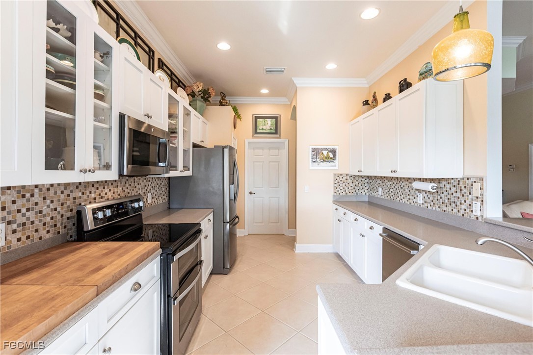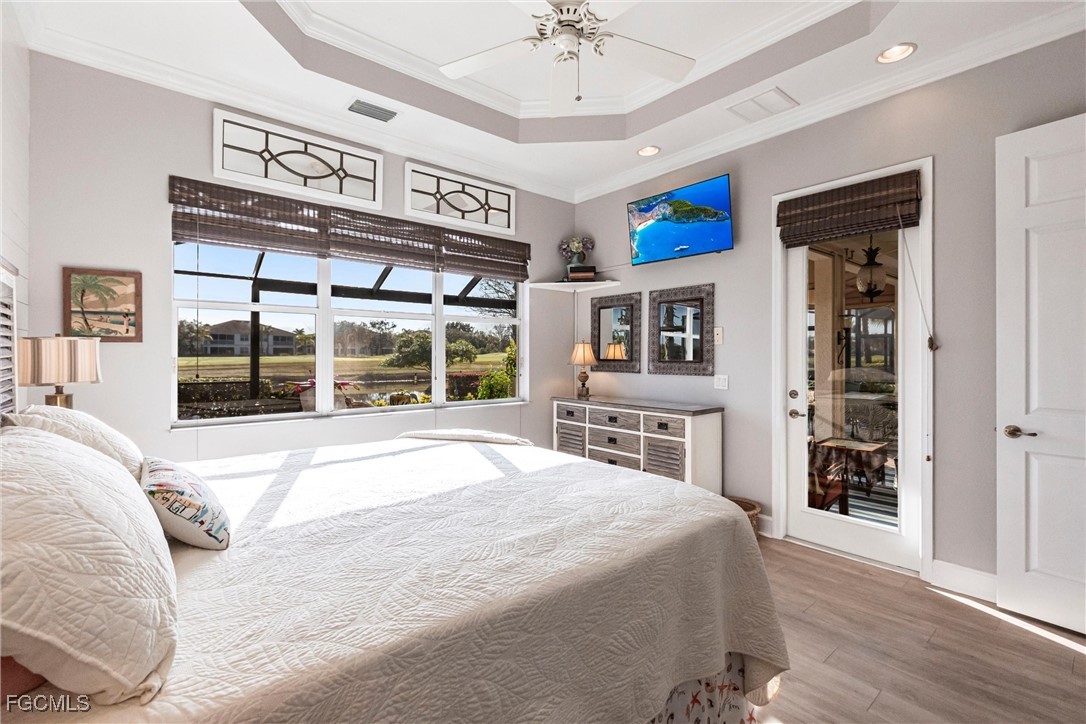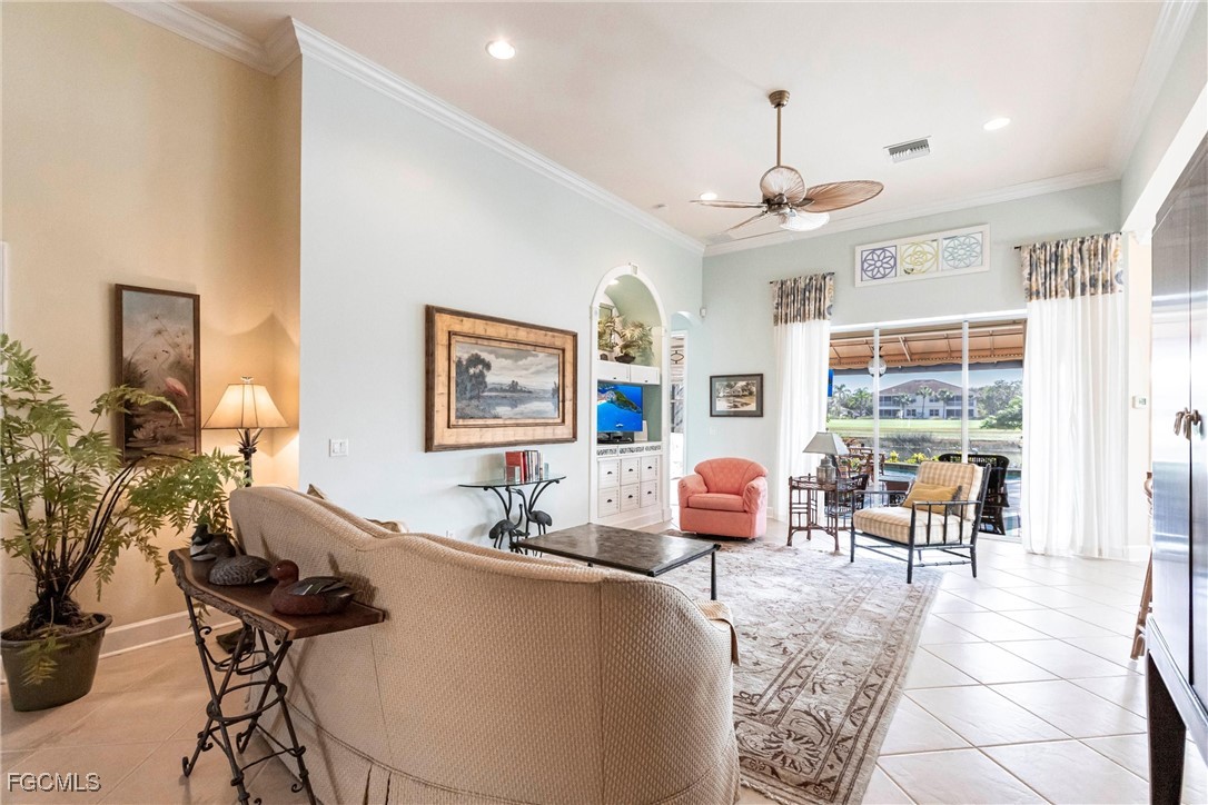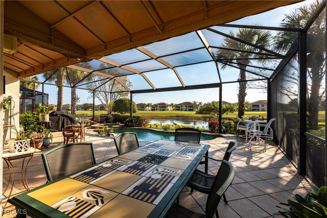A rare opportunity has arisen to own a stunning home with breathtaking views of the golf course and lake. This home is filled with upgrades and features, with sellers having invested over $110,000 in improvements, making it virtually move-in ready. The property offers 1840 sq. ft. of living space, including 2 bedrooms, a den, and 2 baths, as well as an expansive lanai with an eastern rear exposure. Some of the standout features of this property include a brand NEW ROOF completed in 2025, maple cabinet refacing in the kitchen, an attractive backsplash in the kitchen, removal of original columns in the dining room for a more open feel, oak flooring in the den, LVP flooring in the bedrooms, crown molding, tray ceilings, newer AC, refrigerator, and pool heater, a phantom door at the front entrance, custom cabinetry throughout the home for added storage, enhanced lighting and fan fixtures, and attractive window treatments. Upon entering the home, the open feel is immediately noticeable. The den and guest bedroom are both spacious, with the den offering flexibility as a flex room. The master bedroom features an attractive shiplap wall, access to the lanai, and spacious closets. The master bathroom boasts dual sinks, a vanity, and a separate tub and walk-in shower. The lanai area has been updated with hurricane storm shutters, an awning that extends the shaded area for more undercover space, picture window screens on two sides of the cage to enhance views of the golf course and lake, and an attractive pool/spa structure. This home is located in the Verandah Community, a gated community which offers a wide array of amenities for its members, including 2 championship golf courses designed by Jack Nicklaus and Bob Cupp, tennis, pickleball, a state-of-the-art fitness center with an attendant, bocce, kayaks, a dog park, playground, 9 miles of walking and jogging paths, multiple restaurants, and a full activity calendar of events, classes, and fun programs. With all of these unique features and upgrades, this home is perfect for entertaining family and friends. This home won't last, so come see it now. Don't miss out on the opportunity to secure your place in paradise!
