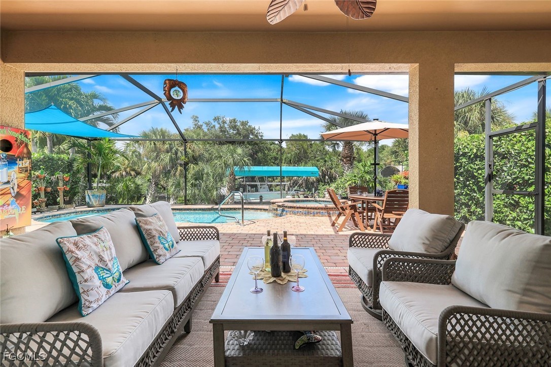Welcome to 12761 Seaside Key Court, located in the sought-after Gulf and River access community of Moody River Estates, where luxury waterfront living meets the perfect SW FL lifestyle. This three-bedroom, plus den, two-bath home, offers the ideal combination of comfort and relaxation. The open-concept design is filled with natural light throughout, with upgrades such as: whole house generator, storm impact resistant windows, doors and screens, a gourmet kitchen with a large walk-in pantry, granite countertops, SS Appliances, custom backsplash, custom window coverings, wood cabinetry, a large serving island, ceramic tile throughout, volume ceilings, designer lights and fans, and on trend finishes that make entertaining effortless. The split-bedroom layout provides separation and privacy, while the versatile den offers endless options as a home office or guest retreat. Step outside to your private paradise and grill poolside while enjoying a colorful sunset beside a sparkling salt-water pool/spa, surrounded by lush tropical landscaping. Whether relaxing with your morning coffee, or hosting friends and family, the backyard oasis offers a true resort-style experience that must be seen to envision the possibilities. For boating enthusiasts, this property includes a private dock and a 7500-pound lift. The garage is a man/woman cave dream-come-true and features a large 6-foot extended, air-conditioned garage, with room for a workshop, and offering pull-down stairs, epoxy floors, EV and Generator plugins, and a loft garage storage system. Exclusive Moody River Estates, further enhances your lifestyle with resort-style amenities including; private security gate, boat ramp, clubhouse, fitness center, community pool and spa, tennis, pickleball, basketball courts, playground and scenic nature walking trails and more. Located just across the river from the Downtown River District in Fort Myers, this gem offers quick access to shopping, restaurants, live entertainment, museums, beaches, and more. Less than 3 hours to Miami, Fort Lauderdale, Tampa or Orlando, this is where happy memories are made. It's time to reward yourself and elevate your lifestyle... Call today!