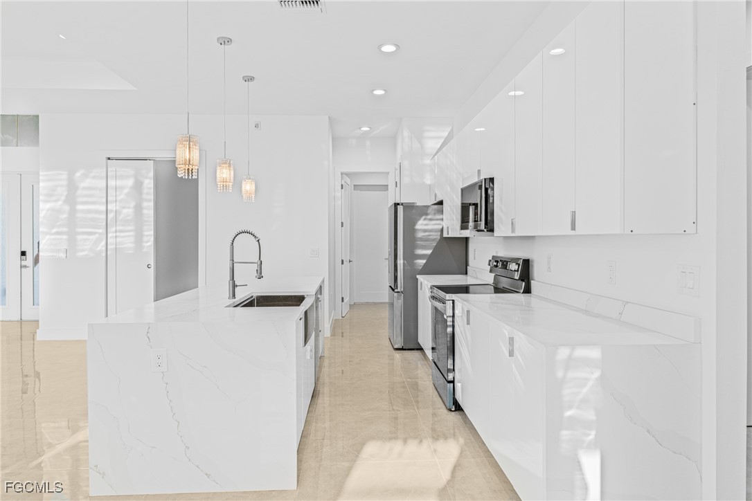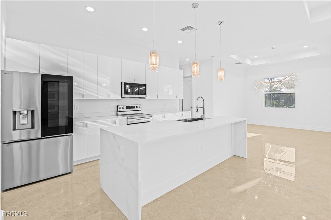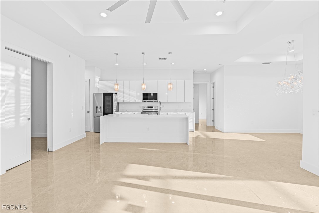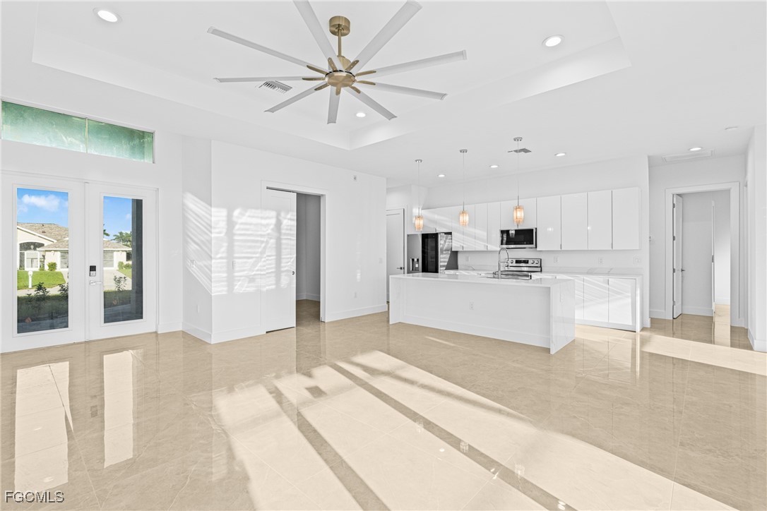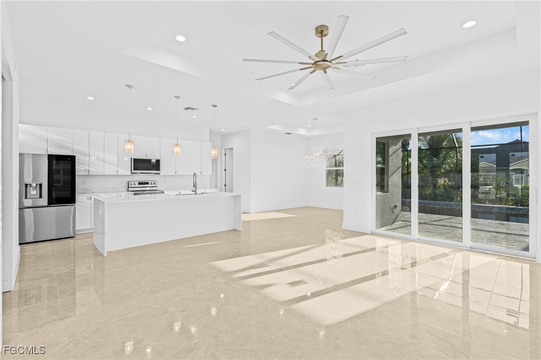 Welcome to this stunning 3-bedroom + den, 3-bathroom pool home offering 2,057 square feet of elegant living space in one of Cape Coral’s fastest-growing areas. Designed for comfort and sophistication, this home showcases a bright open floor plan, high ceilings, and sleek porcelain tile floors that reflect natural light throughout.