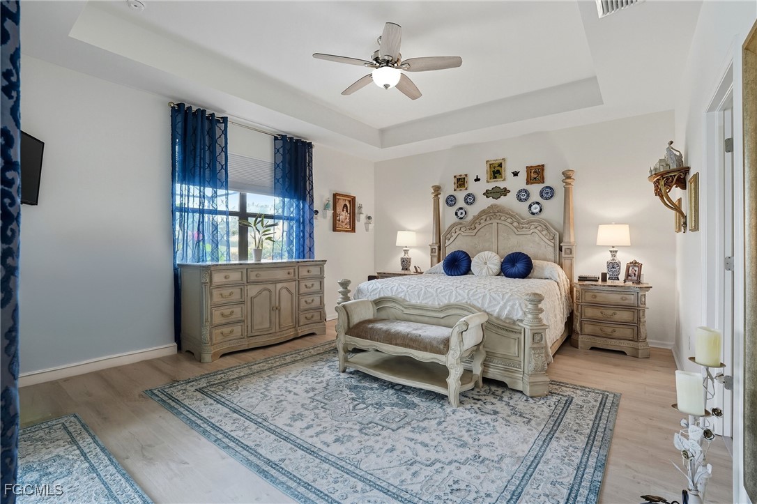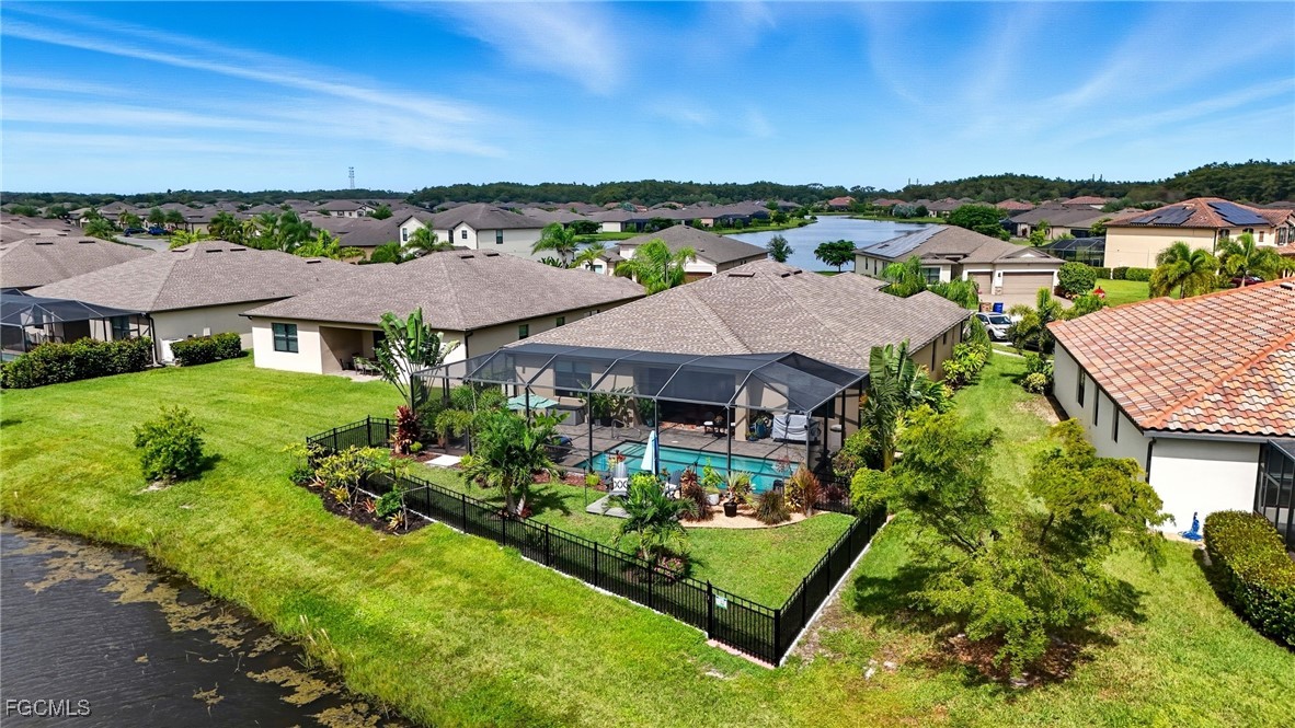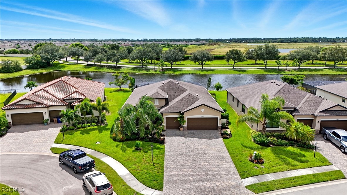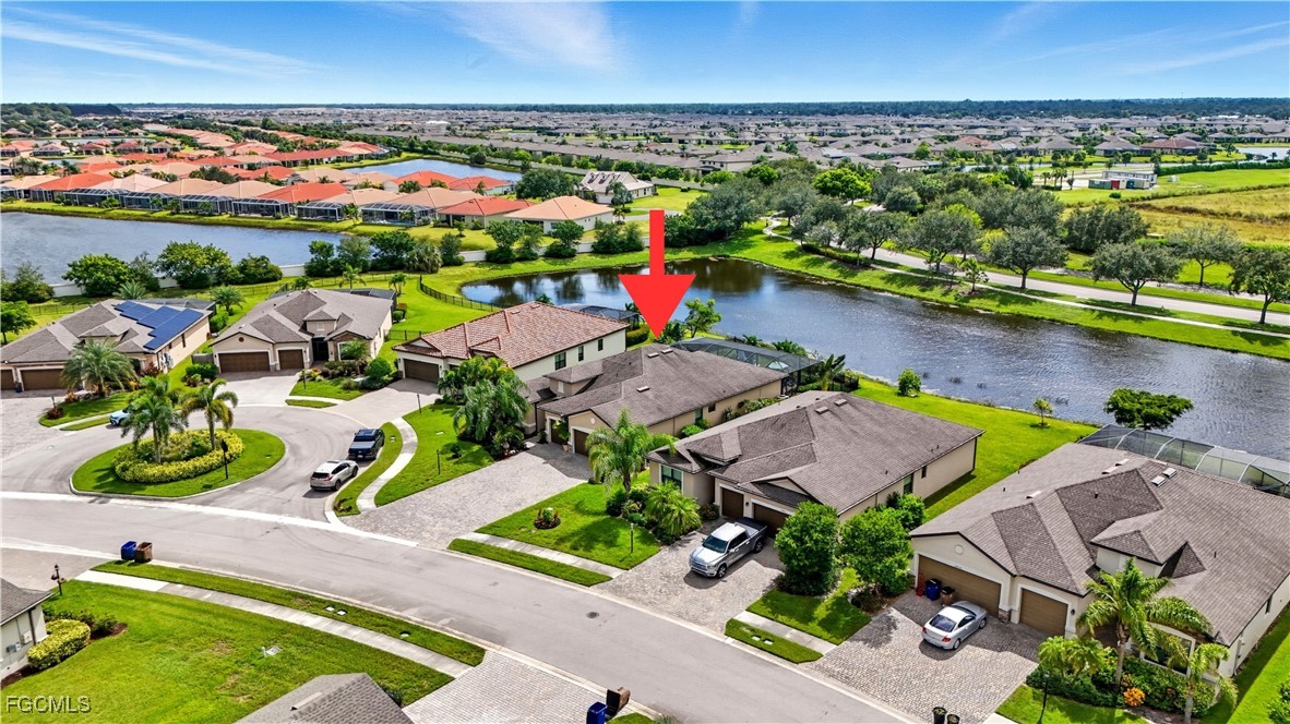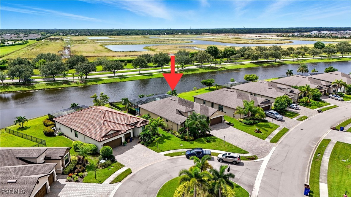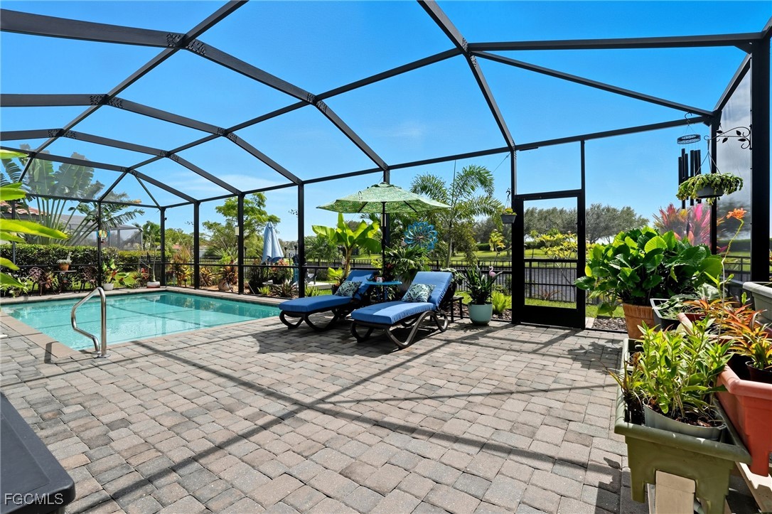 Welcome to 14427 Mindello Drive in Portico - ONE OF ONLY TWO CURRENTLY AVAILABLE HOMES with 3 bedrooms plus den, 3 full baths, a 3-car garage and a waterfront lanai with pool! This upgraded and highly popular Summerville II model (with a modified primary bath with better space), boasts over 2,400 square feet of open living space and a total of 3,296 square feet. With its mainly western exposure, you will enjoy picturesque sunsets from the expansive screened lanai, featuring a SPARKLING, HEATED SALTWATER POOL AND CUSTOM BACKYARD DECK.
