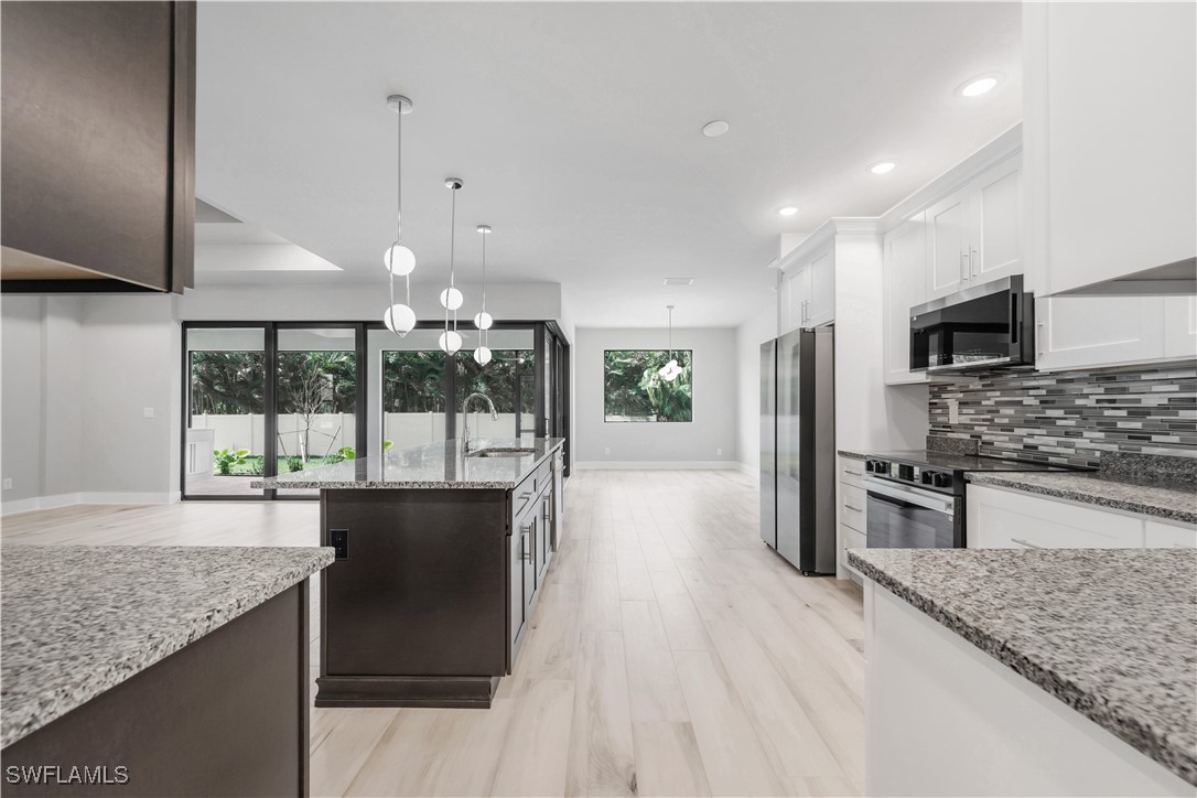 Newly constructed by Sun Country Homes Of Fla.Inc , a builder of many homes over many years, this home has many features that will delight. The unique 90 Degree Sliding Glass doors offer amazing access to the outdoor entertaining area, complete with a Summer Kitchen, which includes a Sink and Refrigerator. THREE baths make this home perfect for entertaining overnight guests and parties! The kitchen includes a Wine Cooler/Bar area with a large pantry around the corner opposite the laundry room. The laundry room offers a sink and access to the Master Bathroom for convenience. The Master Bath has a Tub and Walk through Shower and two Large Vanity's with lots of storage . Plenty of room for a pool and the third bath has access to the Lania also.