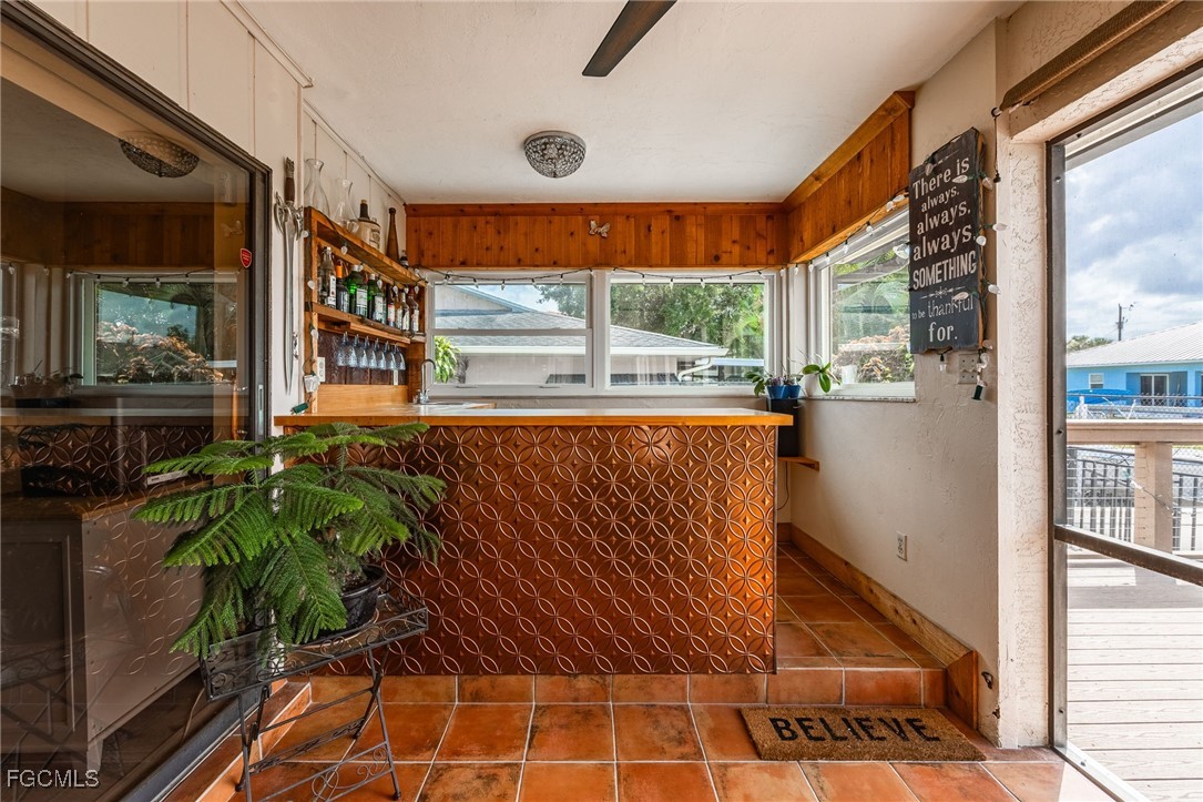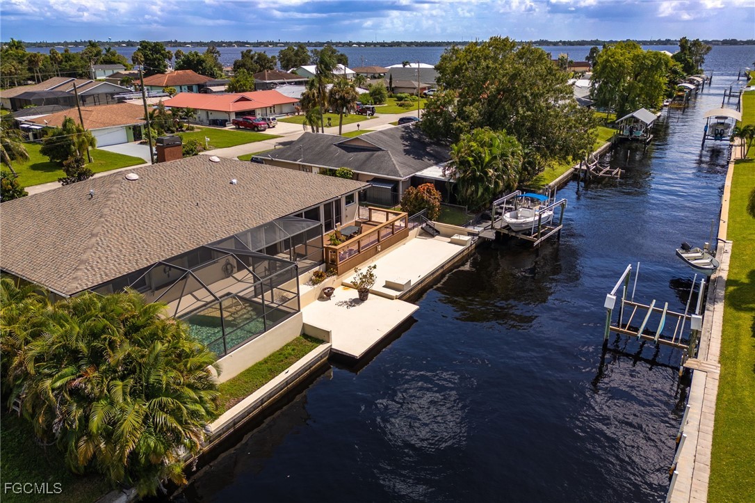 Step outside to your private paradise — a heated, modern saltwater pool (installed 2016) surrounded by a spacious screened lanai complete with a bar area and plenty of space to relax or dine alfresco. A composite deck (2023) extends your outdoor enjoyment, perfect for soaking in the tranquil evenings along the water. A concrete dock to secure your boat gives you quick access out to the Caloosahatchee River and direct Gulf access. Additional features include crown molding throughout, a generator hookup with transfer switch, two storage sheds, a carport, fenced yard, and elevated positioning higher than many neighboring homes. Enjoy your very own mature, producing avocado trees (three)!