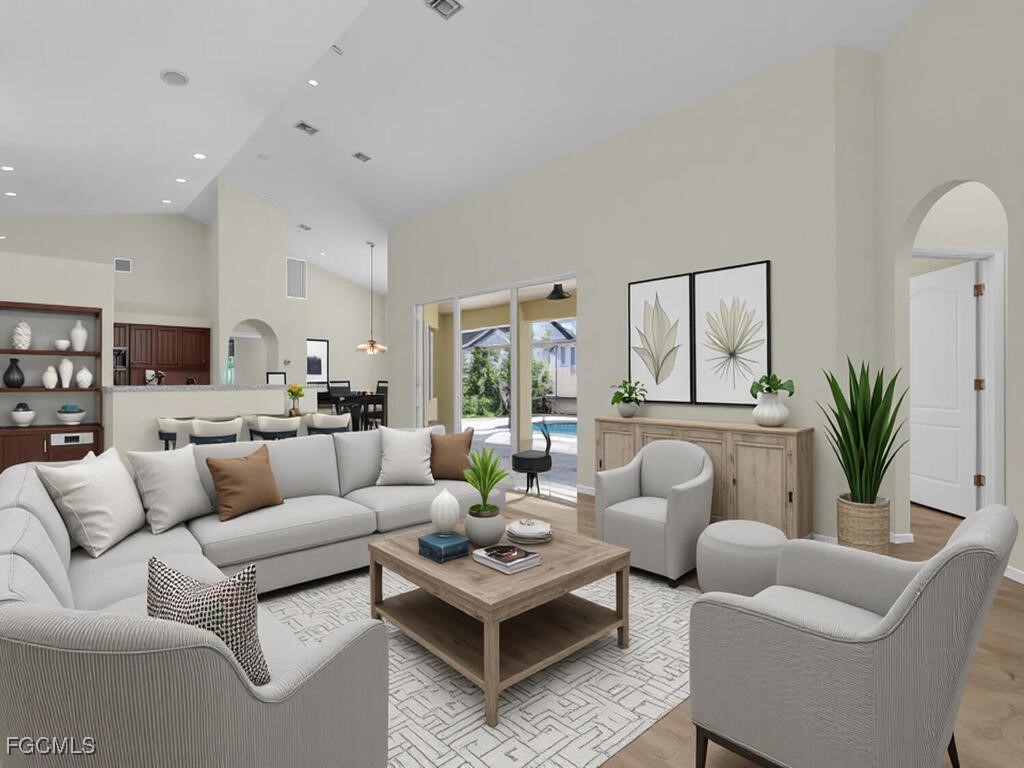 Your Dream Home Awaits in Cape Coral's "Rose Garden"! Welcome to your own Private Paradise in the Heart of Cape Coral's most Desirable Neighborhood! This Gorgeous Estate Home sits on an Oversized Triple Lot, Surrounded by Beautiful Palms and Lush Landscaping. You’ll be living in the middle of a Premier Location, surrounded by $$million-dollar plus Gulf Access Homes and backing up to the Exclusive Tarpon Point Estates. Pride in Ownership is apparent in this 1 Owner Home. Step inside and discover 2,458 sq ft of Living Space, designed for both Comfort and Entertaining. This Smart Floor Plan Features 4 Bedrooms & 2 Baths. The Open Design Concept Seamlessly connects the Great Room, Formal Dining Room, and Cozy Breakfast Nook. There's also a small Sitting Area, perfect for catching up on that book you wanted to read! The Kitchen is a True Standout, offering ample amounts Storage, Wood Cabinets, Solid Surface Counter Tops, Prepping Island, & SS Appliances—sure to please any Home Chef. Imagine starting your day with a Cup of Coffee, looking out at the Pool through the Huge Mitered Window and Triple Sliders. The Primary Suite & Bath is a Perfect Retreat, offering Dual Vanities, a Separate Soaking Tub & Shower, and Spacious His & Her Walk-In Closets. With 3 Extra Bedrooms and a Convenient Pool Bath, there's plenty of space for Family & Friends. Outside, the fun really begins! The Covered Lanai is an ideal spot for Outdoor Meals, and the Solar-Heated Pool~~~has been recently Upgraded with a New Peble Tec Surface, New Pool Cage, and a Stamped Concrete Deck. This home is built solid and has "Never Flooded"—a Rare Find and a Huge Bonus! Plus, it's fully protected by Hurricane Shutters for Peace of Mind. Recent updates include a New Pool Pump, a Commercial-Grade Hot Water Heater, and several New Kitchen Appliances. This quiet, hidden Gem of a neighborhood is truly special. You can easily Walk or Bike to Rotary Park and enjoy the Dog Park, Nature, and Fitness Trails. The Glover Bight Trail is nearby, offering a Scenic Walk through the Mangroves. And when you’re ready for some fun, you’re just around the corner from Tarpon Point Marina and the Westin Resort, where you can enjoy Dining and Shopping. Whether you're looking for an Exceptional Home for your Family or a Fantastic Addition to your Investment Portfolio, this property is a Rare Find. Priced to sell quickly, don't miss your Opportunity to live in one of the Best Neighbrhoods the Cape has to offer-Come see it today!