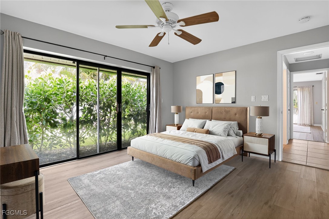 Experience the essence of Florida living in this beautifully designed pool home, perfectly positioned along the 9th hole of the South Course in the sought-after Spanish Wells Golf & Tennis Country Club. Minutes from the white sands of Barefoot and Bonita Beach. This inviting residence combines warmth, privacy, and style with a thoughtful split floor plan that offers separate living spaces for both owners and guests. The primary suite includes its own private sitting area, while the guest wing features a cozy family room, creating a layout that feels both open and intimate. Sunlight fills the home through plantation shutters, accenting the elegant fireplace and the tastefully updated kitchen, complete with 2022 appliances, generous cabinetry, and convenient pull-out drawers. Step through the sliding doors to the expansive lanai and pool area—your own outdoor retreat featuring a newly added bar with sink, perfect for entertaining or simply taking in the lush golf course views. The home has been meticulously cared for and updated, with a newer roof (2020), HVAC system, pool heater, pool pump motor (2023), lanai cage, and water heater. Smart home upgrades include a Ring doorbell, Wi-Fi-enabled Schlage front lock, Ecobee thermostat, and new smoke alarms throughout. The oversized two-car garage is equally impressive, offering a high-wind-rated insulated door (2022) and a brand-new Mitsubishi mini-split A/C system (2024), keeping the space cool and usable year-round. The curb appeal is unmatched, enhanced by newly planted palms, white hibiscus, sea oats, chic garage lighting, a paver driveway, and a sprinkler system connected to an irrigation well for efficient watering. Within Spanish Wells, residents enjoy a vibrant community lifestyle—complete with 27 holes of golf, tennis, pickleball, bocce, fitness classes, a resort-style pool, and a welcoming clubhouse with dining and social gatherings. With low monthly dues of only $219 and no mandatory club membership, this home offers the ideal blend of luxury, convenience, and flexibility. Move-in ready and beautifully maintained, it’s a rare opportunity to enjoy the best of Southwest Florida. Leasing is permitted up to 12 times per year. Lots of new updates and upgrades! Schedule today!
