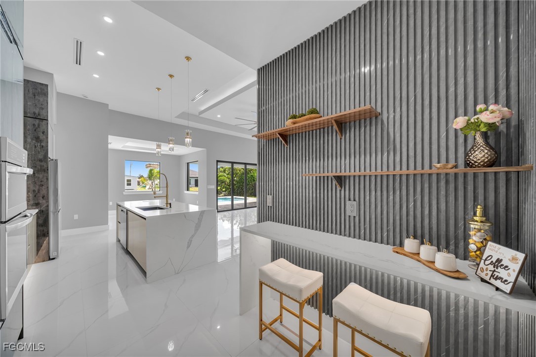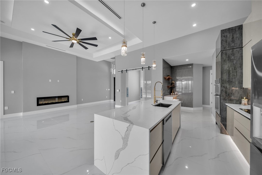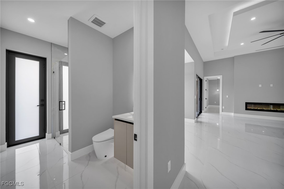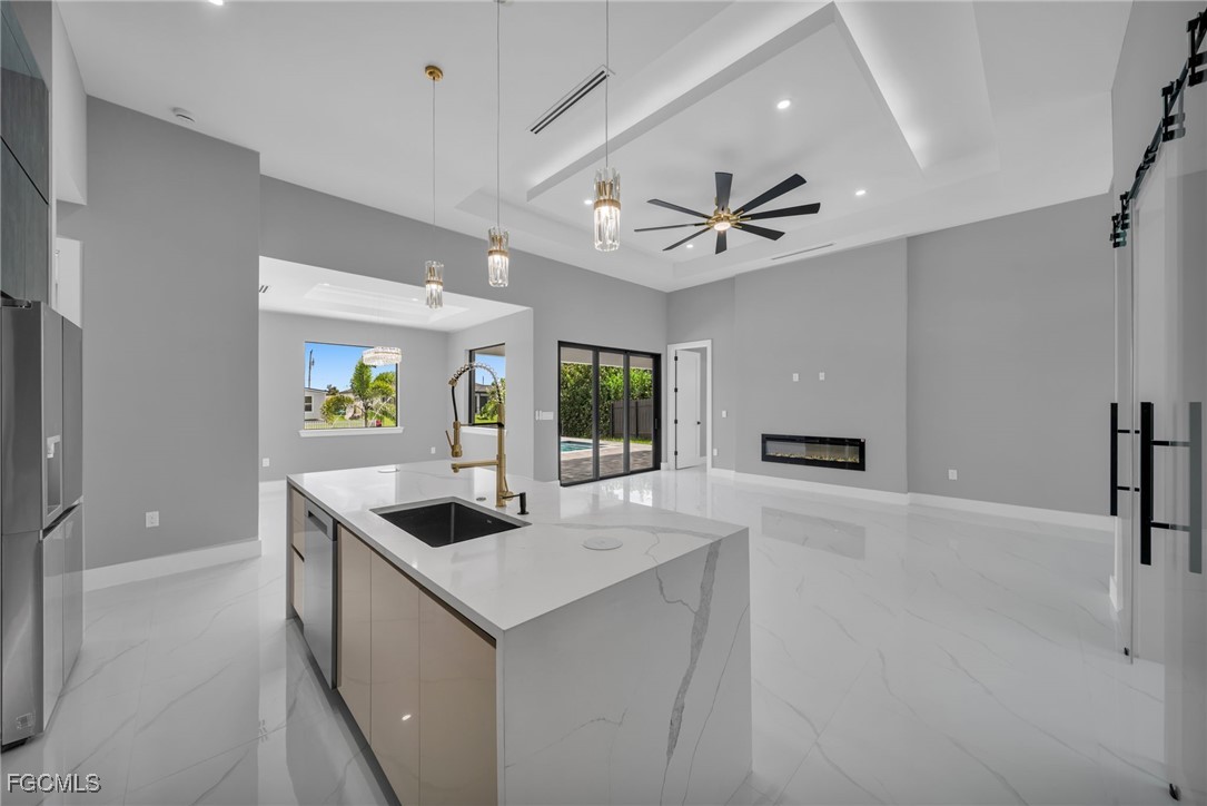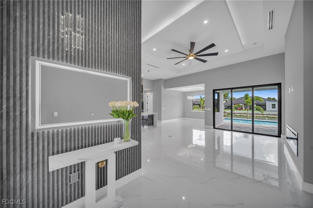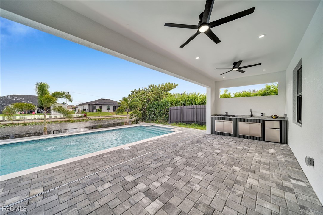 STUNNING WATERFRONT NEW CONSTRUCTION HOME WITH LUXURIOUS UPGRADES!! All ASSESSMENTS ARE IN AND WILL BE PAID IN FULL AT CLOSING!! THIS HOUSE IS NOT IN A FLOOD ZONE! All around fenced for privacy, This 4 bedroom, 3 full bathroom, and 3 car garage, with impact windows and doors. Residence offers over 2,100.sq. ft. of living space, Beautiful pool with saltwater system and a convenient outdoor shower, outdoor kitchen with stove, sink and refrigerator in lanai under roof area, extended kitchen with stainless steel appliances and a convenient island with a breakfast bar, living room has high ceilings and plenty room, beautiful modern tile through the home. Large master with 2 spacious walk-in closets, Great bath with modern featured and bathtub with custom tile surround. Two bedrooms with en-suites bathrooms are designed to satisfy the buyer, the remaining bedroom also offers ample storage with walk-in closets. This home offers comfort and functionality in a fantastic location. Don't miss this incredible opportunity!