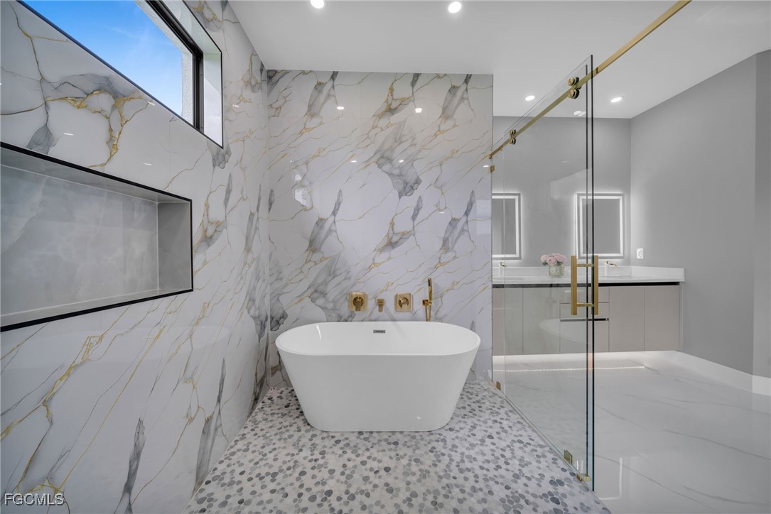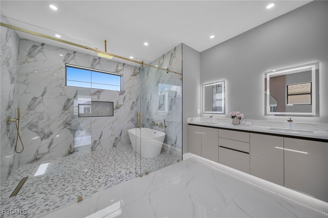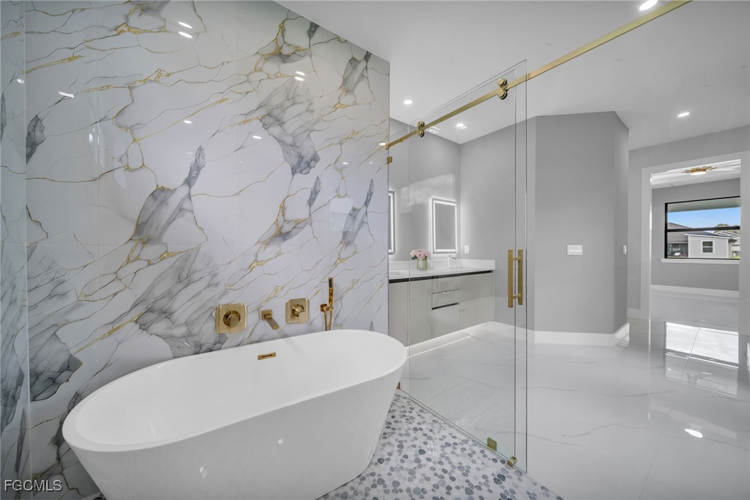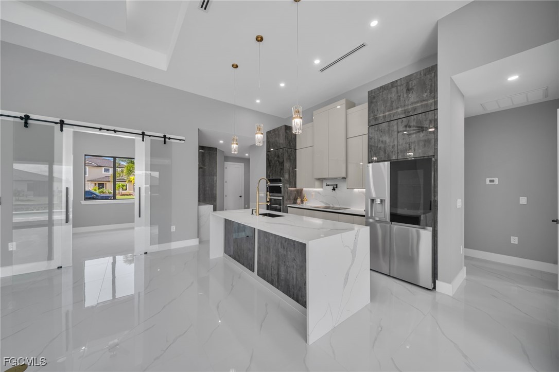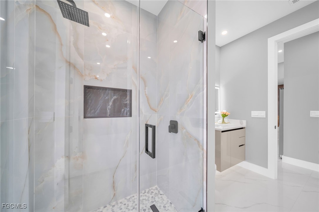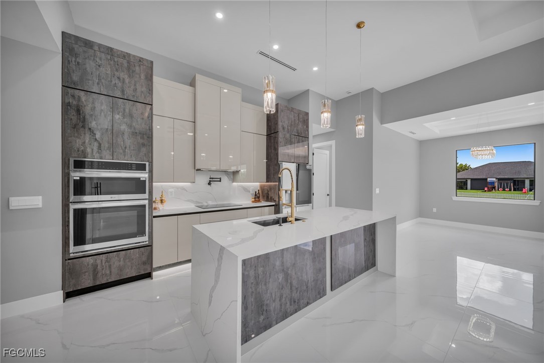 STUNNING WATERFRONT NEW CONSTRUCTION HOME WITH LUXURIOUS UPGRADES!! All ASSESSMENTS ARE IN AND WILL BE PAID IN FULL AT CLOSING!! THIS HOUSE IS NOT IN A FLOOD ZONE! All around fenced for privacy, This 4 bedroom, 3 full bathroom, and 3 car garage, with impact windows and doors. Residence offers over 2,100.sq. ft. of living space, Beautiful pool with saltwater system and a convenient outdoor shower, outdoor kitchen with stove, sink and refrigerator in lanai under roof area, extended kitchen with stainless steel appliances and a convenient island with a breakfast bar, living room has high ceilings and plenty room, beautiful modern tile through the home. Large master with 2 spacious walk-in closets, Great bath with modern featured and bathtub with custom tile surround. Two bedrooms with en-suites bathrooms are designed to satisfy the buyer, the remaining bedroom also offers ample storage with walk-in closets. This home offers comfort and functionality in a fantastic location. Don't miss this incredible opportunity!
