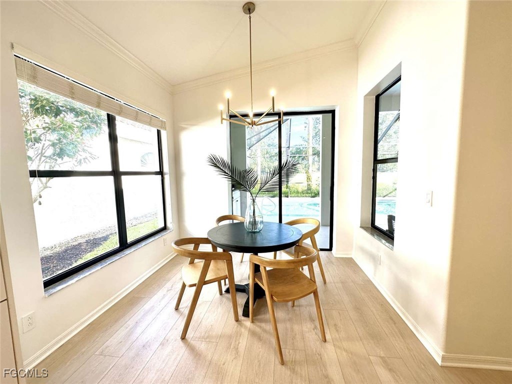 Welcome to 10001 Isola Way – A Stunning, Fully Renovated Showpiece! This light-filled, modern home boasts 2 spacious bedrooms, a versatile den, and 2 beautifully renovated bathrooms. Every inch of this property has been meticulously upgraded to provide luxurious comfort and style. As you step inside, you'll be greeted by natural light streaming through showcasing the exquisite open concept layout. The heart of this home is the fully updated gourmet kitchen, equipped with top-of-the-line appliances, custom chandelier and sleek quartz countertops. The open layout flows seamlessly into lanai for an extended living space perfect for entertaining or relaxing. The primary suite is a true retreat with its floor to ceiling tile work, modern vanity and walk-in closet. The guest bathroom has also been tastefully updated, offering elegance and functionality. Additional highlights include: state-of-the-art app-controlled smart home features, New luxury flooring, custom cabinetry throughout, high end lighting, resort-style backyard with an updated pool equipment and brand new outdoor grill! Located in the award-winning Miromar Lakes community, this home offers an unparalleled lifestyle. Miromar