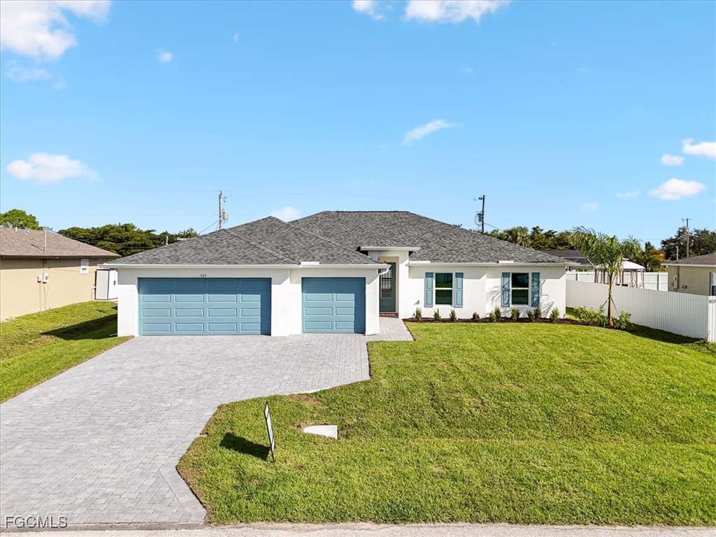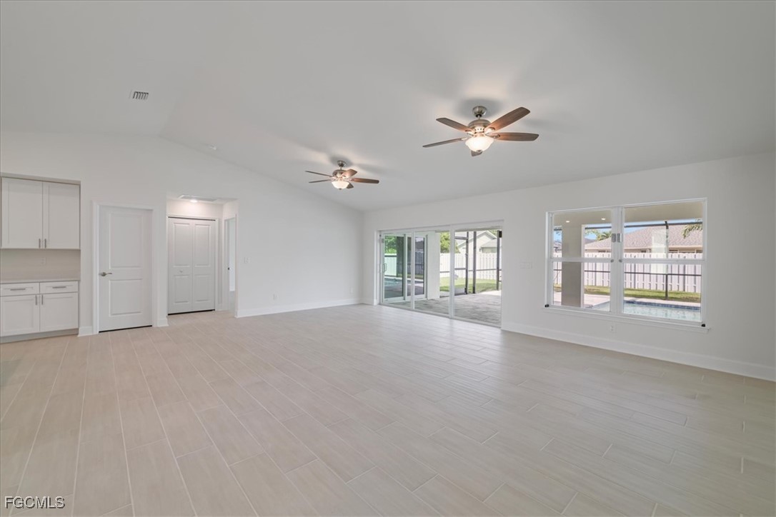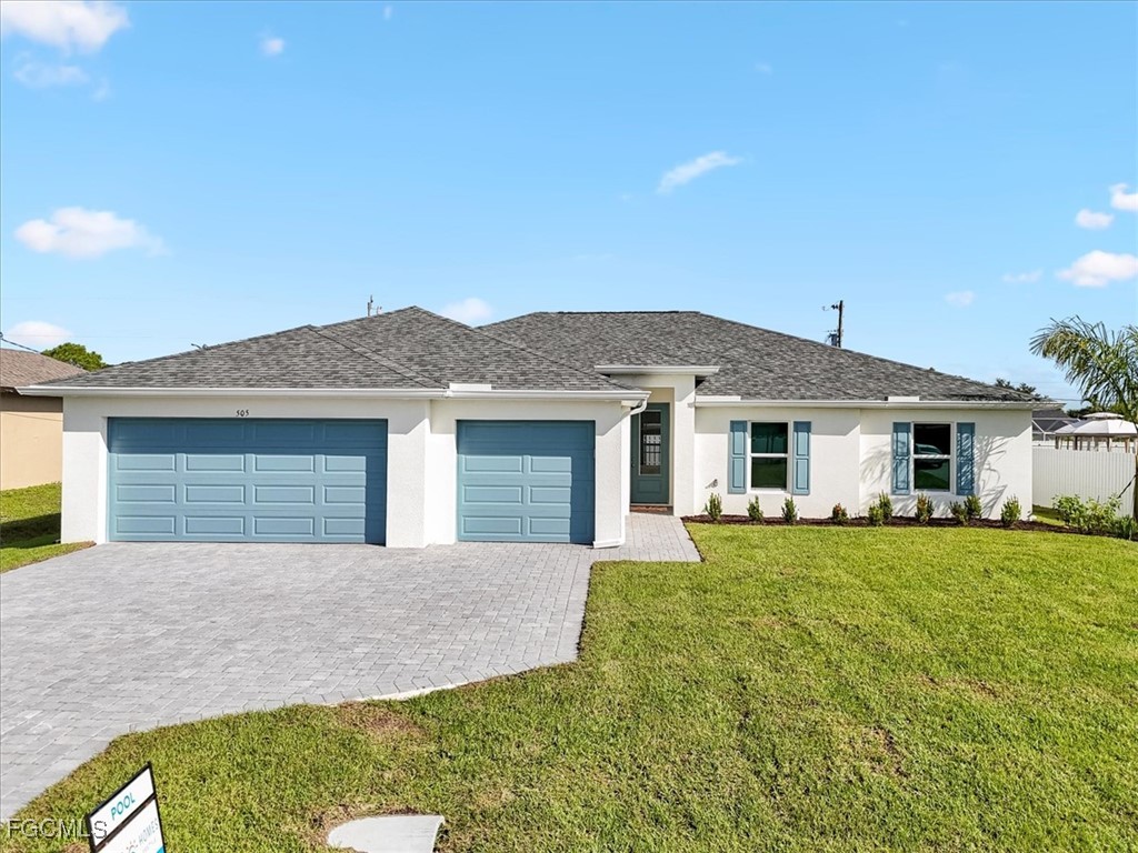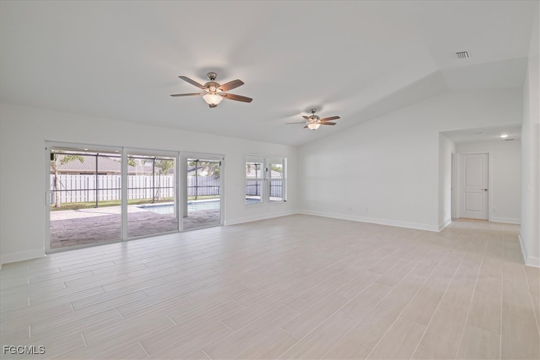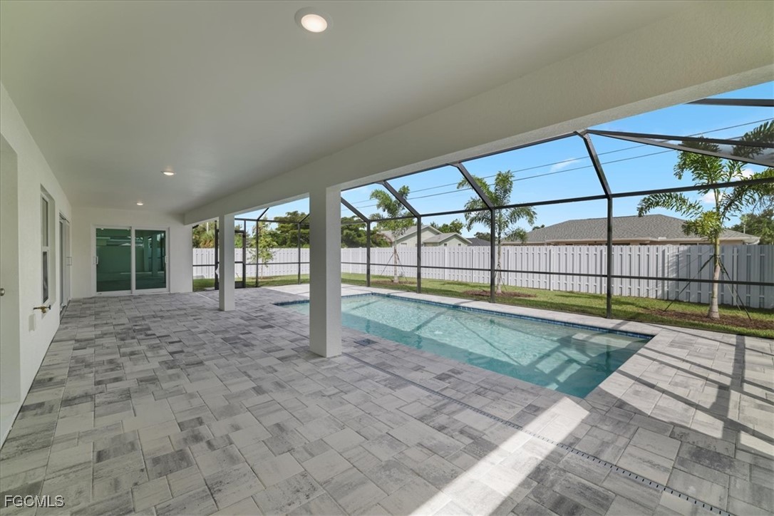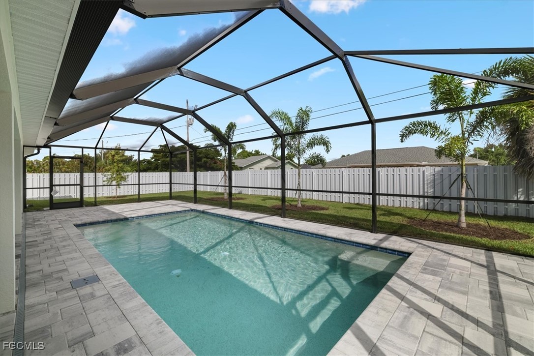 SPACIOUS POOL HOME WITH DUAL PRIMARY SUITES! Welcome to the Paradise Cove II Plan—a stunning, expansive retreat designed for comfort and elegance! This huge 4-bedroom, 3-bath home boasts two luxurious primary suites, making it perfect for multi-generational living or accommodating guests in style. Step inside to discover an open-concept great room with soaring ceilings and a 12-foot triple slider, seamlessly blending indoor and outdoor living. The heart of the home is the gourmet kitchen, featuring soft-close, all-wood cabinetry, quartz countertops, stainless steel appliances, and an oversized walk-in pantry—a dream for any chef! The first primary suite is a private oasis, spacious enough for a king-size bed and a cozy seating area. Enjoy direct access to the lanai and pool, plus a spa-inspired ensuite with a freestanding soaking tub and separate shower. The second primary suite is equally impressive, offering a full bath that also serves as a convenient pool bath, along with a generous walk-in closet. Outside, relax in the 1,100 sq. ft lanai or take a dip in the heated pool, perfect for year-round enjoyment. Built by a trusted local builder, this home offers incredible value in Cape Coral with impact windows for added security and lower insurance costs, no flood zone offering peace of mind and savings, and a 10-year structural warranty for long-term confidence. This is The Paradise Cove II Plan.