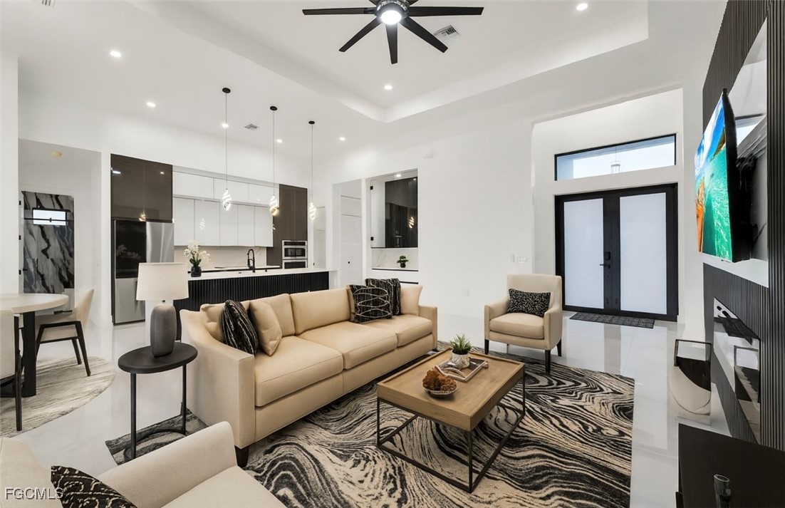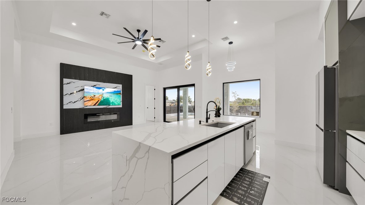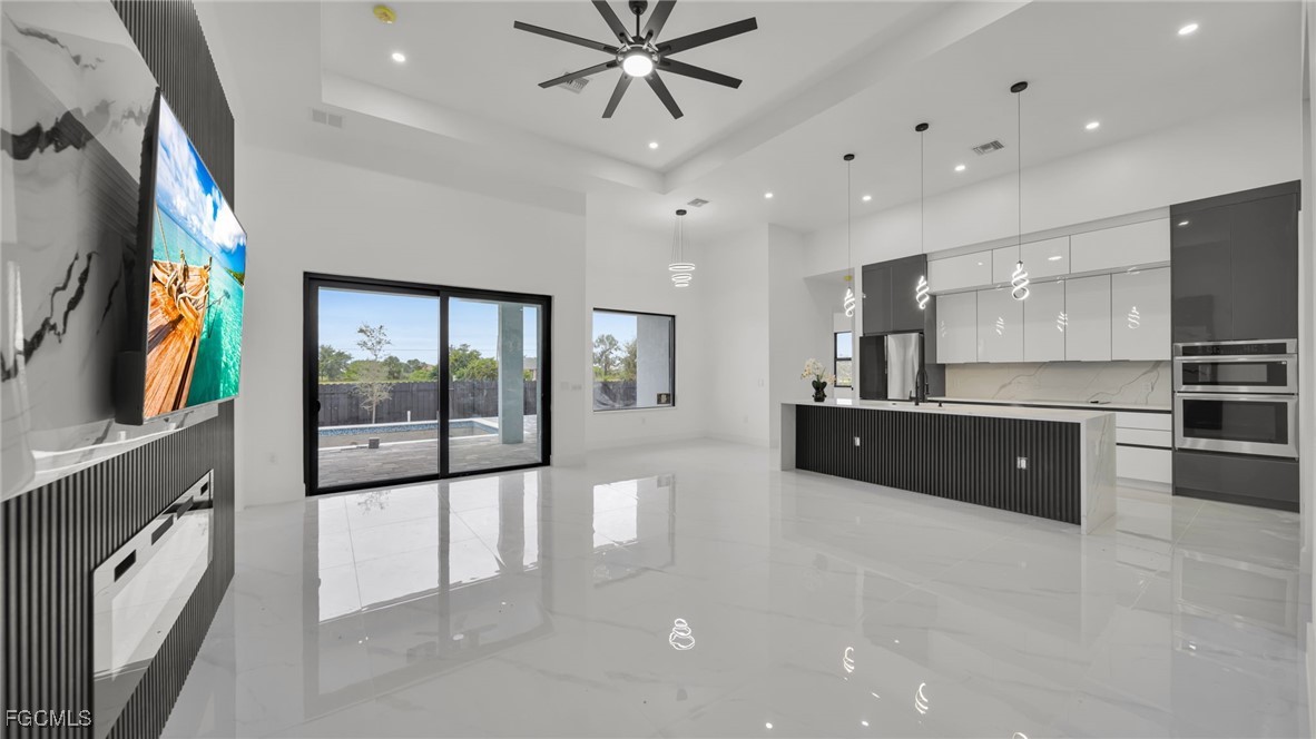 Step inside to discover an open-concept floor plan filled with natural light, soaring ceilings, and a sleek, custom TV feature wall with a flat-screen TV included in the purchase. The heart of the home is the chef-inspired kitchen, beautifully designed with clean lines and contemporary finishes, perfect for both daily living and entertaining.