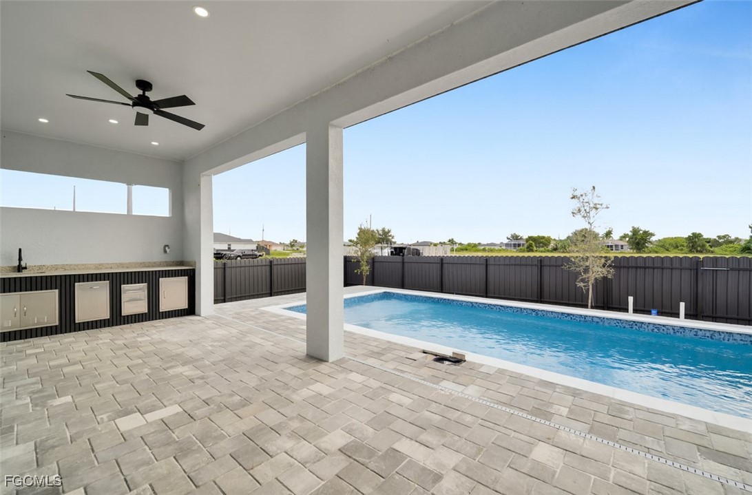 Step outside to your private backyard oasis. The sparkling pool is fully fenced for safety and privacy, creating an ideal spot for summer gatherings or peaceful evenings at home. The large covered lanai with outdoor kitchen space extends your living area for year-round enjoyment.