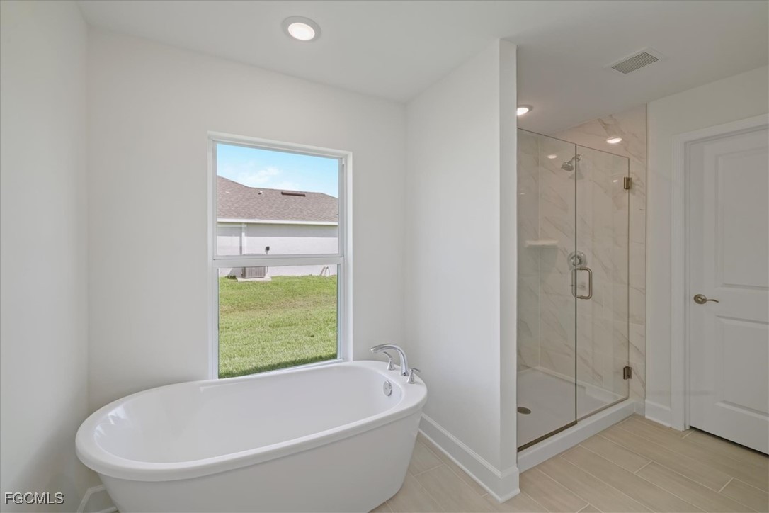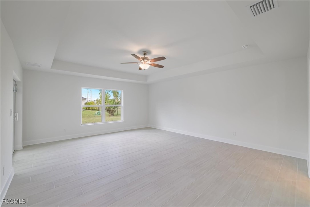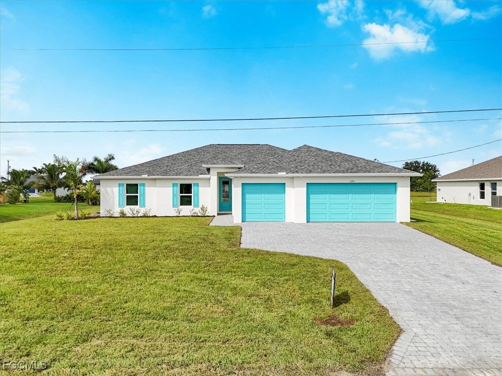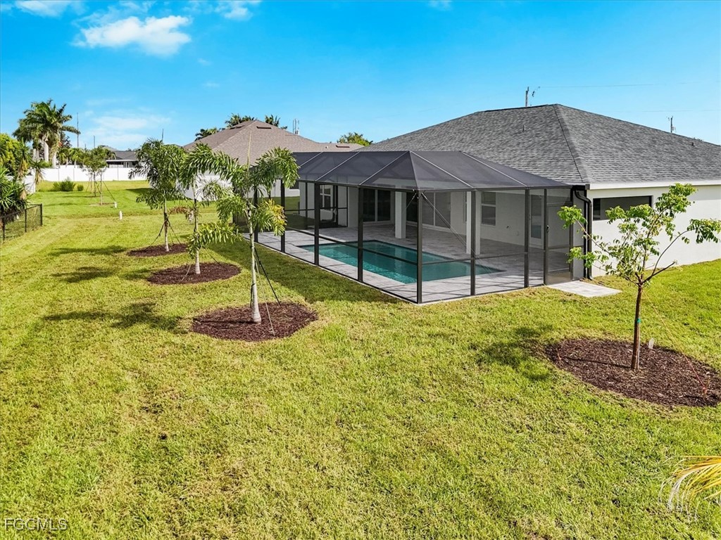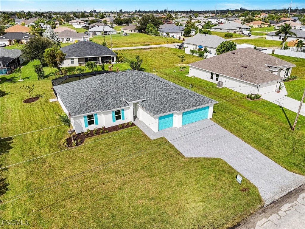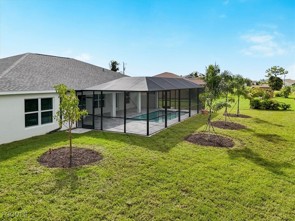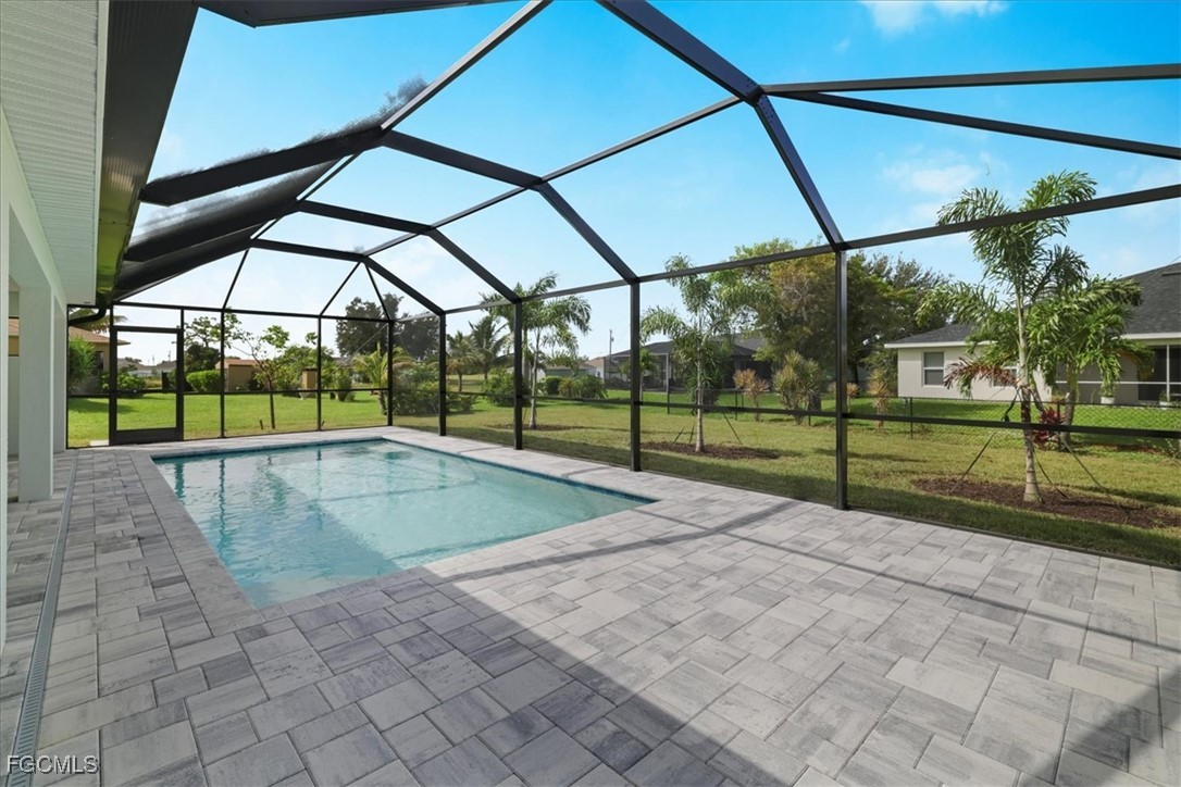 TRIPLE LOT - SPACIOUS POOL HOME WITH DUAL PRIMARY SUITES! Welcome to the Paradise Cove Plan—a stunning, expansive retreat designed for comfort and elegance! This huge 4-bedroom, 3-bath home boasts two luxurious primary suites, making it perfect for multi-generational living or accommodating guests in style. Step inside to discover an open-concept great room with soaring ceilings and a 12-foot triple slider, seamlessly blending indoor and outdoor living. The heart of the home is the gourmet kitchen, featuring soft-close, all-wood cabinetry, quartz countertops, stainless steel appliances, and an oversized walk-in pantry—a dream for any chef! The first primary suite is a private oasis, spacious enough for a king-size bed and a cozy seating area. Enjoy direct access to the lanai and pool, plus a spa-inspired ensuite with a freestanding soaking tub and separate shower. The second primary suite is equally impressive, offering a full bath that also serves as a convenient pool bath, along with a generous walk-in closet. Outside, relax in the 1,100 sq. ft lanai or take a dip in the heated pool, perfect for year-round enjoyment. Built by a trusted local builder, this home offers incredible value in Cape Coral with impact windows for added security and lower insurance costs, no flood zone offering peace of mind and savings, and a 10-year structural warranty for long-term confidence. This is The Paradise Cove Plan II.