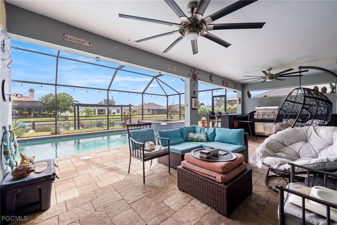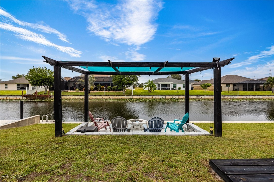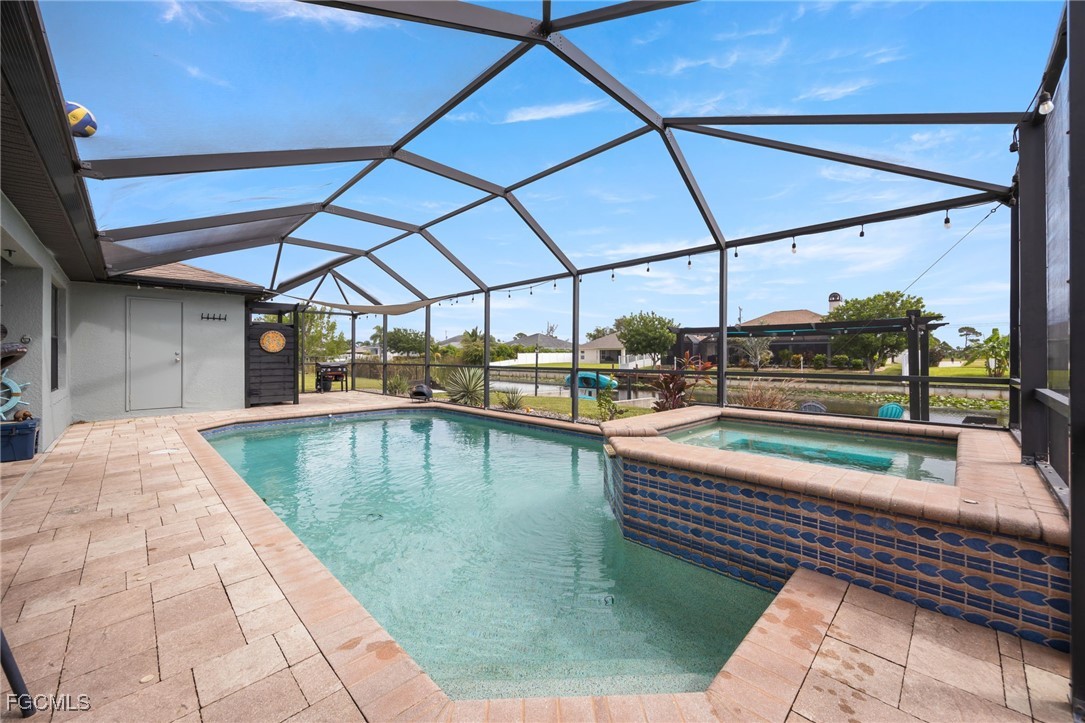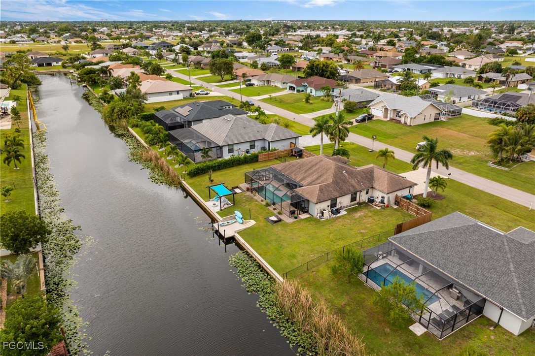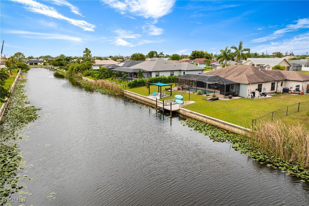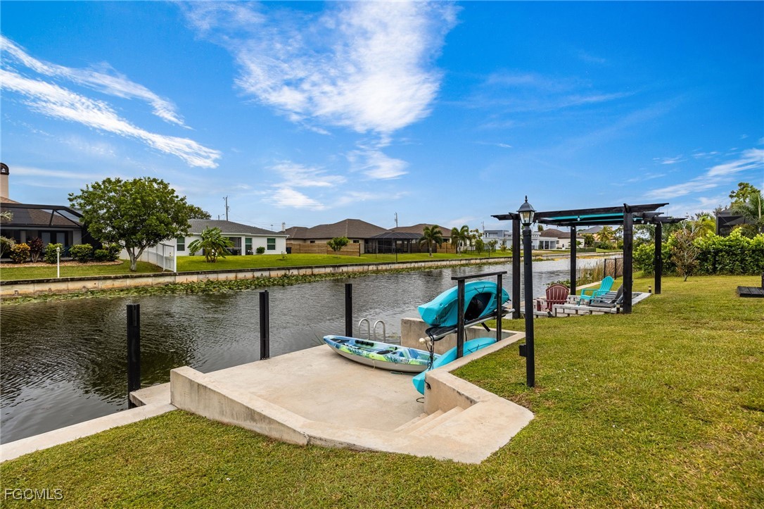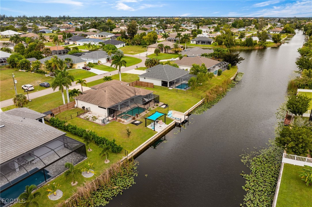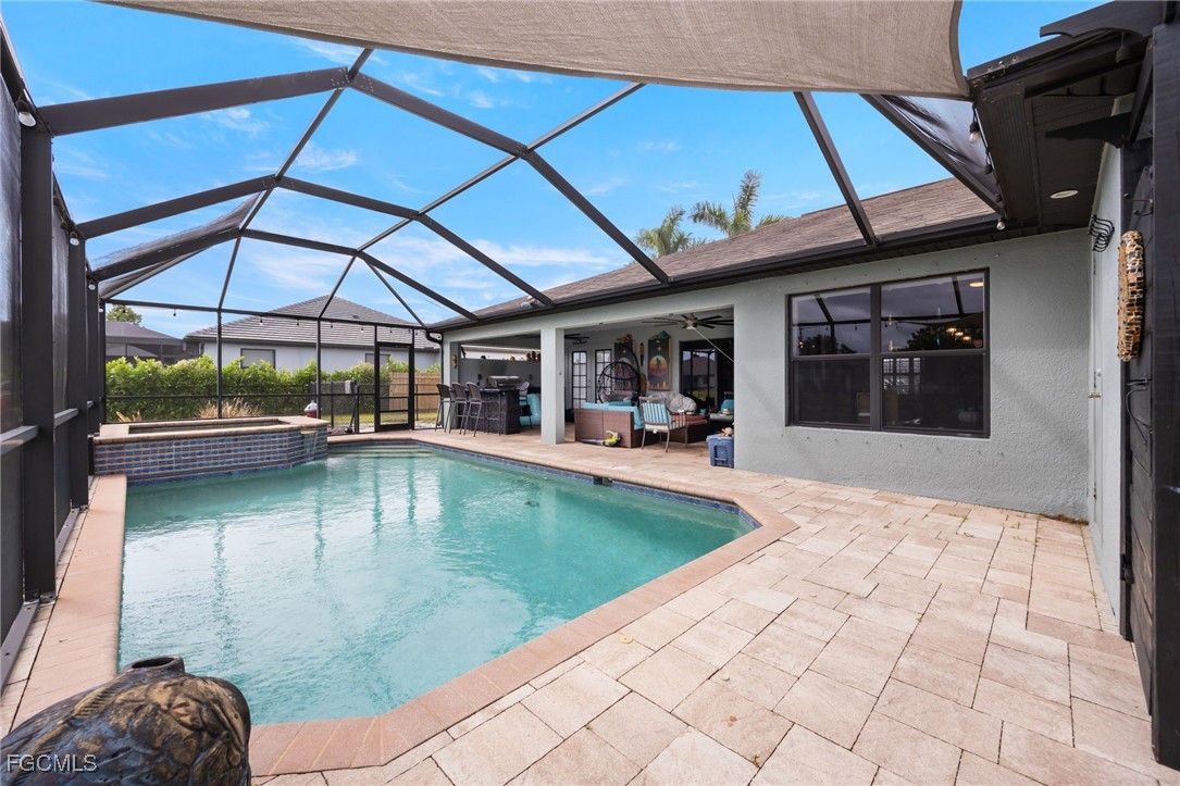 Experience the Best of Florida Living. This waterfront home is nestled on a triple-lot site, offering plenty of space for outdoor enjoyment. Perfect for your furry companions to roam freely! As you step inside, you'll find 3 bedrooms plus a den, ideal for a home office or additional guest space. High coffered ceilings and an open-concept kitchen create a bright, airy ambiance. Soft-close light cabinetry, a spacious granite island with seating for guests, and modern pendant and recessed lighting. Stainless steel appliances include an induction cooktop, providing both efficiency and style. Easy to maintain tile and wood laminate flooring run throughout the home. Step outside to your private oasis. A spacious pool and spa, both of which can be heated to enjoy year-round. A convenient outdoor shower is available for rinsing off after a swim, and the fully equipped outdoor kitchen makes entertaining perfect. Located just minutes from schools, shopping, dining, and only a short drive to Florida’s world-renowned beaches and resorts. Make this your Florida dream home today!