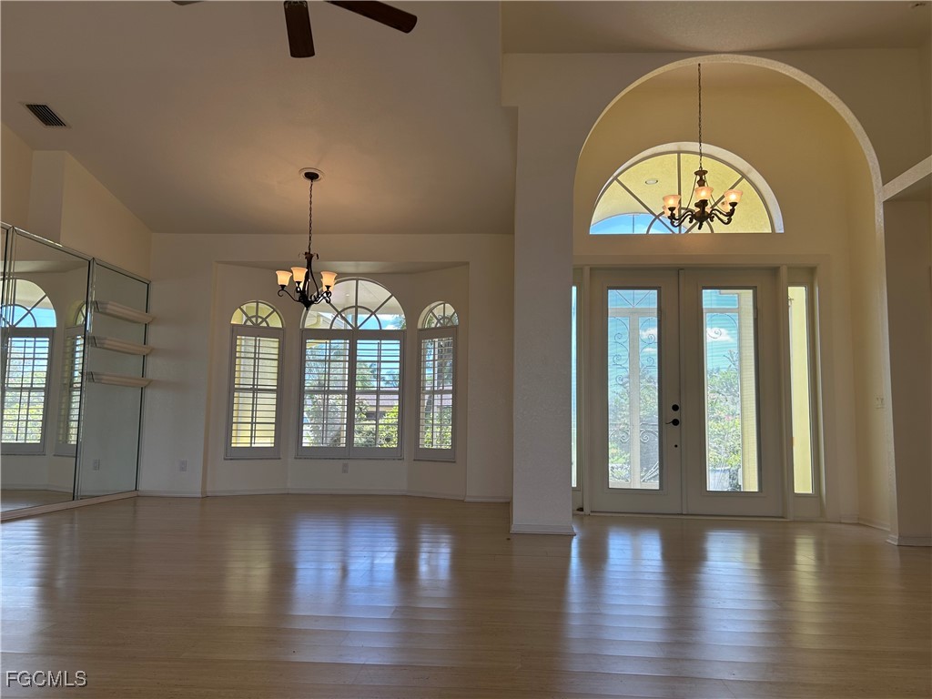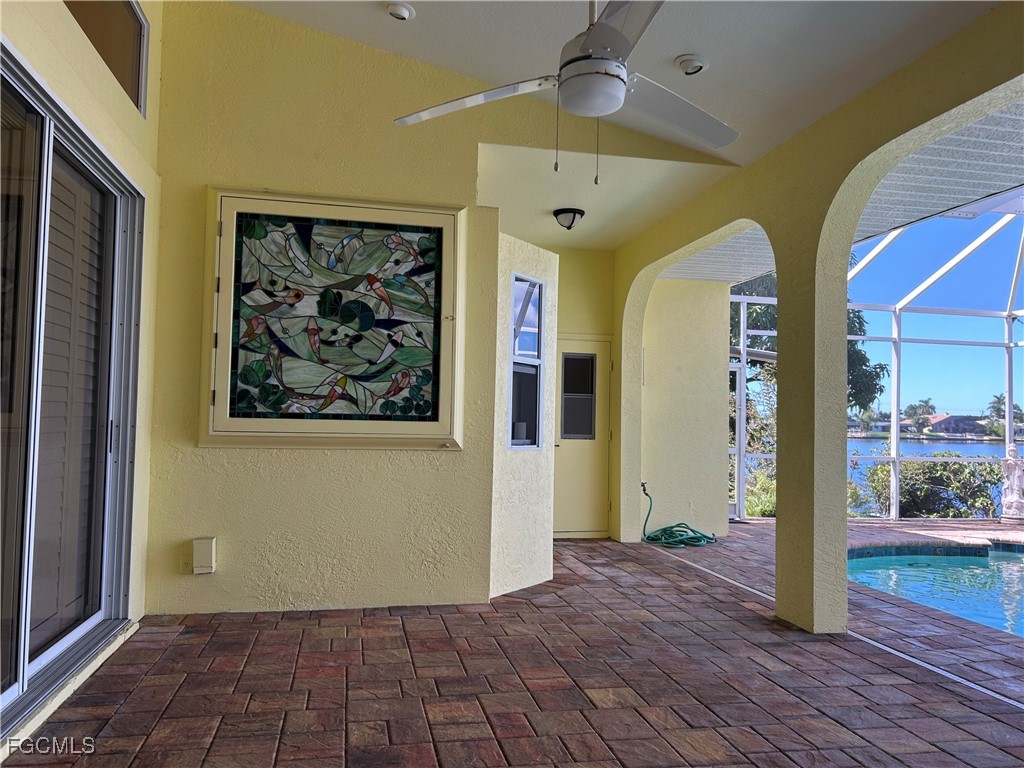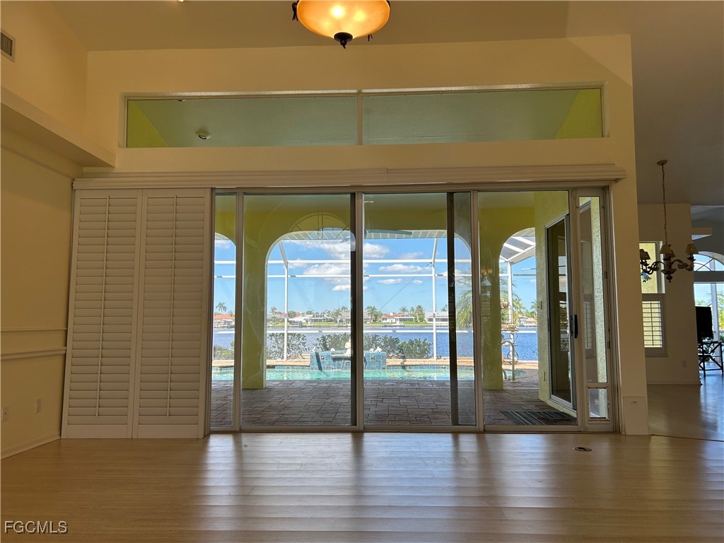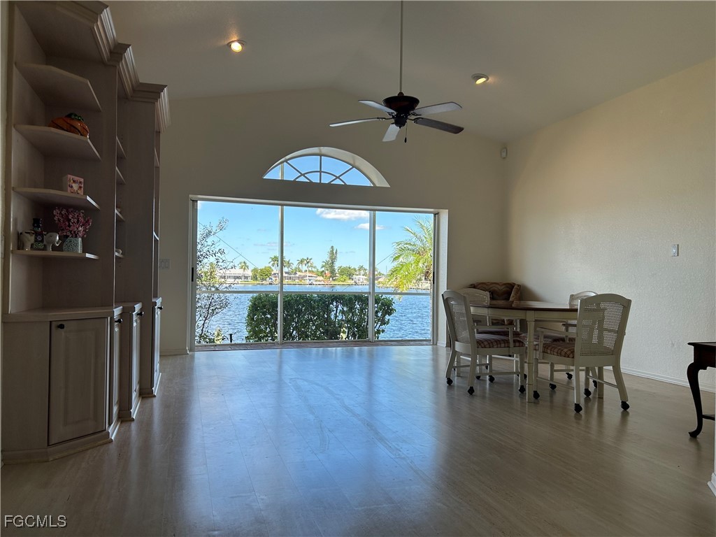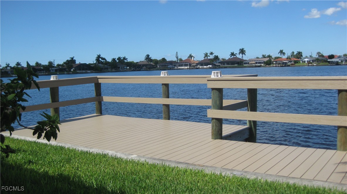 GORGEOUS LAKE VIEW AND GULF ACCESS via one bridge. Thunderbird Lake is calling you. This is what will attract you to this spacious (2,385 sq ft living area), lovingly maintained 3 bedroom, 2 1/2 bath, 2 car garage pool home in the desirable 8-Lakes area off Pelican Blvd. accessible to all points Cape Coral. This home has had NO FLOOD DAMAGE. So many upgrades: updated kitchen with granite counter tops. New tile roof 2017, new, continuously maintained A/C in 2017. Fenced back yard. Beautiful composite deck overlooking the huge glittering lake for your morning coffee or evening leisure. Sparkling pool and screened lanai w/pool bath. Present owners' pride...on lanai, exquisite, hand made by well-known artist stained-glass window with back lighting stays to be enjoyed by new owners.