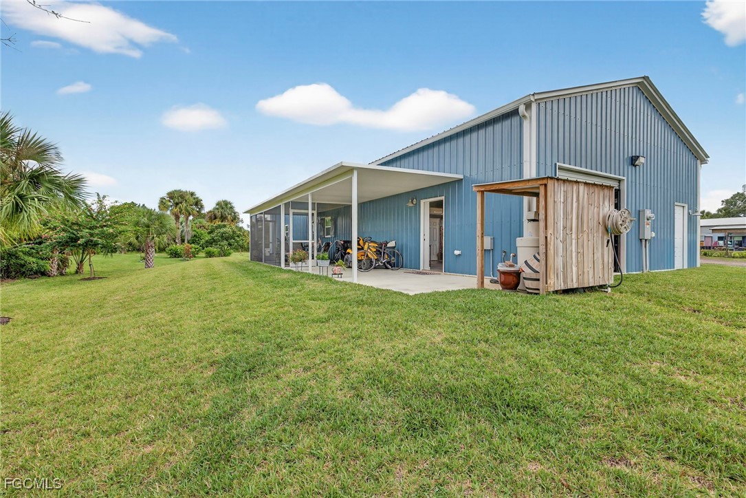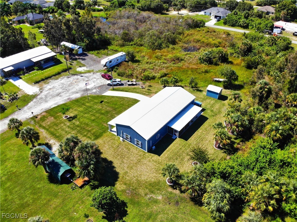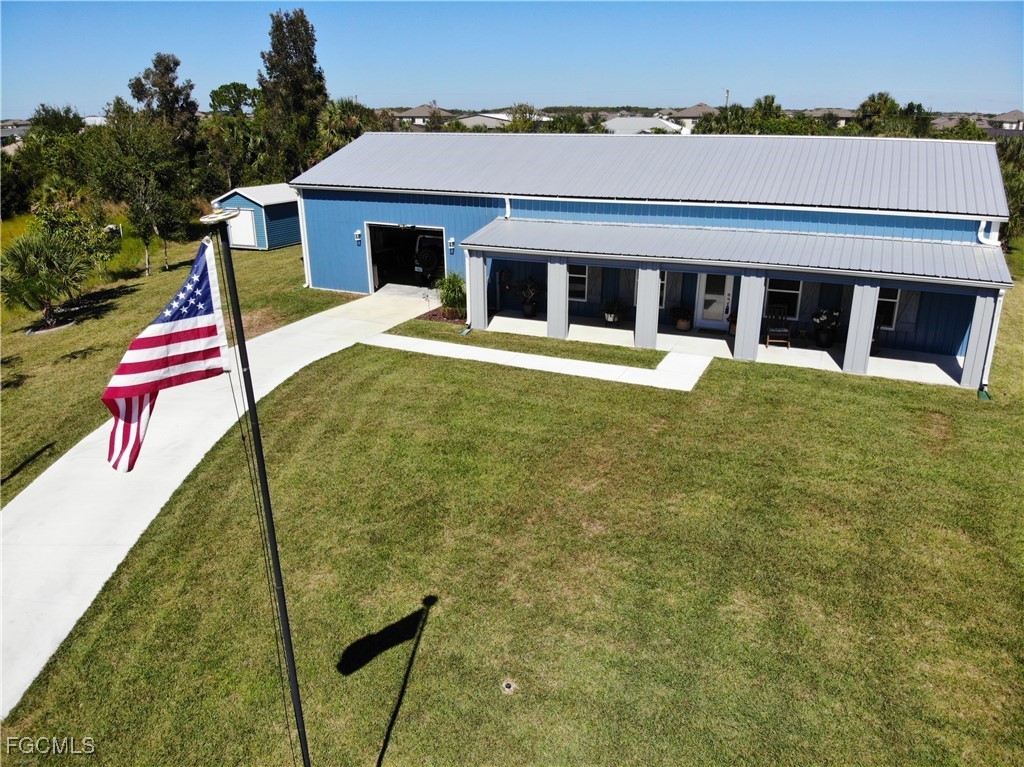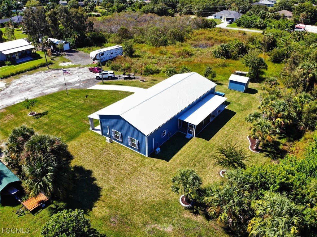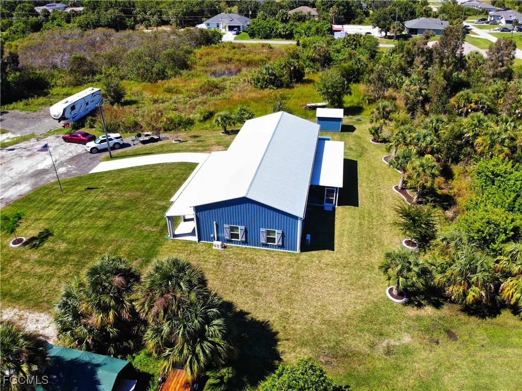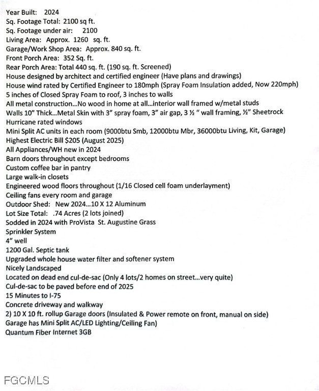 Tucked away on a tranquil cul-de-sac, this modern contemporary steel residence harmonizes luxury, efficiency, and architectural distinction in a serene country setting. Need more space for your kids to play, dogs to run, or to maximize your entertaining lifestyle? Your .74 acre yard will allow for whatever your heart desires. Crafted with precision and built to endure, the structure is rated up to 180 mph winds and fortified with spray foam insulation tested to an extraordinary 220 mph. Buyers wanting to get away from flood zones, with maximum hurricane protection, and clear of the traffic and congestion of inner city, this home is perfect for you. Its hurricane-impact windows and superior engineering ensure enduring peace of mind and remarkable energy efficiency—an exceptional fusion of resilience and refinement. Inside, the residence unfolds like a private retreat, where sophisticated design meets effortless comfort. The open-concept living area showcases rich engineered wood flooring and recessed LED lighting, creating an atmosphere both warm and contemporary. The kitchen is a centerpiece of modern craftsmanship, featuring striking granite countertops, abundant cabinetry, and a spacious walk-in pantry complemented by a discrete butler’s pantry—perfect for seamless entertaining or culinary pursuits. The primary suite evokes the tranquility of a high-end hotel spa, complete with a beautifully tiled walk-in shower and elegant finishes throughout. Every room is individually climate-controlled by its own air-conditioning unit, offering personalized comfort with impressive efficiency. Outdoors, nearly three-quarters of an acre of landscaped grounds provide an expansive canvas for imagination—ample space for a future pool, flourishing garden, or any inspired creation. The screened-in rear porch offers an ideal setting to unwind in privacy while overlooking the surrounding natural beauty. For the hobbyist or craftsman, the 840-square-foot garage workshop is a rare and invaluable feature, blending utility with impressive scale. The property’s automated irrigation system keeps the grounds pristine with minimal effort, enhancing its low-maintenance appeal. Blending contemporary design with rural serenity, this home embodies intelligent living—secure, sustainable, and sophisticated. Every element has been thoughtfully considered to deliver enduring comfort, exceptional value, and timeless style. Click the links for immersive 360 tour, aerials, and be sure to view the last picture which details a master list of features, upgrades, and property details. This property has plenty of room for expansion should you want to add another bathroom, bedroom, mother-in-law suite, outside kitchen-bar, barn, boat storage, or whatever your family can envision. The cul-de-sac road (Helms Court) was recently graded, and resurfacing is scheduled to be done next. Your new home will have completed asphalt black top very soon.