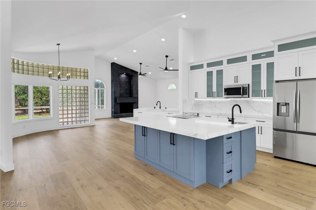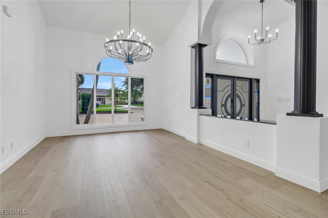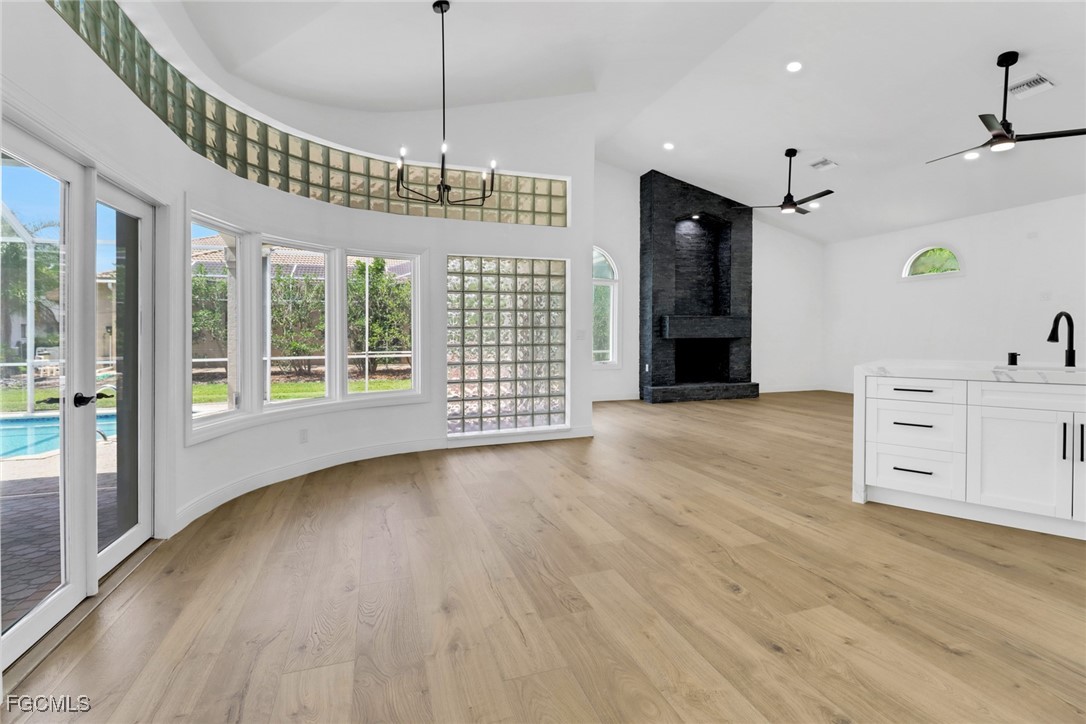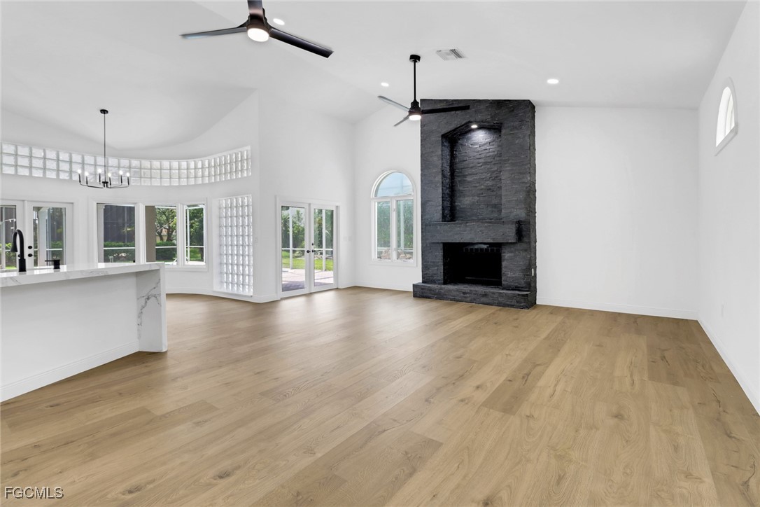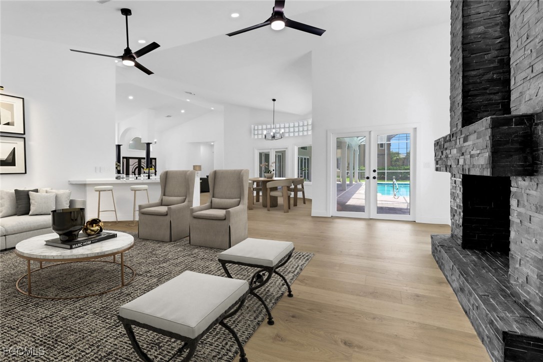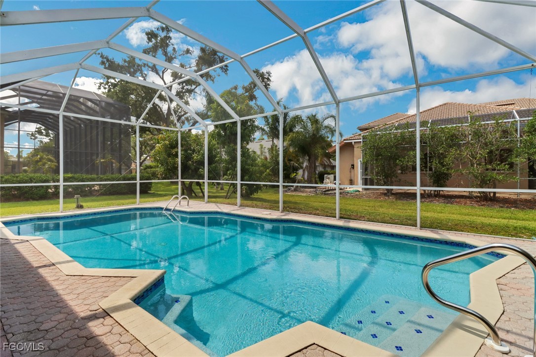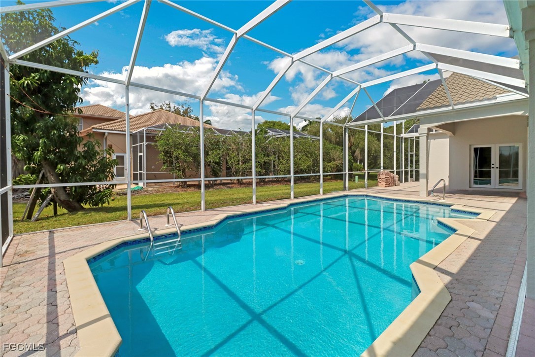 LAST CHANCE BEFORE THE BANK TAKES OVER!!! Soaring 20 FOOT CEILINGS! Nestled within one of the most desireable gated communities in Fort Myers, Carillon Woods, this magnificent residence offers the perfect blend of seclusion and convenience. From the moment you approach the beautiful paved driveway, surrounded by luxurious landscaping, you’ll be captivated by the charm and elegance that define this home. Step through the grand front doors into a bright, open floor plan featuring commercial-grade laminate flooring that effortlessly combines style and durability. The formal dining room, ideal for hosting elegant dinner parties, complements the cozy breakfast nook off the kitchen, creating versatile dining options for any occasion. The heart of this home is undoubtedly its stunning kitchen, equipped with brand new stainless steel appliances, an oversized island, and an additional peninsula that overlooks the inviting family room. Imagine cozy evenings by the wood-burning fireplace, where laughter and memories are shared. Practicality meets luxury with the in-residence laundry room, featuring built-in cabinets for ample storage and a brand-new washer and dryer. The split floor plan ensures privacy and comfort, with a spacious master suite that boasts an oversized walk-in closet and a luxurious bathroom complete with a walk-in shower and standalone soaking tub. Each of the large bedrooms offers custom closets, ensuring plenty of storage space, while modern lighting fixtures throughout the home add a touch of timeless elegance. The magic continues as you explore the outdoor living space. Views of the sparkling pool can be enjoyed from multiple vantage points within the home. The patio, with its own storage closet and full bathroom, is perfect for entertaining or relaxing on sunny afternoons. This home is more than just a place to live; it’s a sanctuary where every detail has been thoughtfully designed to offer comfort, luxury, and a touch of grandeur. Centrally located yet wonderfully secluded, it’s the perfect haven for those seeking both tranquility and convenience. Discover the life you’ve always dreamed of in the friendly community of Carillon Woods. HOA IS ONLY $1200/YEAR!!! NEW A/C UNITS, NEW PEX PLUMBING, UPDATED ELECTRICAL, UPGRADED POOL, NEW APPLIANCES THROUGHOUT AND MUCH MORE!