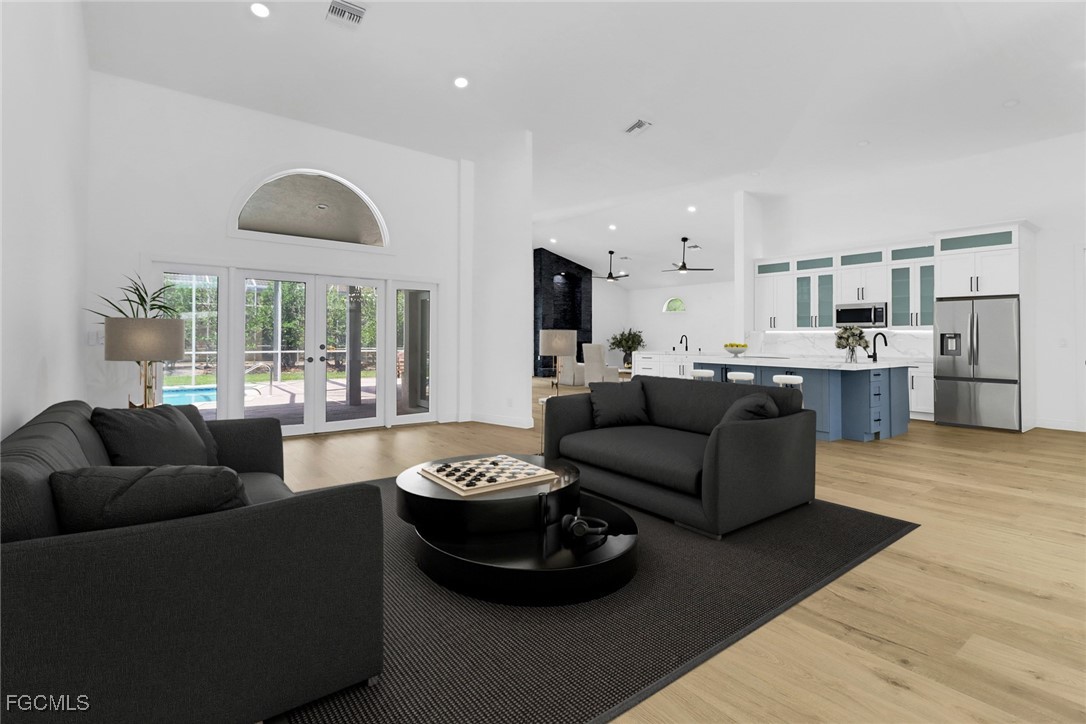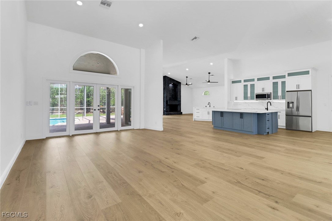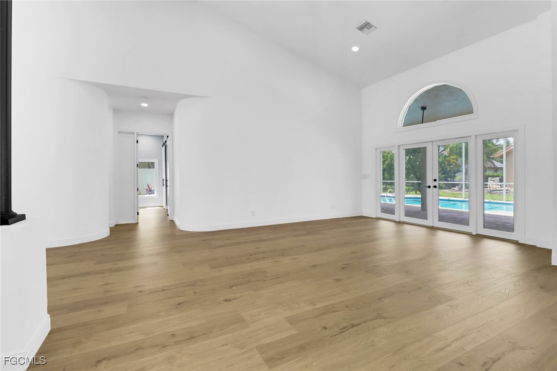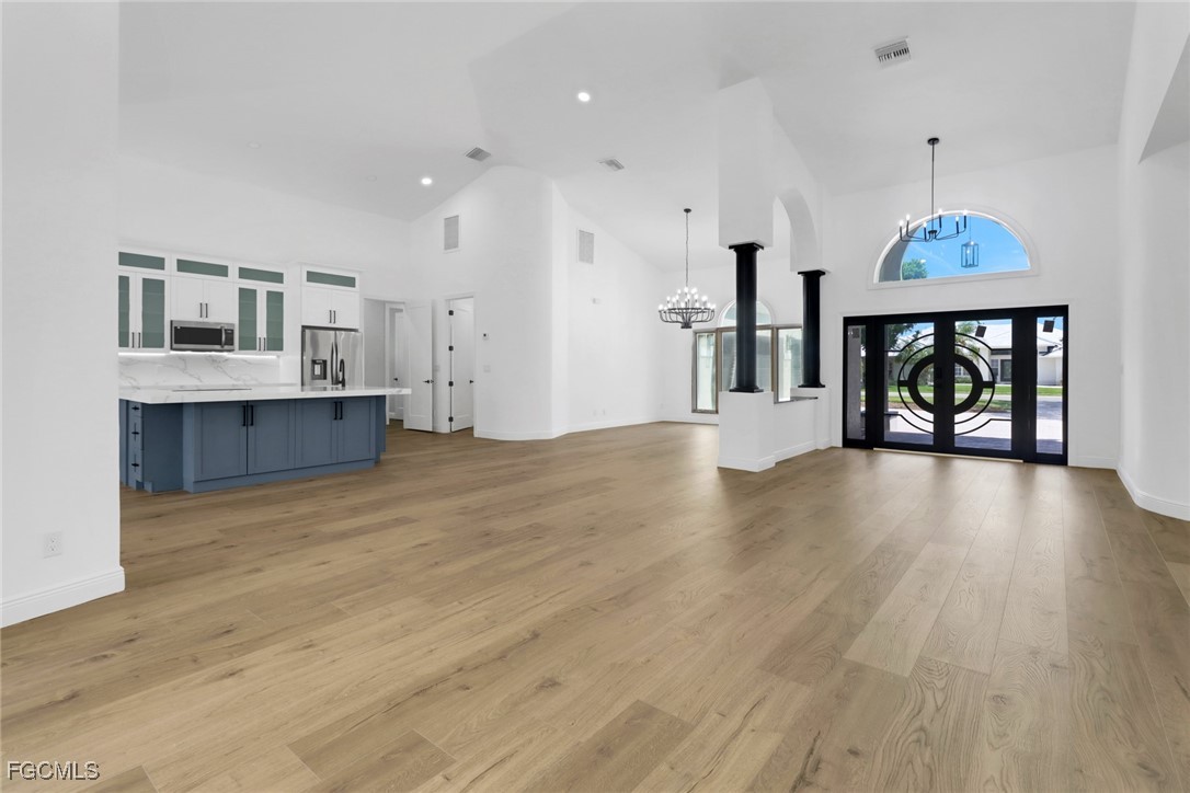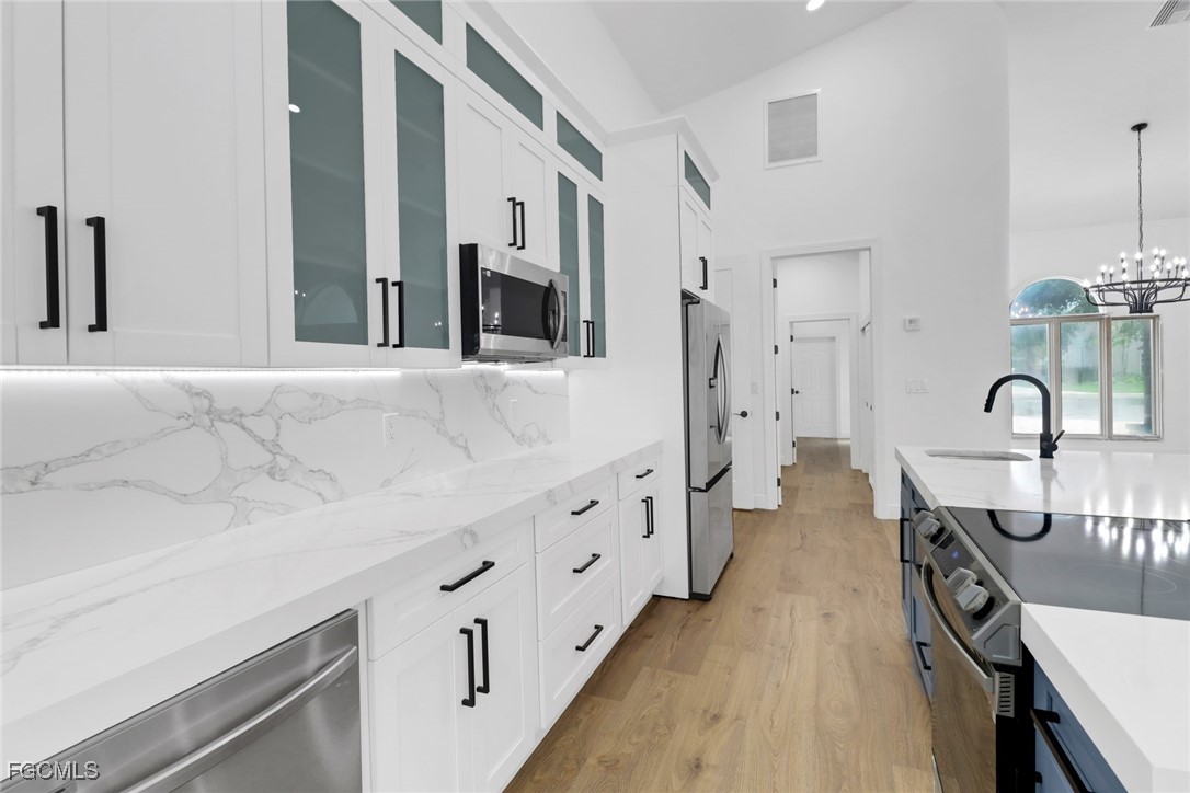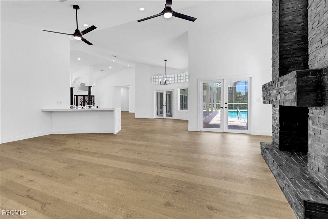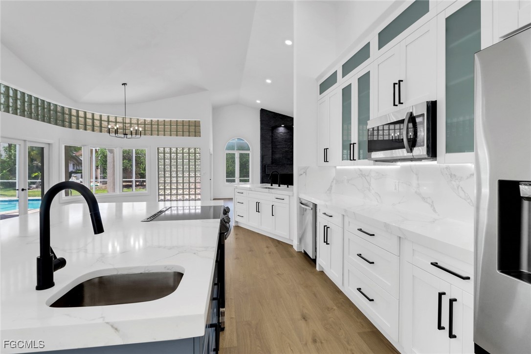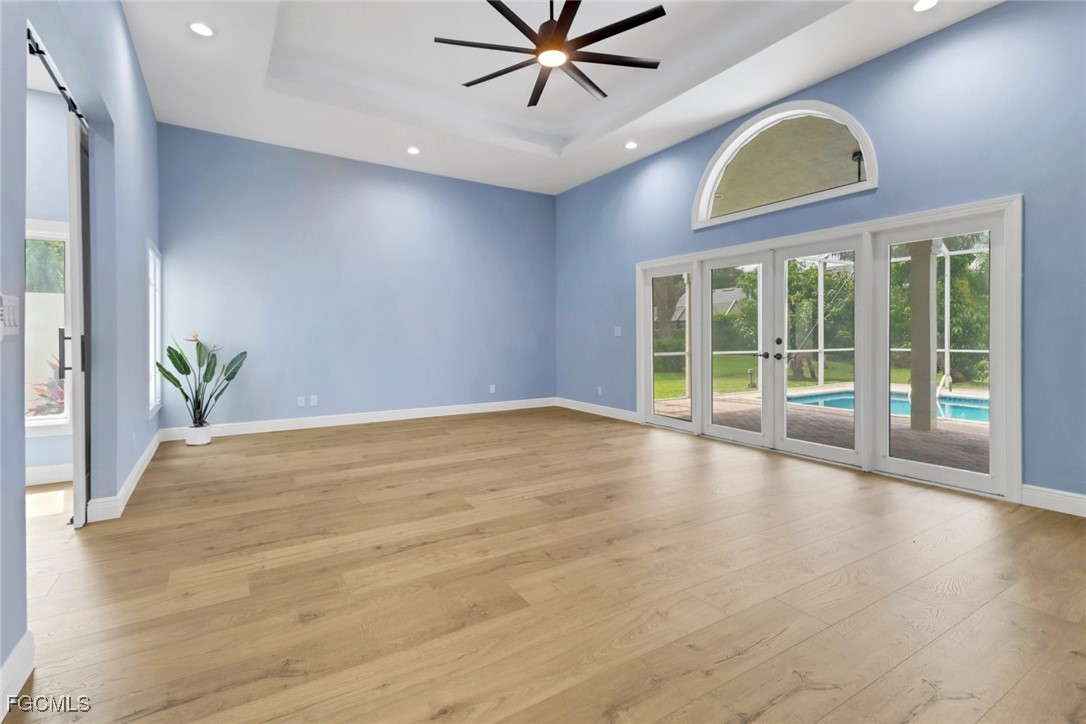 LAST CHANCE BEFORE THE BANK TAKES OVER!!! Soaring 20 FOOT CEILINGS! Nestled within one of the most desireable gated communities in Fort Myers, Carillon Woods, this magnificent residence offers the perfect blend of seclusion and convenience. From the moment you approach the beautiful paved driveway, surrounded by luxurious landscaping, you’ll be captivated by the charm and elegance that define this home. Step through the grand front doors into a bright, open floor plan featuring commercial-grade laminate flooring that effortlessly combines style and durability. The formal dining room, ideal for hosting elegant dinner parties, complements the cozy breakfast nook off the kitchen, creating versatile dining options for any occasion. The heart of this home is undoubtedly its stunning kitchen, equipped with brand new stainless steel appliances, an oversized island, and an additional peninsula that overlooks the inviting family room. Imagine cozy evenings by the wood-burning fireplace, where laughter and memories are shared. Practicality meets luxury with the in-residence laundry room, featuring built-in cabinets for ample storage and a brand-new washer and dryer. The split floor plan ensures privacy and comfort, with a spacious master suite that boasts an oversized walk-in closet and a luxurious bathroom complete with a walk-in shower and standalone soaking tub. Each of the large bedrooms offers custom closets, ensuring plenty of storage space, while modern lighting fixtures throughout the home add a touch of timeless elegance. The magic continues as you explore the outdoor living space. Views of the sparkling pool can be enjoyed from multiple vantage points within the home. The patio, with its own storage closet and full bathroom, is perfect for entertaining or relaxing on sunny afternoons. This home is more than just a place to live; it’s a sanctuary where every detail has been thoughtfully designed to offer comfort, luxury, and a touch of grandeur. Centrally located yet wonderfully secluded, it’s the perfect haven for those seeking both tranquility and convenience. Discover the life you’ve always dreamed of in the friendly community of Carillon Woods. HOA IS ONLY $1200/YEAR!!! NEW A/C UNITS, NEW PEX PLUMBING, UPDATED ELECTRICAL, UPGRADED POOL, NEW APPLIANCES THROUGHOUT AND MUCH MORE!