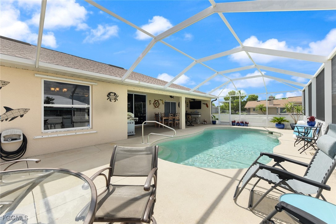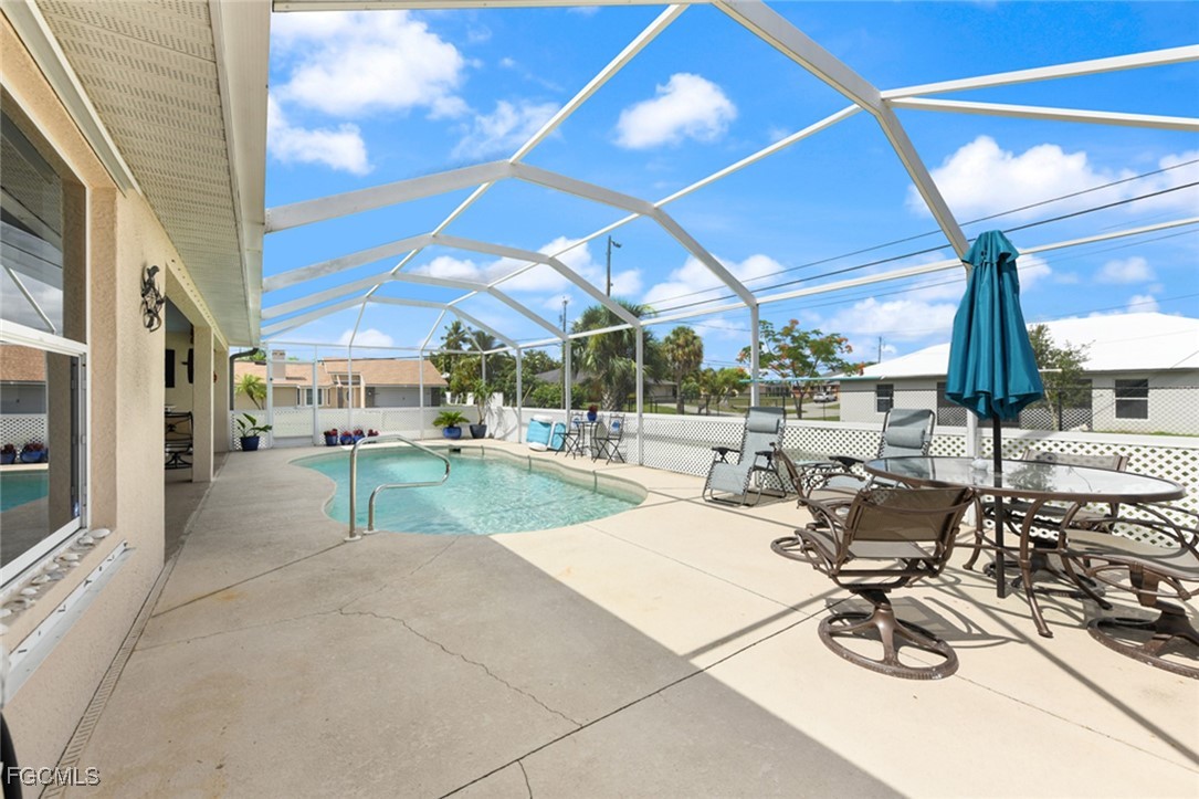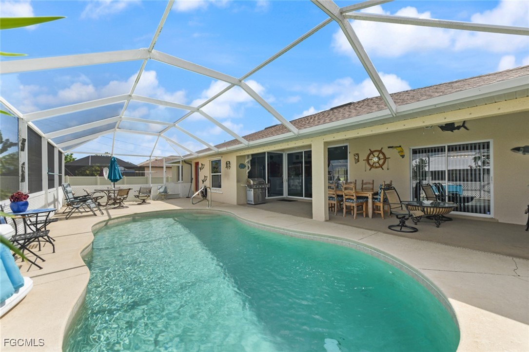 Escape to Paradise with this well maintained and spacious Cape Coral home located on a corner lot in the highly sought after area of Southwest Cape Coral. Featuring 3 bedrooms, 2 bathrooms, den/study, volume ceilings and pool. New roof 2023. Newer AC system and hot water heater plus many more spectacular features for you to enjoy the Florida lifestyle. No water intrusion here. Large under covered screened in lanai with pool and pool bath directly from the lanai for your enjoyment. Priced to sale based on current market conditions. Come take a look! You will not be disappointed.