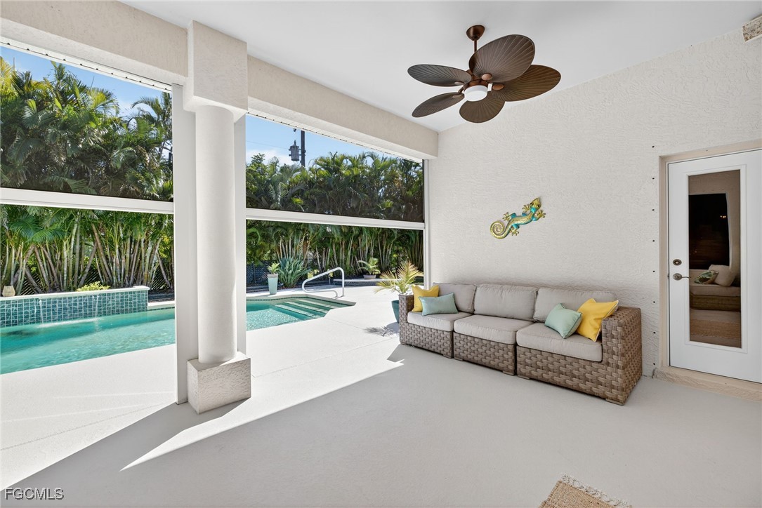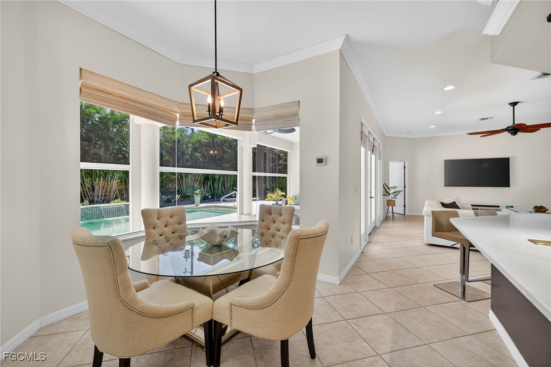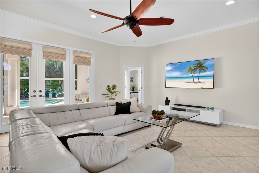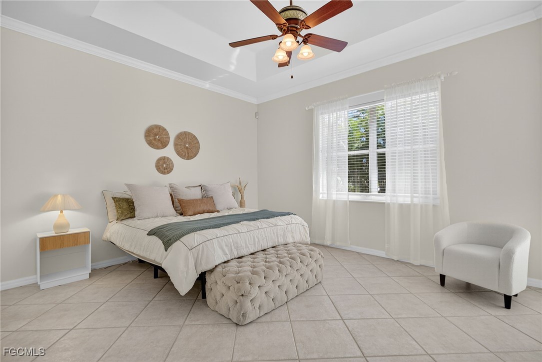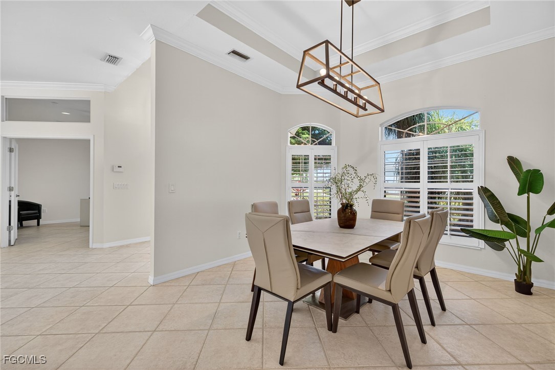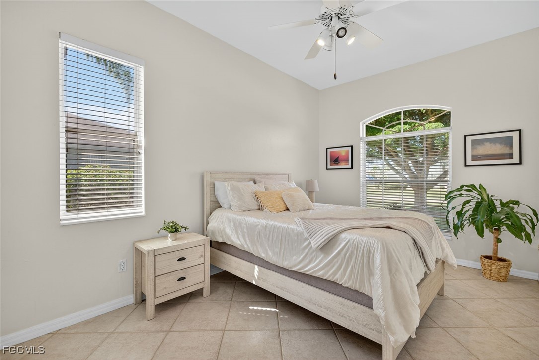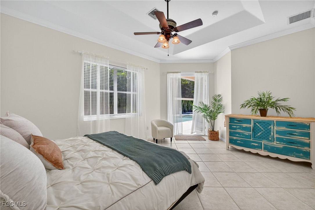 Attention VETERANS! Very LOW assumable mortgage rate. Stunning and spacious, this home features a grand double door entry that sets the tone for the elegance within. Situated on a spacious 3-lot site with desirable southern exposure in the Four Mile Cove Preserve neighborhood, this home is ideal for a large family or perfect as a seasonal rental. You’ll find attention to detail throughout. Tons of natural light fill the open interior, featuring three private bedroom suites, each with its own full bath. Enjoy tray ceilings, crown molding, plantation shutters, natural woven shades, large diagonal tile throughout, and two separate versatile offices ideal for working from home or creative space. The updated kitchen and baths showcase quartz countertops, work station sink, stainless steel appliances, a walk-in pantry, tons of cabinets, an extended island, and a breakfast nook overlooking the pool. Step outside to your oversized pool and spa with waterfall and lanai complete with automatic roll-down SPF bug sunscreens—your own private oasis surrounded by lush landscaping, shade trees, tropical birds of paradise, and a new sprinkler system to keep it all vibrant. Additional highlights include a new privacy fence, no HOA fees, and all assessments in and paid. Peace of mind comes with a new A/C and ductwork (2023), plus storm-ready construction that withstood 150 mph winds and remained flood-free. All in a quiet neighborhood within walking distance to major stores, yet far enough away to enjoy total tranquility—just minutes to Veterans Bridge.