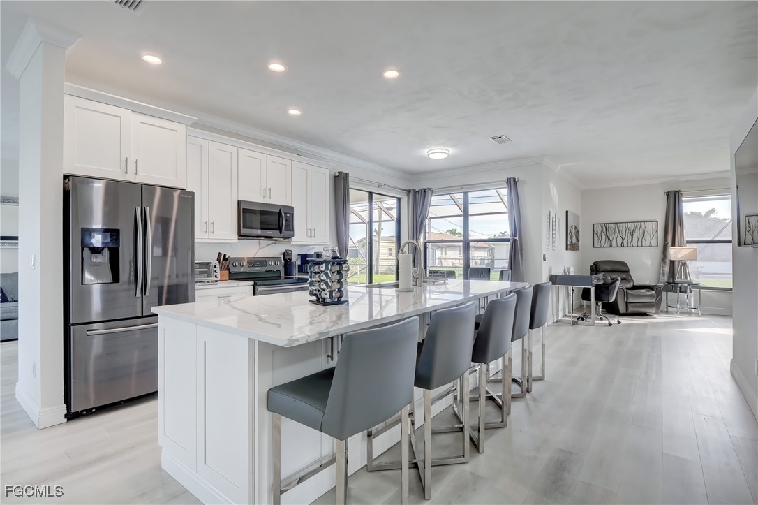 Welcome to your slice of paradise in sunny Southwest Florida! This beautifully remodeled 3-bedroom, 2-bathroom pool home is currently operating as a successful income-producing VRBO — an incredible opportunity for investors or anyone looking for a move-in ready retreat. Offering nearly 2,000 square feet of living space under air, the home impresses from the start with a bright, open floor plan filled with natural light and modern finishes throughout.