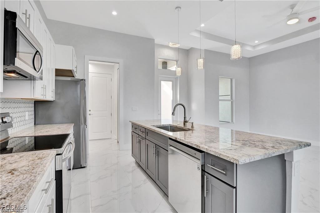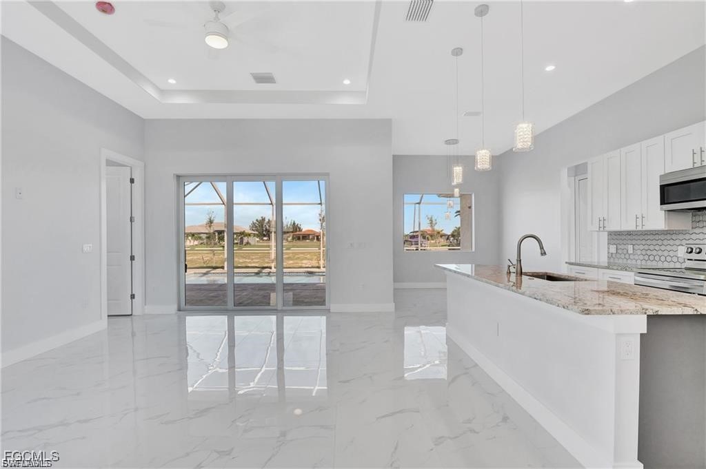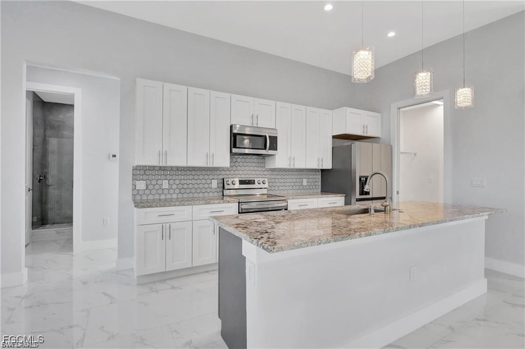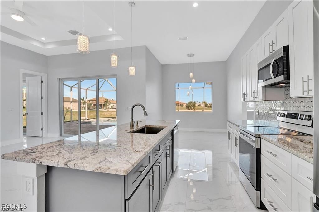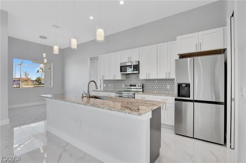 Resort-Style Living in NW Cape Coral’s Hottest Growth Corridor ! Step into paradise with this beautifully crafted Lago Model pool home, nestled in the highly desirable Northwest Cape Coral—where breathtaking sunsets paint the sky and future development like the 7 Islands Project and Crystal Lake promise even more lifestyle perks. This move-in ready gem boasts quality construction and upscale finishes throughout, including soaring ceilings, elegant 8-foot doors, 6-inch baseboards, and PGT impact-rated windows and doors for peace of mind. The open-concept layout flows effortlessly across textured walls and tile flooring, anchored by a chef’s kitchen with granite countertops, wood cabinetry, and stainless steel appliances. The spacious primary suite offers dual walk-in closets, double vanities, and a spa-like shower—your personal retreat after a day on the water. Outside, unwind in your screened saltwater pool oasis, surrounded by lush landscaping and a full irrigation system. Whether you're hosting friends or enjoying a quiet sunset swim, this home delivers the resort lifestyle you’ve been dreaming of. Additional highlights include: Epoxied garage floor & generator plug ready, Washer & dryer included, 2-car garage, and Impact windows & doors. Cape Coral is one of Florida’s fastest-growing cities, known as the City of Canals—with endless boating, fishing, and beach-hopping adventures just minutes away. Fall in love. Make this house your home. Schedule your private showing today and experience the tropical lifestyle that only Southwest Florida can offer.