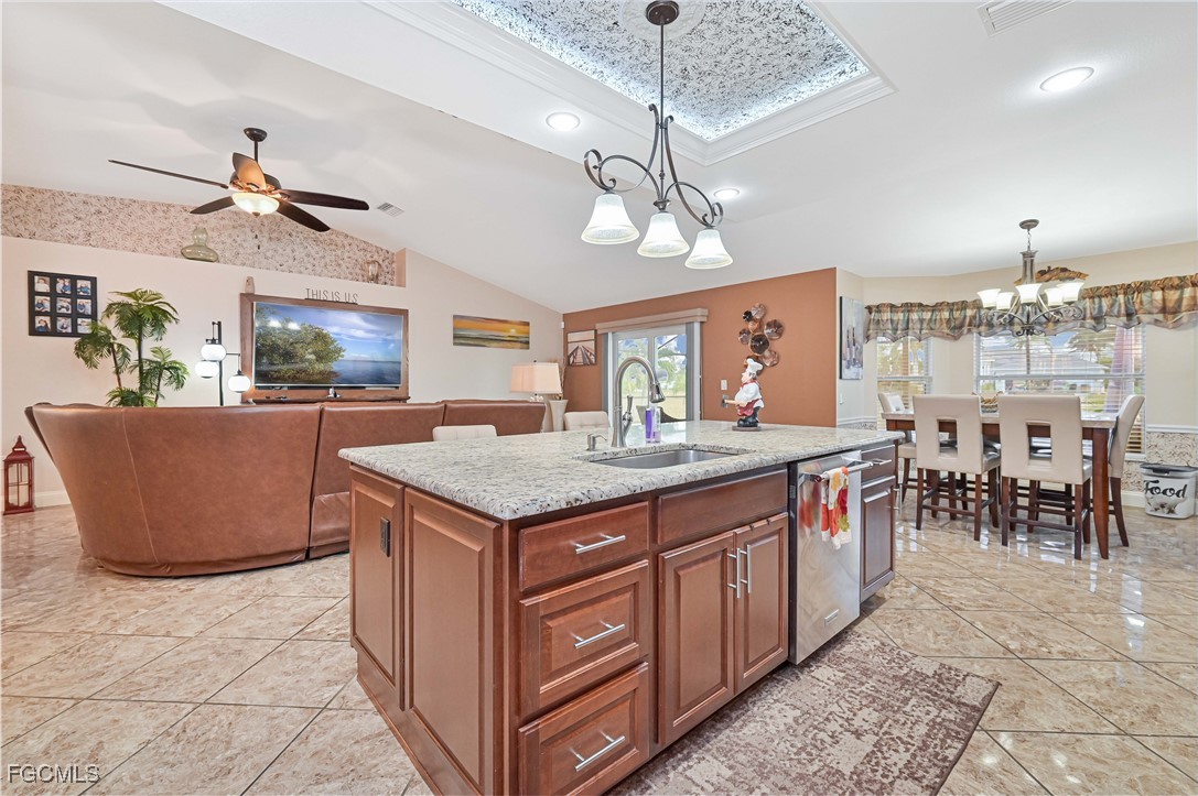 Welcome to 1605 NW 43rd Ave, your future “why didn’t we move here sooner?” home, tucked inside one of the most desirable pockets of NW Cape Coral. Surrounded by an enclave of stunning Gulf-access homes, this 4+Den, 2-Bath, 2-Car Garage beauty delivers space, style, and just the right amount of bragging rights. Step into the gourmet chef’s kitchen—yes, that kitchen—the one with high-end appliances, custom cabinetry, and an island so massive it deserves its own zip code. Whether you love cooking or just love looking like you love cooking, this kitchen has your back.