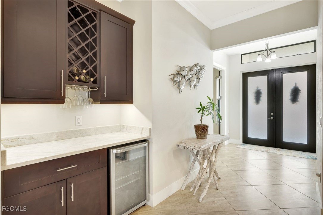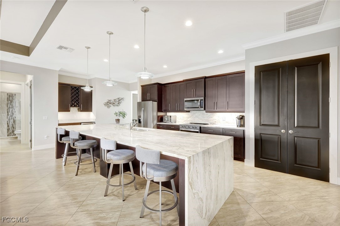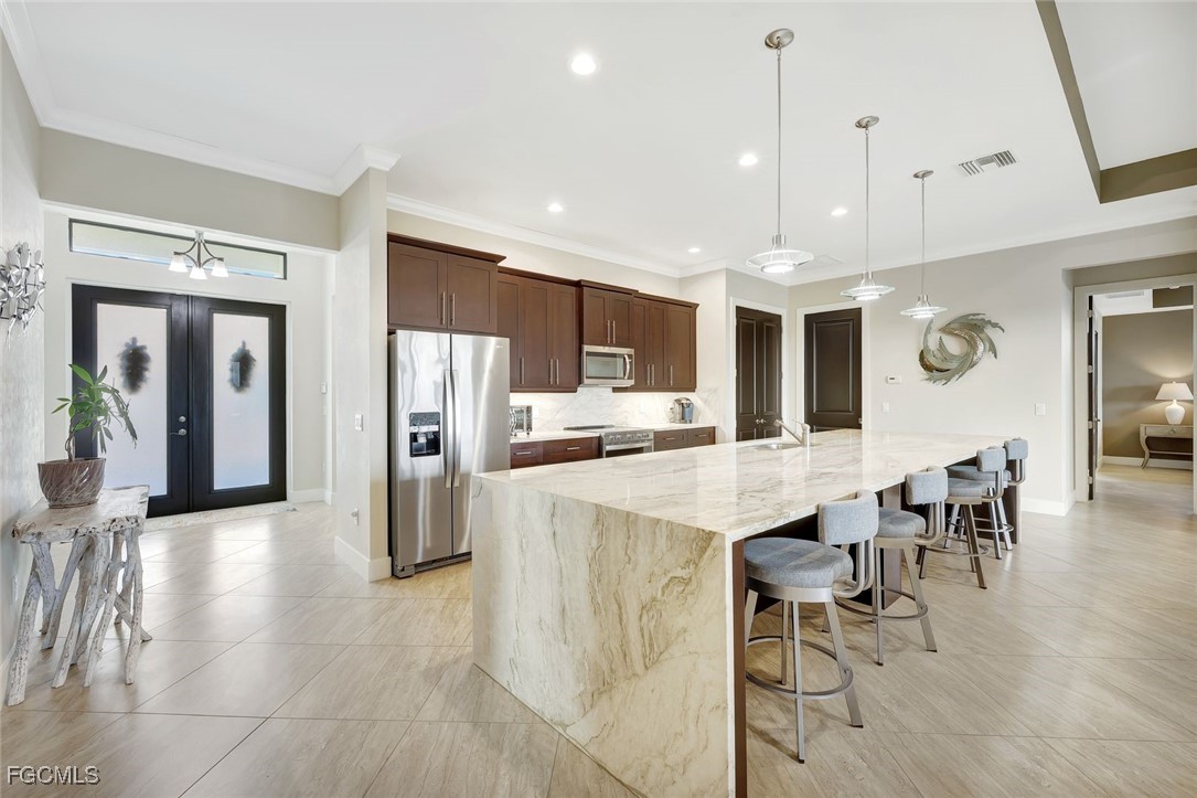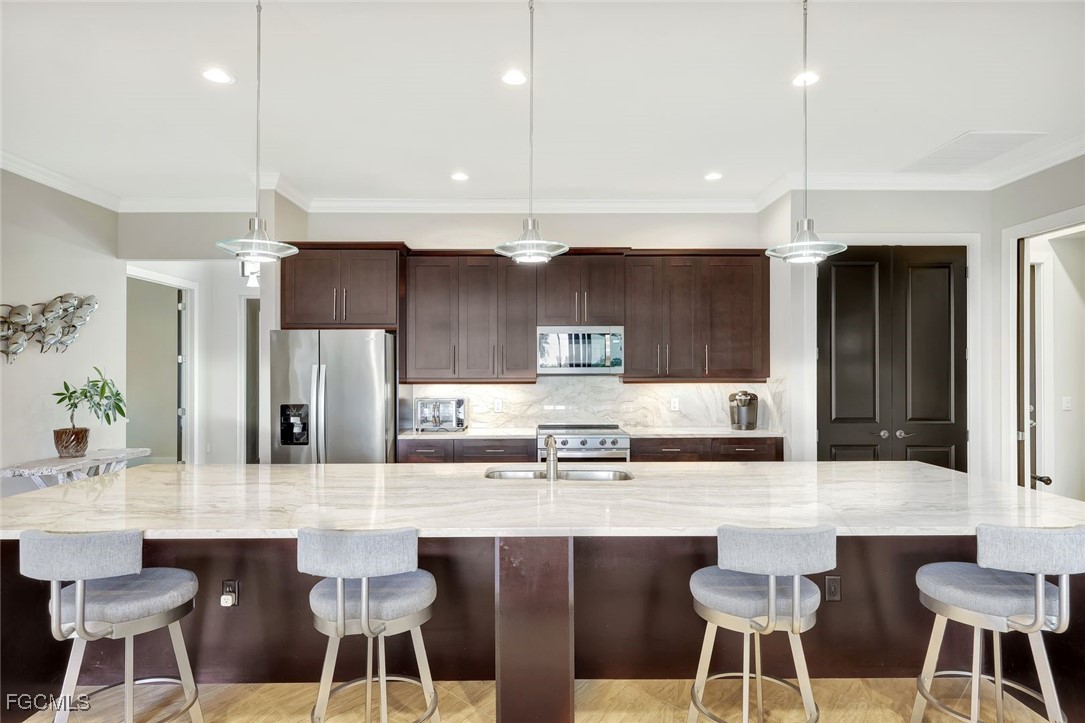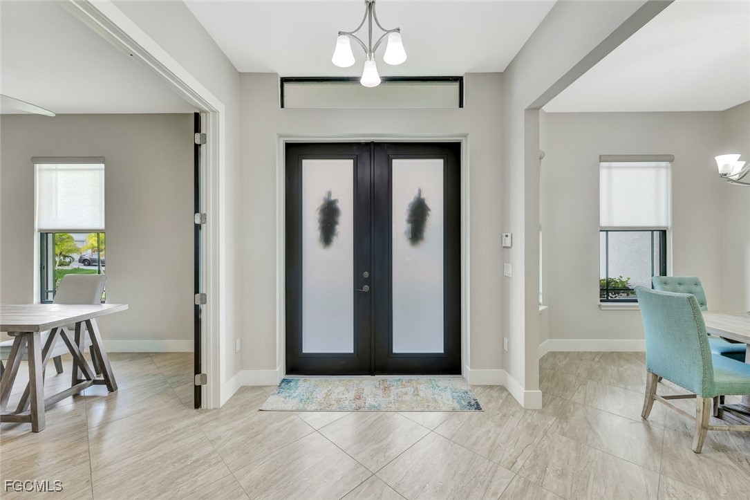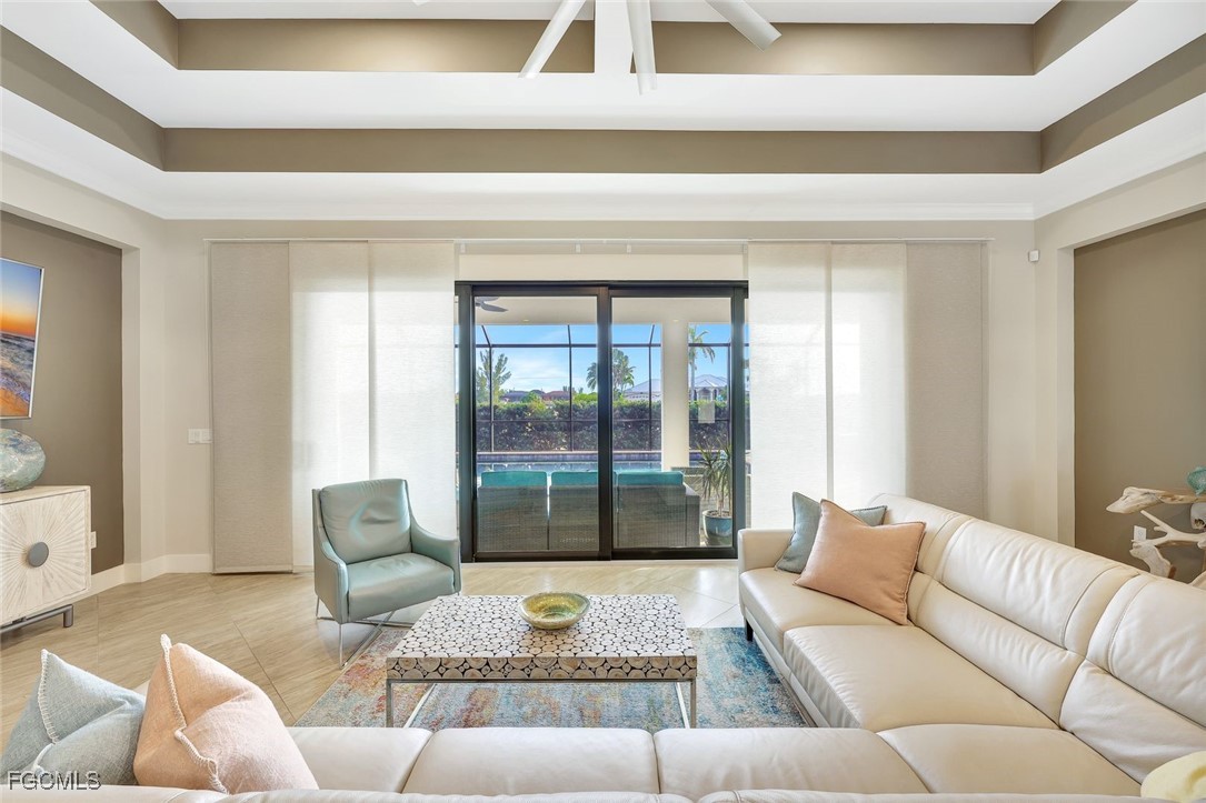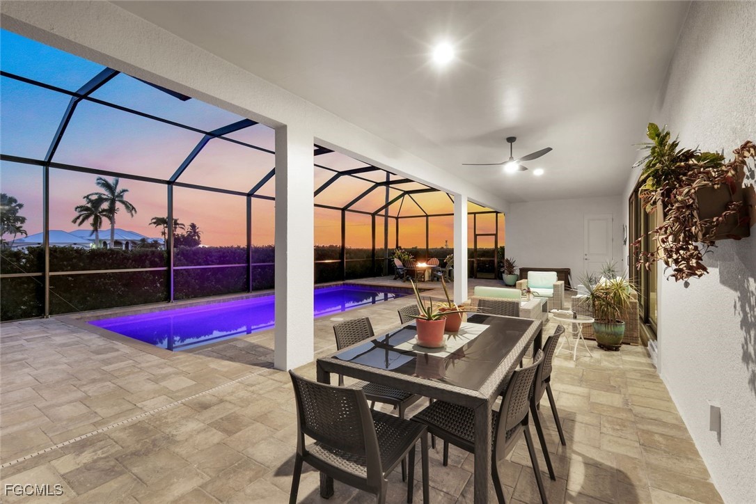 Welcome to this stunning better than new 2020 custom-built residence situated on a desirable corner lot in one of NW Cape Coral’s most peaceful and private neighborhoods. This immaculate 4-bedroom, 3-bath home offers an exceptional blend of modern luxury and everyday comfort, featuring coffered ceilings, 24" x 24" tile throughout, elegant crown molding, designer lighting, and expansive sliding glass doors that open to a resort-style outdoor oasis. The chef’s kitchen is equipped with upgraded Whirlpool stainless-steel appliances, premium cabinetry, pantry and an oversized stone waterfall island perfect for entertaining. The spacious owner’s suite provides direct lanai access, a relaxing retreat with a spa-inspired bathroom, dual vanities, a walk-through shower, and generous walk in closet space. Generously appointed guest bedrooms, while bedroom #4 includes its own ensuite pool bath for added guest convenience. The outdoor living area showcases a beautiful lap-style PebbleTec finish with auto pool filler, a large under-truss lanai, panoramic screened enclosure, and serene sunset views, all enhanced by mature privacy hedges surrounding the property. Additional upgrades include a new roof (2023), 2024 exterior paint, reverse osmosis system, hard-wired security, whole-home surge protection, and a generator hookup at the electric meter. A spacious three-car garage, pavered driveway, and lush landscaping further elevate this already remarkable home. Ideally located near the future Seven Islands development, Burnt Store Boat Ramp, marinas, New Crystal Lake Park and waterfront dining, this residence stands out as one of the finest off-water properties in NW Cape Coral—offering luxury, privacy, and modern convenience at every turn. Schedule your private showing today.