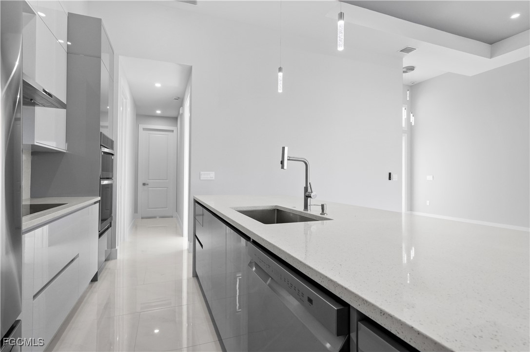 Experience modern living in this spacious 4-bedroom, 3-bathroom home featuring a bright and open floor plan. The master suite offers dual sinks and two large walk-in closets for ultimate comfort and convenience. Polished porcelain flooring flows throughout, creating a sleek and contemporary aesthetic. The gourmet kitchen showcases upgraded quartz countertops and stainless steel appliances, perfectly complementing the open living and dining areas. Enjoy outdoor entertaining under the under-truss lanai with an outdoor kitchen, paver patio, and a beautiful pool. Additional highlights include a fenced backyard and paver driveway. Prime location—close to Matlacha, restaurants, stores, and grocery shopping on Pine Island Blvd. Enjoy nearby entertainment and outdoor activities, including the ocean at Matlacha and Pine Island for fishing, boating, and parks. This home blends style, functionality, and Florida outdoor living effortlessly