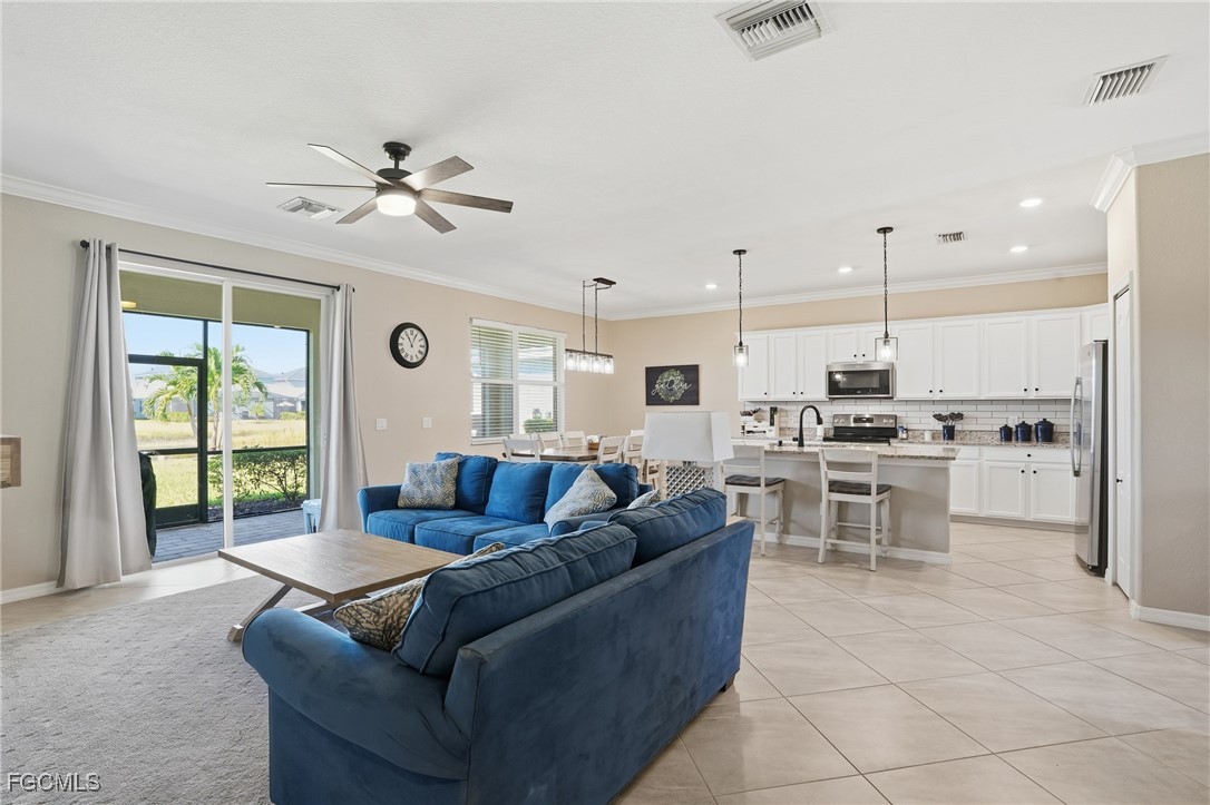 Step into one of the most exciting opportunities in Orange Blossom Ranch. This upgraded Amalfi model is now a true five bedroom plus private den home with one of the largest backyards in the entire community and incredible long lake views with glowing rear sunset exposure. This is the lifestyle people move to Naples for.