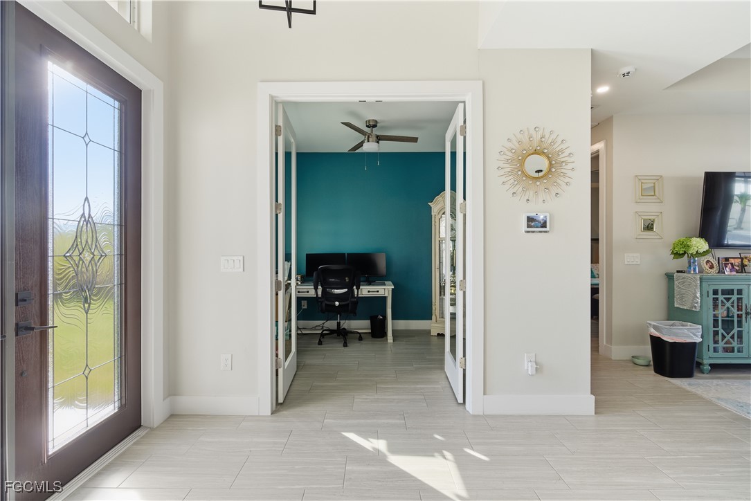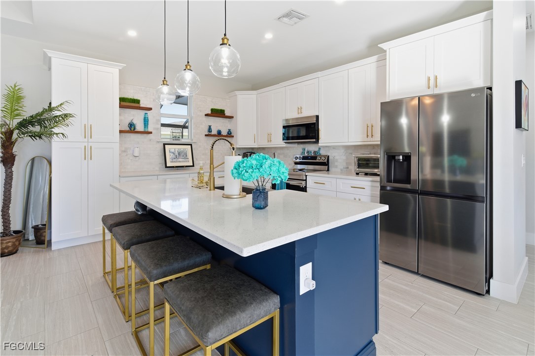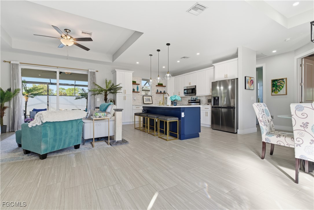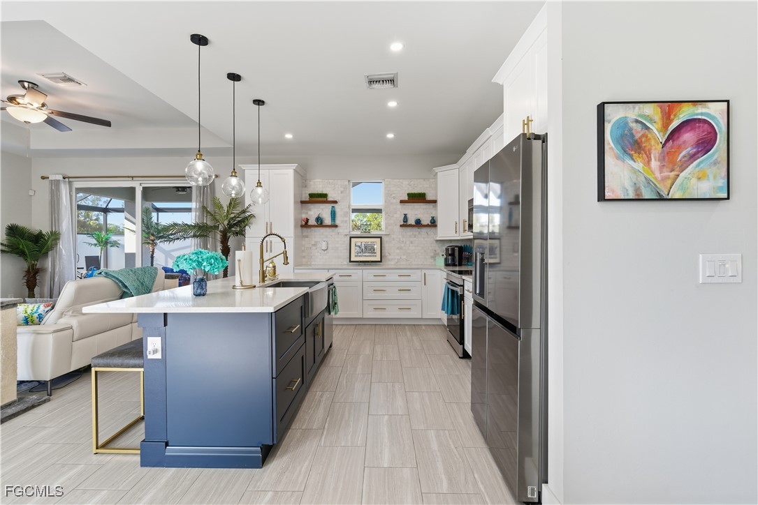 Look no Further!!! You Found Your Florida Dream Home away from the city. This 3 Bedroom + Den Home was built in 2023 with a lot of Detail and Love. The Beautiful curb appeal and 13 ft foyer entrance with a modern farmhouse pendant hanging light will make you feel right at Home. The Floors are gray porcelain modern tile throughout the home. There are 10ft ceilings with 9.5ft tray ceilings and 44" brush nickel LED fans in each room. In the living area you will find a 60" wood LED ceiling fan and a Modern Farmhouse Chandelier for you to enjoy in the Dinning area while you entertain your guest in this beautiful open floor plan. The spacious kitchen shows white 32" shaker cabinets with a special touch of Gold handles. The inviting and luxurious blue Kitchen island with quarts countertop and 3 glass pendant lights hanging above it would be a great gathering place for family and friends. The exquisite details of Mosaic backsplash, floating shelves and a farm stainless steel sink with a Gold faucet will facinate you. A 12ft X 32ft breath taking salt water pool with a 8ft x 8ft spa awaits you in a spacious deck with a privacy feature pool cage to fill your days with happiness. Pent Air pool equipment installed. If it was not enough this Amazing Home also features Solar panels with back up batteries for when the electricity goes out. For your safety they also installed a CHI Zone 5 hurricane rated garage door, impact resistant windows and entrance door. Make this your Home and Enjoy the Florida Lifestyle you've always wanted!!! Make an appointment to come and see this Beautiful Home in person. You will be Amazed!!!