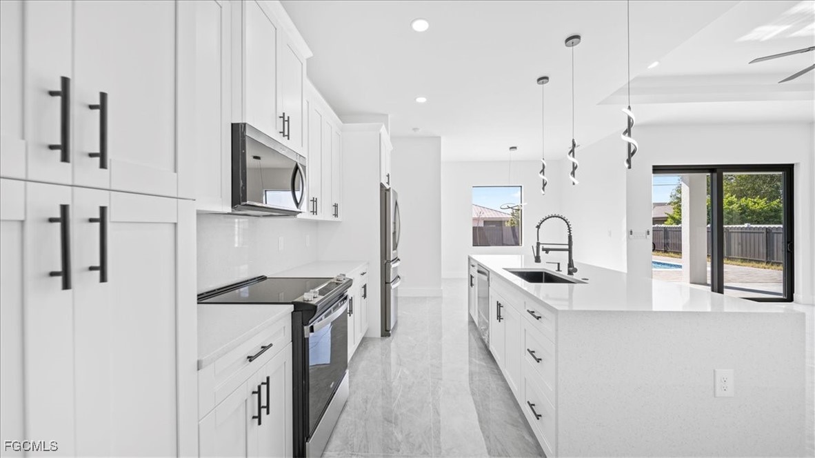 Brand-New 2025 Construction with a pool – Step into stylish Florida living with this brand-new 3-bedroom, 3-bathroom home, complete with a dedicated den/office, laundry room, and spacious 2-car garage. Thoughtfully designed with impact-resistant windows and doors. it's not located in a flood zone. Inside, you'll love the open-concept great room with soaring 8-foot interior doors and abundant natural light. The modern kitchen with stainless steel appliances. Enjoy luxury finishes throughout, including modern lighting, premium flooring, and refined design details. Step outside to your lanai with an outdoor kitchen, ideal for relaxing in a pool perfect for enjoying the Florida lifestyle. The property is on city water.