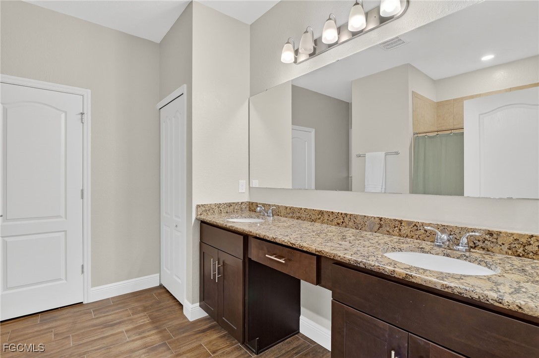 Designed for entertaining and everyday ease, the kitchen features a massive granite island with plenty of seating, double wall ovens, abundant soft-close cabinetry, a walk-in pantry, and expansive counter space that makes cooking for two or twenty effortless. Beautiful wood-plank porcelain tile runs throughout all the main living areas, while plush carpet keeps the bedrooms cozy and quiet.
