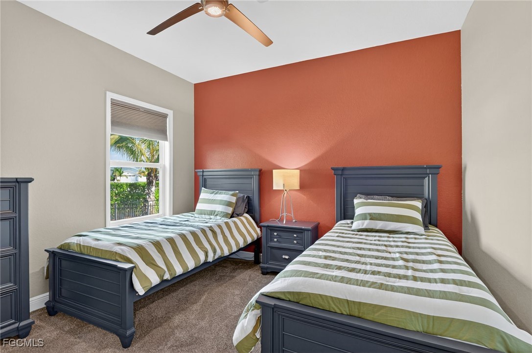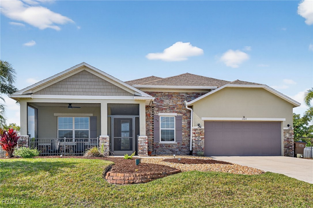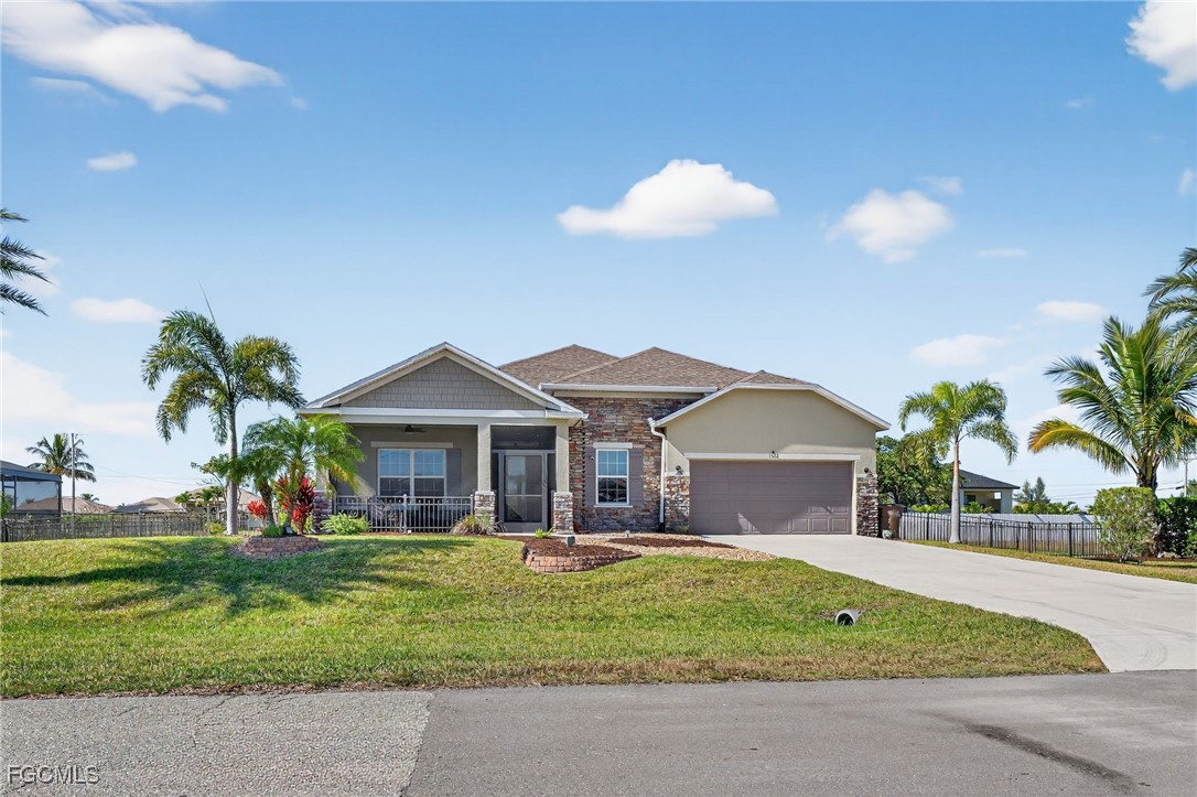 The true magic happens outside. The western-exposure lanai stretches the full width of the house, framing spectacular sunset views every evening. Dive into the heated saltwater pool with its sun shelf and bubbler, dine under the covered truss area, or simply relax on the generous travertine-paver deck. An aluminum fence encloses the expansive, fully fenced backyard—one of the largest lots in the area at 0.344 acres (150 ft deep)—delivering rare space and privacy you won’t find in most Cape Coral homes.