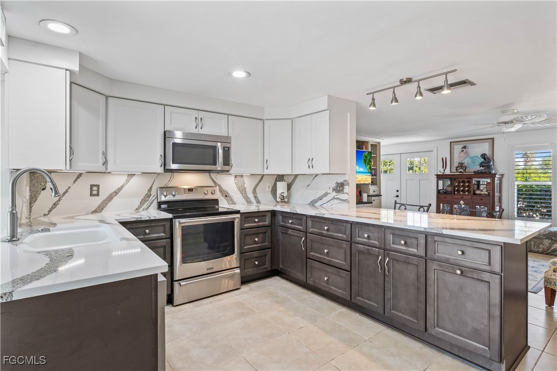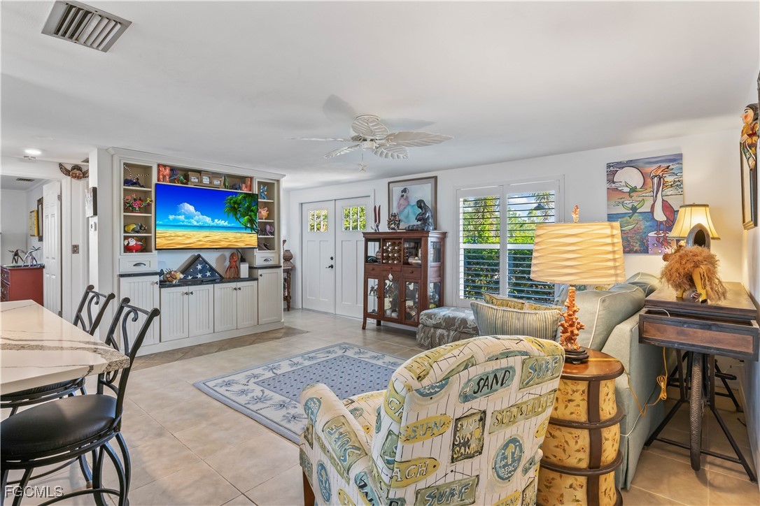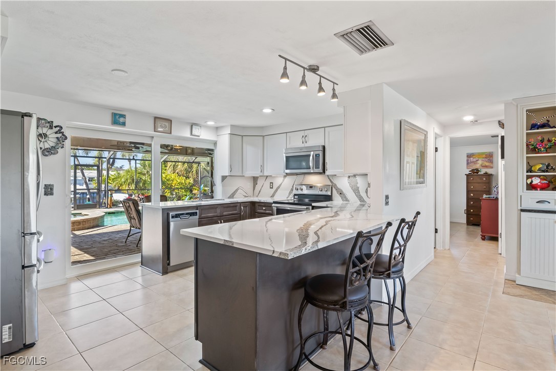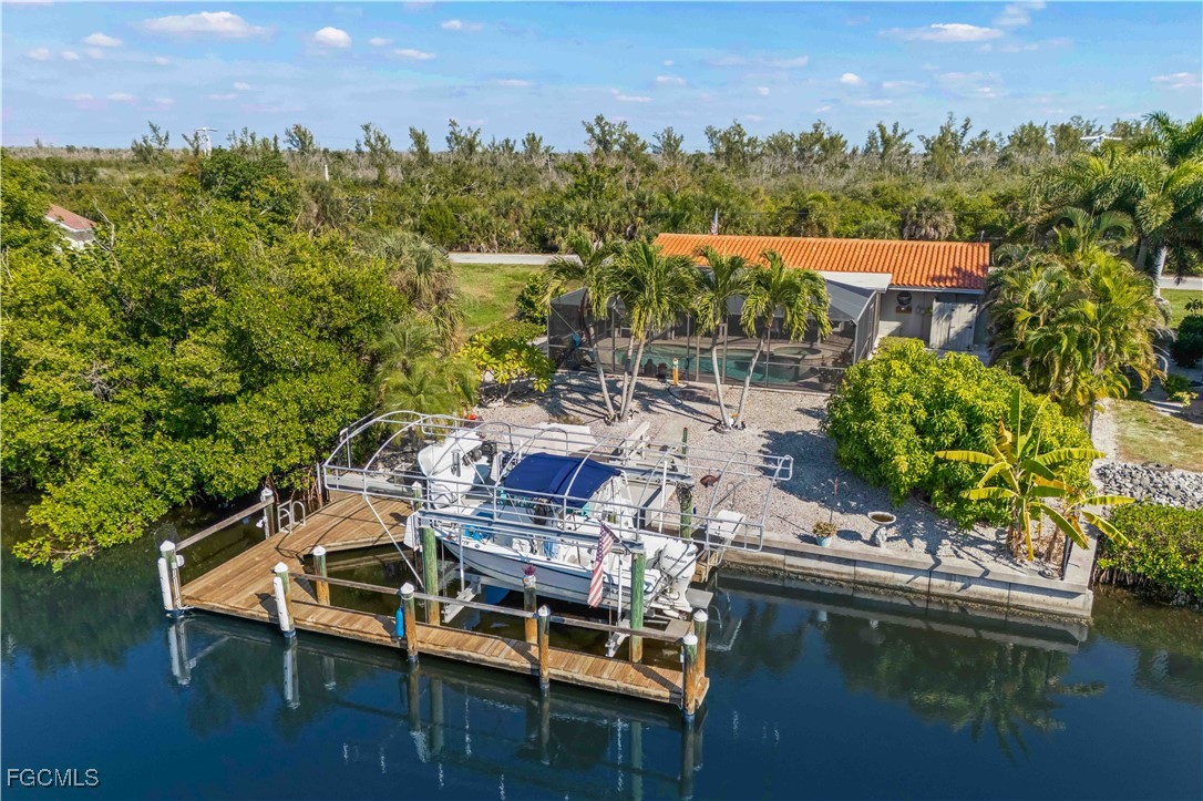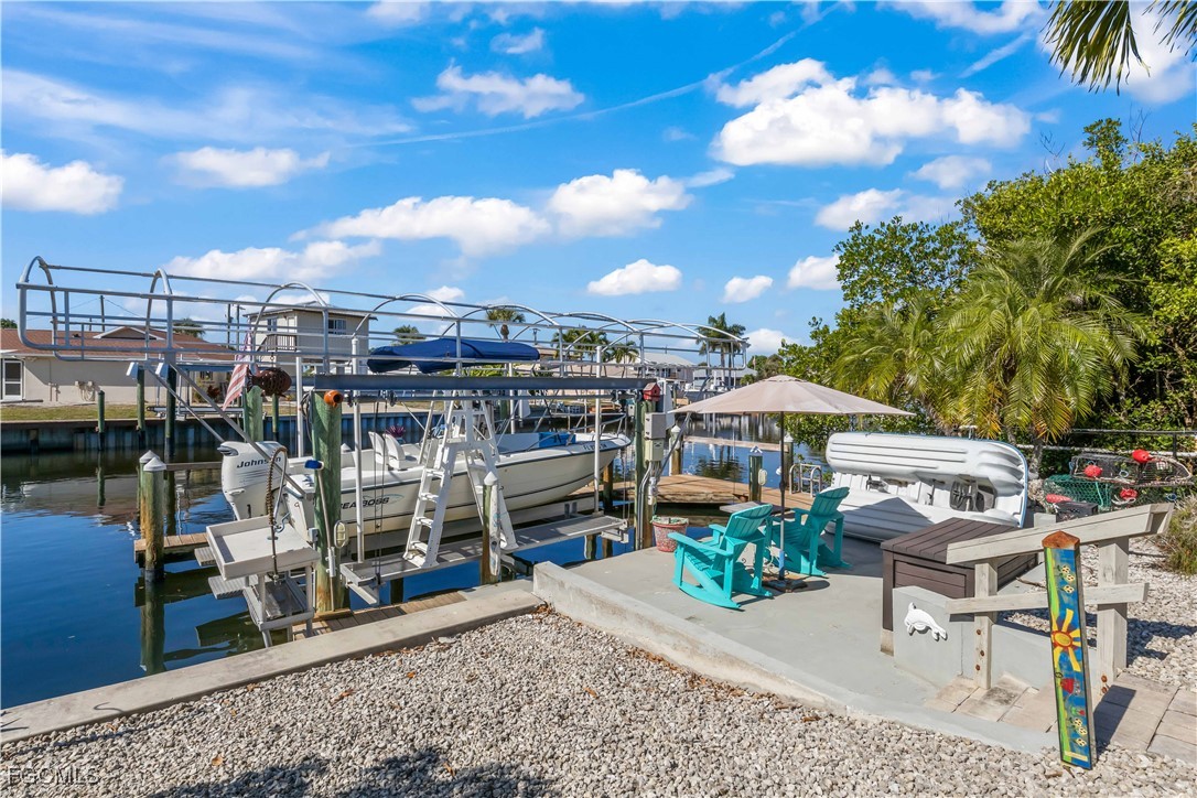 Experience True Florida Waterfront Living! Welcome to this stunning, single-family home, perfectly designed for luxury, comfort, and the ultimate Florida lifestyle. From the moment you step through the impact-resistant double doors, you are greeted by a bright, open living space filled with natural light and a seamless flow between indoor and outdoor areas. The home’s thoughtful layout ensures both entertaining and everyday living are effortless. The gourmet kitchen, completely renovated in 2023, is a chef’s dream. Featuring solid wood cabinets with pull-out drawers, Cambria quartz countertops, and brand-new stainless-steel appliances—including dishwasher, refrigerator, and washer/dryer—it combines style and functionality perfectly. Oversized pocket sliding doors frame serene water views, creating a dramatic connection to the outdoor oasis. Step outside to your private waterfront retreat: a sparkling saltwater pool with spa and child safety barrier, a custom poolside bar, and a new pool cage (2022) makes this space perfect for entertaining friends, family, or simply unwinding in peace. The custom paver driveway, tropical landscaping, and low maintenance zero scaping allow for beauty without the work, ensuring maximum relaxation. Boating enthusiasts will love the 10,000 lb. covered lift, motorhome hookup, and the brand-new dock with captain’s walk and lift canopy (2025)—all providing effortless access to the open water just minutes away. Adding to your convenience, a golf cart comes with the home, allowing you to easily explore the golf-cart-friendly community, nearby amenities, and scenic surroundings. For comfort and peace of mind, the whole-house generator and AC installed in 2023 with a warranty make this home both practical and worry-free. Located directly across from the Calusa Land Trust preserve, this property offers uninterrupted views of nature and complete privacy, guaranteeing that no future construction will obstruct your tranquil surroundings. Nestled in a golf-cart-friendly community, you can explore the area, nearby amenities, and scenic surroundings with ease. Whether you’re relaxing by the pool, entertaining at the bar, enjoying water activities, or taking in sunsets from your lanai, this home embodies the quintessential Florida waterfront lifestyle. Completely remodeled and meticulously maintained, this home isn’t just a place to live—it’s a lifestyle waiting to be enjoyed. Your dream Florida waterfront retreat awaits.