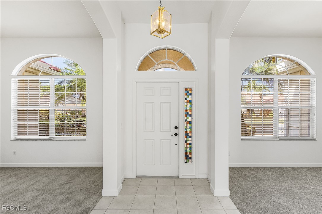 Welcome to this inviting, move-in-ready 4-bedroom, 3-full-bathroom lakefront pool home offering 2,332 sq ft of comfortable living space, a 2-car garage, and peaceful water views in the friendly gated community of Reflection Lakes. Built in 2001 and thoughtfully refreshed, this home features a brand-new roof (2023), a resurfaced pool with new tile and a freshly painted deck (2025), and brand-new carpet in all bedrooms (2025), while easy-care tile flooring flows through the main living areas and bathrooms. As you enter, soaring volume ceilings create an open, airy feel, with a formal dining room and living room up front, followed by a spacious great room that seamlessly connects the family room, casual breakfast area, and well-equipped kitchen boasting granite countertops, a center island, and a roomy pantry. One of the three full bathrooms conveniently serves as a pool bath with direct lanai access—perfect for rinsing off after a swim without tracking water through the house. Sliding doors lead to the screened lanai and sparkling pool, where southeast exposure brings gentle morning sun and shaded afternoons, framed by swaying palm trees and a serene lake view that gives the backyard a relaxed tropical vibe. Reflection Lakes is loved for its affordable $277/month HOA that includes cable, high-speed internet, lawn maintenance, and an impressive lineup of amenities: a clubhouse with fitness center, resort-style pool and separate lap pool, tennis and pickleball courts, basketball, bocce, a playground, miles of sidewalks, and private resident entry to Lakes Park. All of this is tucked into the convenient 33907 zip code, just minutes from shopping, restaurants, top-rated schools, entertainment, and southwest Florida’s beautiful beaches—yet pleasantly removed from the congestion of Daniels and Colonial corridors. If you’re searching for a solid, updated pool home on the lake in an active, welcoming neighborhood with low fees and great amenities, this is the one. Schedule your private tour today!