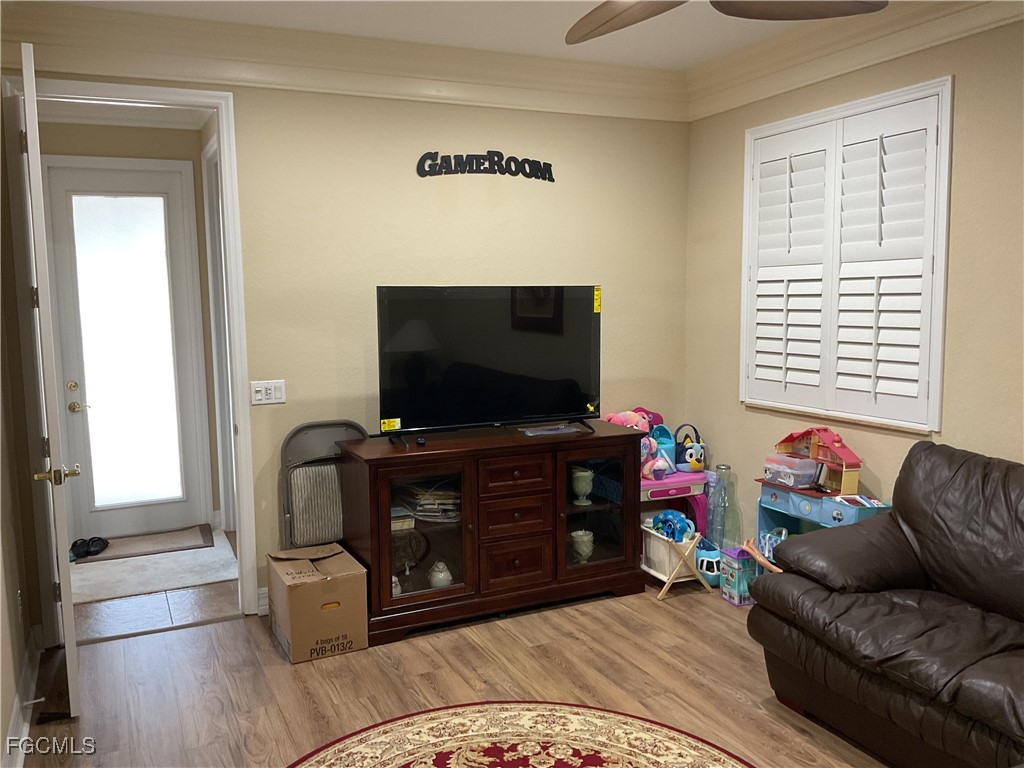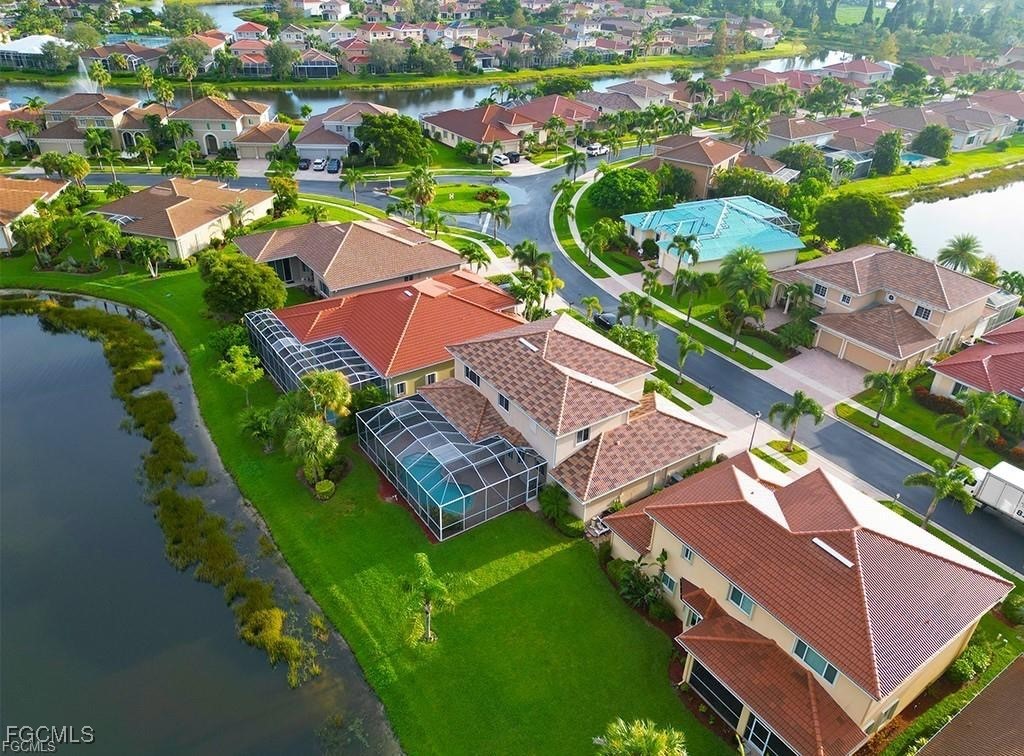 Experience the ultimate in luxury living in the exclusive gated community of Laguna Lakes, Fort Myers, Florida. This stunning lakefront residence boasts a spacious 2-story design, turnkey complete with 4 bedrooms + den, 4 bathrooms, media room, and 3-car garage. Perfect for family, entertaining, and guests, this home offers ample space. Interior features include an open floor plan, large custom chef's kitchen with island, new appliances, formal dining room, eat-in breakfast area, separate family and living room, granite countertops, crown molding, tray ceiling, and ceiling fans throughout. The expansive primary suite features luxurious walk-in closets and a his/her bathroom with separate tub and shower. Exterior highlights include a private pool overlooking the lake, perfectly positioned to capture breathtaking sunset views, and an extended lanai ideal for entertainment. The residence is equipped with power hurricane shutters. Community amenities include lawn, plant, and irrigation maintenance, clubhouse meeting room, resort-style heated pool with infinity edge, spa, kiddie pool, gym, billiards, tennis, pickleball, volleyball, fishing pier, and more. Conveniently located minutes from HealthPark Hospital, a short drive from Fort Myers beach, Sanibel, and Captiva, and close to shopping, restaurants, and the library. Schedule a private showing today in this exceptional gated community.