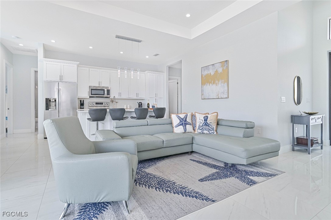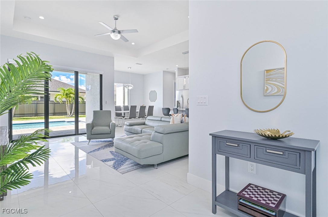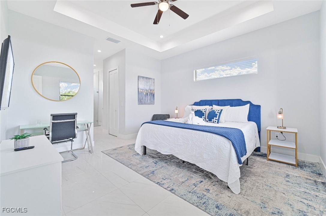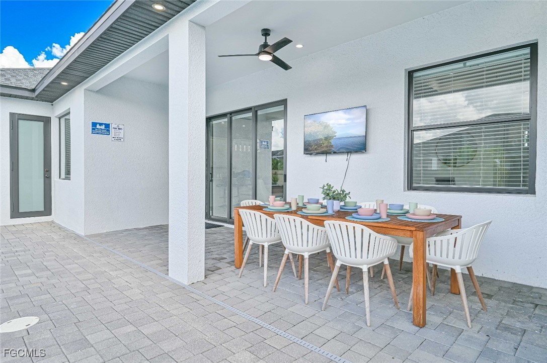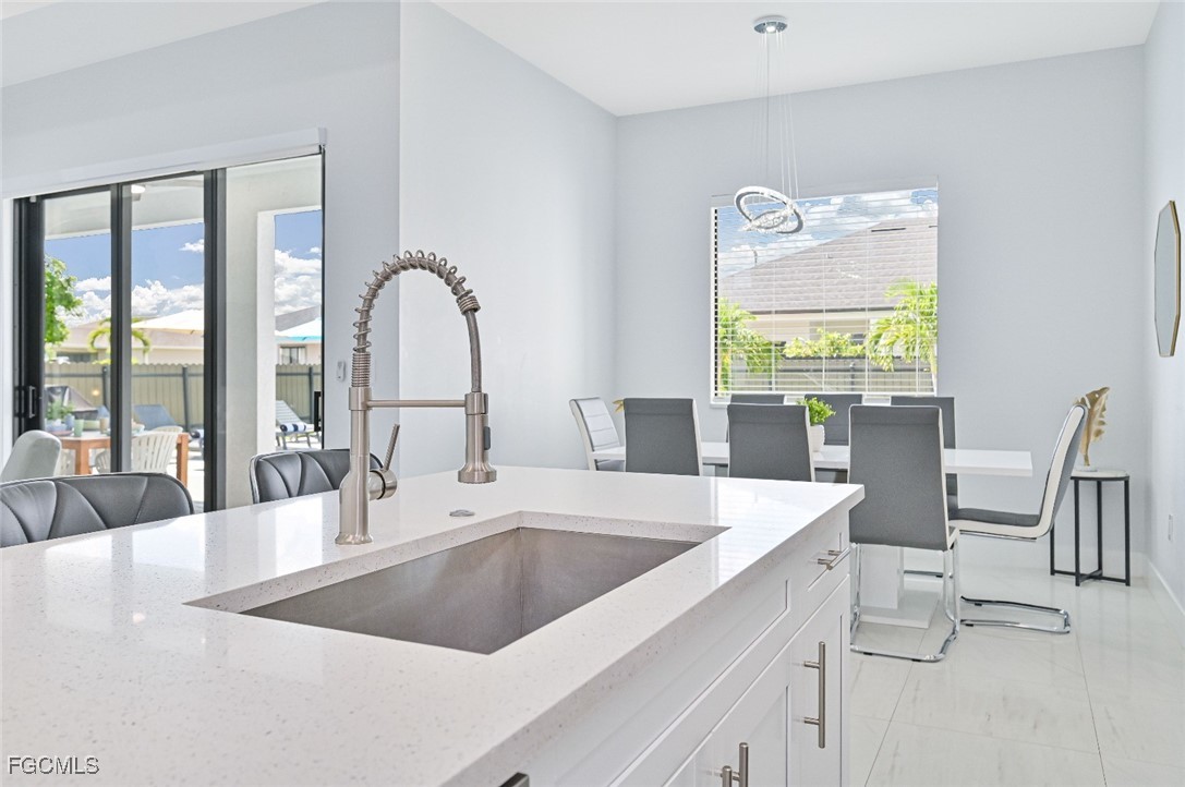 Welcome to this beautiful luxury property in the heart of Cape Coral. This 4-bedroom, 2.5-bathroom home boasts an unbeatable location, close to shopping, restaurants, parks, and top-rated schools, making it convenient for all types of families. IMPORTANT! this house IS NOT in flood Zone! It has city water and sewer. Making its value even more attractive to new buyers. The home features a modern style and hurricane-resistant windows and doors. The open design and high ceilings provide perfect natural light, highlighting every corner of the property. The kitchen features quartz countertops, stainless steel appliances, ample cabinetry, and an island with bar stools perfect for enjoying family breakfasts. The generously sized master suite includes two walk-in closets and a luxurious bathroom with double sinks, a spacious shower, and a separate toilet. Outside, the terrace boasts a family dining area, a barbecue, and a counter with a sink, ideal for food preparation at parties and family gatherings. Beyond, the amazing heated pool will be your favorite spot to relax on warm Florida afternoons. For added convenience, the easily accessible half-bath from the pool allows you to feel even more comfortable while relaxing on the terrace. Don't wait any longer and schedule a visit; this incredibly welcoming home could be your new Florida home!