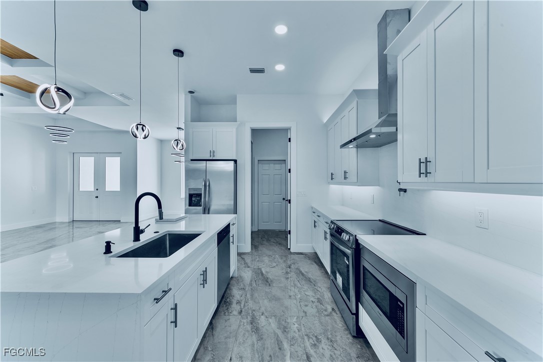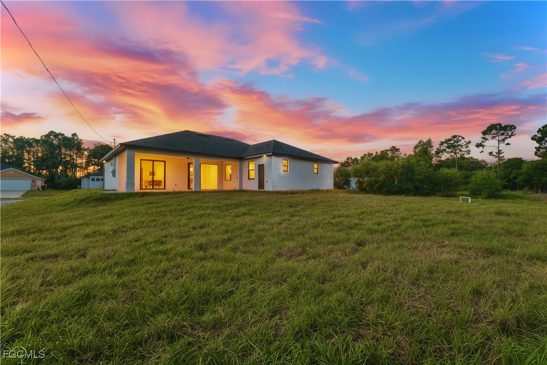 The sellers are open to negotiations and offering allowance towards closing costs! MAGNIFICENT 2025 LUXURY HOME | 4 BED / 4 BATH | HALF-ACRE CANAL LOT | WEST SIDE Welcome to this brand-new 2025-built 4-bedroom, 4-bath home showcasing luxury upgrades throughout, located on a half-acre dead-end lot beside a peaceful canal in the highly desirable West Side. This stunning property features grand elevations with High multiple tray and coffered ceilings plus accent paneling, 8-ft single-panel doors, and farmhouse double entry doors. Enjoy a modern open floor plan with an accent wall and electric fireplace, premium fixtures, and impact doors and windows with refreshing large picture-frame and horizontal designs. The gourmet kitchen offers quartz waterfall countertops, quartz backsplash with pot filler, modern hood, Illuminated shaker cabinets with crown molding & light rail, accented island paneling, and high-end stainless steel appliances, including a base microwave cabinet. Bathrooms feature frame-less glass walk-in showers with built-in niches, benches, and multiple shower heads, custom mirrors, and oversized vanities. Outdoor living includes oversized tiled front and rear porches with outdoor kitchen plumbing & electric ready, admirable pavers around the perimeter, and an elongated driveway—perfect for entertaining or relaxation. Additional features: Under-air laundry room with storage shelving Custom closet cabinetry throughout Pendant & recessed lighting Attractive wooden window sills & Quality hardware Not in a flood zone Stem Wall foundation This home delivers style, function, and craftsmanship in every detail. A true West Side gem—move-in ready and built to impress! Minutes to all major amenities & a quick commute to Fort Myers, SCHEDULE YOUR SHOWING TODAY.
