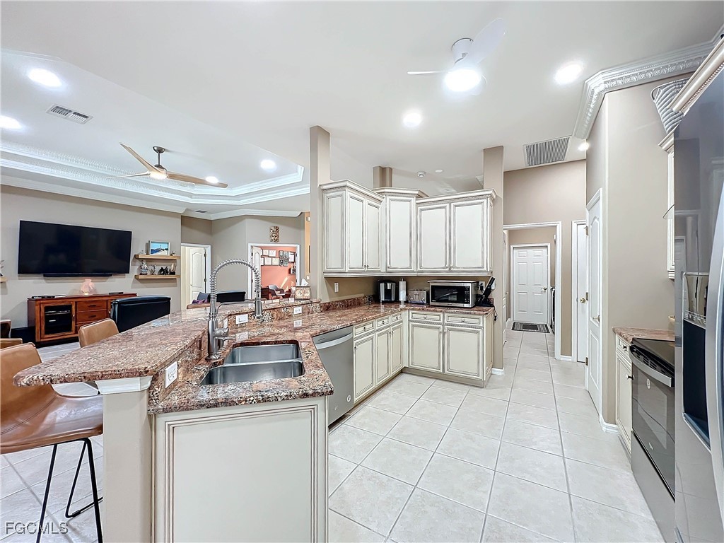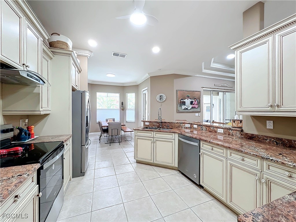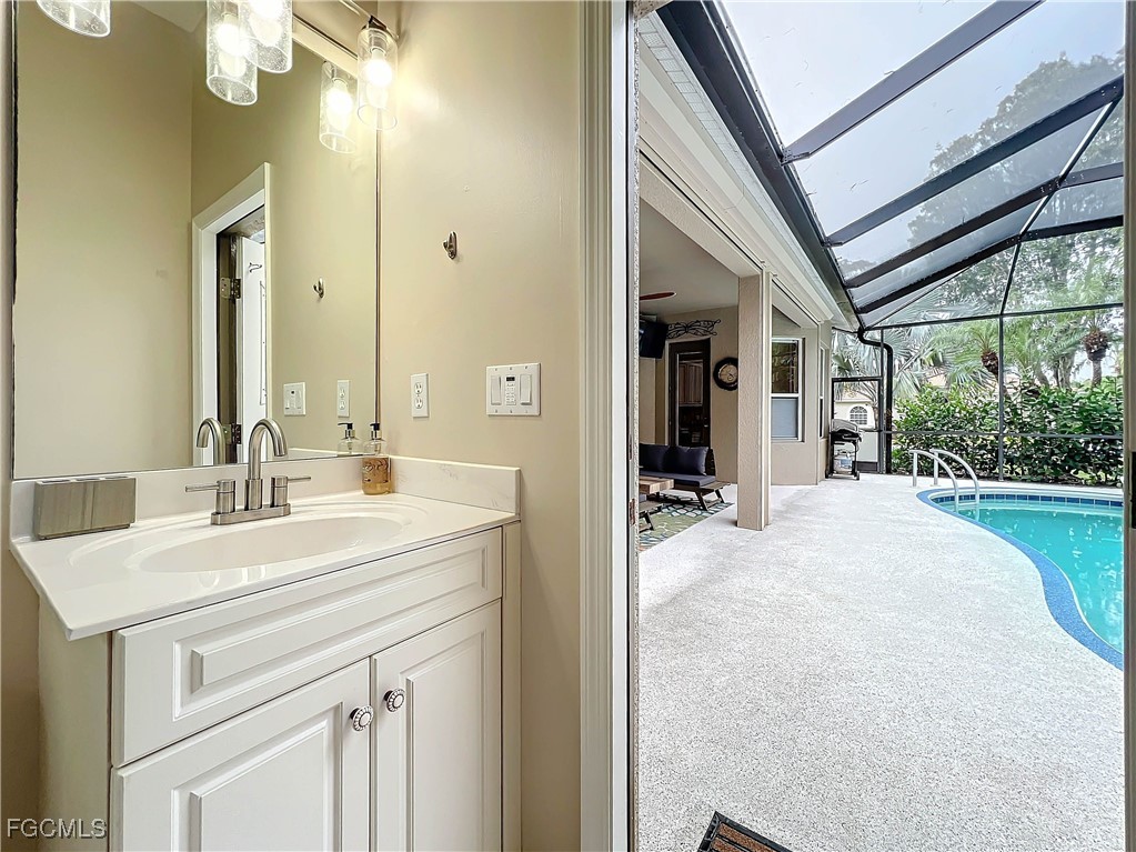 SPECTACULAR St Charles model w Preserve views and sits on a quite cul-de- sac . This 3 BR, 3BA, Den (office or 4th Bedroom), has Formal Dining Room, 2.5 Garage with room for Golf Cart, the home has a view of the 12TH green of the Sabal Course. All new designer fans and lights . The Sliding glass doors let you Enjoy the Sparkling pool and spa with a full Pool Bath in the Extended Enclosed Lanai and patio. Updated Kitchen has 42" kitchen cabinets, with two pantries and granite countertops and a custom laundry room. You will enjoy the walk-in Jacuzzi tub and Shower in 2nd bath and upgraded Granite countertop & sink . Master BATH HAS NEW GRANITE COUNTER TOPS AND DESIGNER SINKS with Tub and Shower. There is New Laminate flooring in bedrooms. 5 Wall Mounted TV's, Whirlpool Stove, Refrigerator and Dishwasher, includes Washer and Dryer. Outdoors is enhanced w/extensive landscaping all around, well maintained ESTATE home. Home has Alarm system and electric Hurricane shutters in the back Lanai Enjoy the Florida lifestyle in this award-winning community. Heritage Palms is a bundled golf community with 36 holes of golf, tennis, pickle ball, formal dining room and library. The new OASIS Bar & Grill and Resort style Pool coming 2025. Enjoy the virtual tour and call for private showing!
