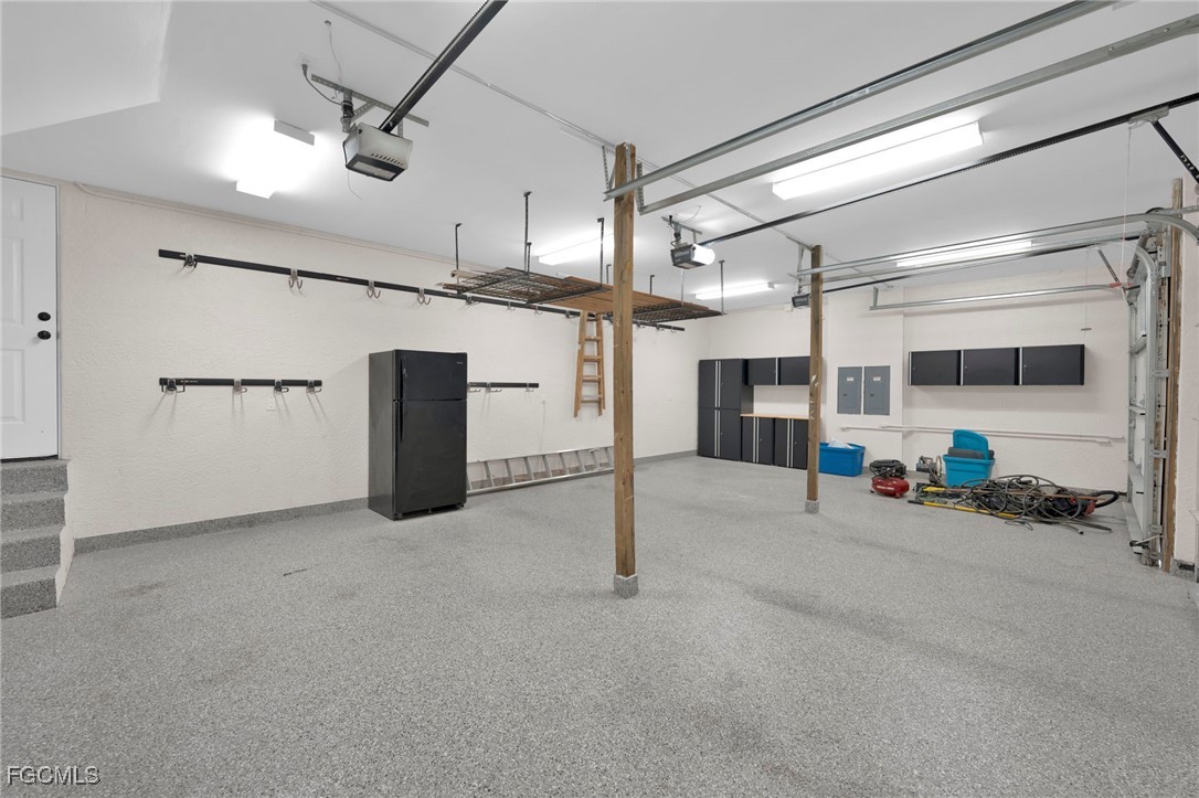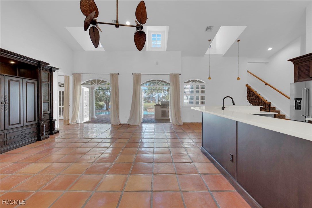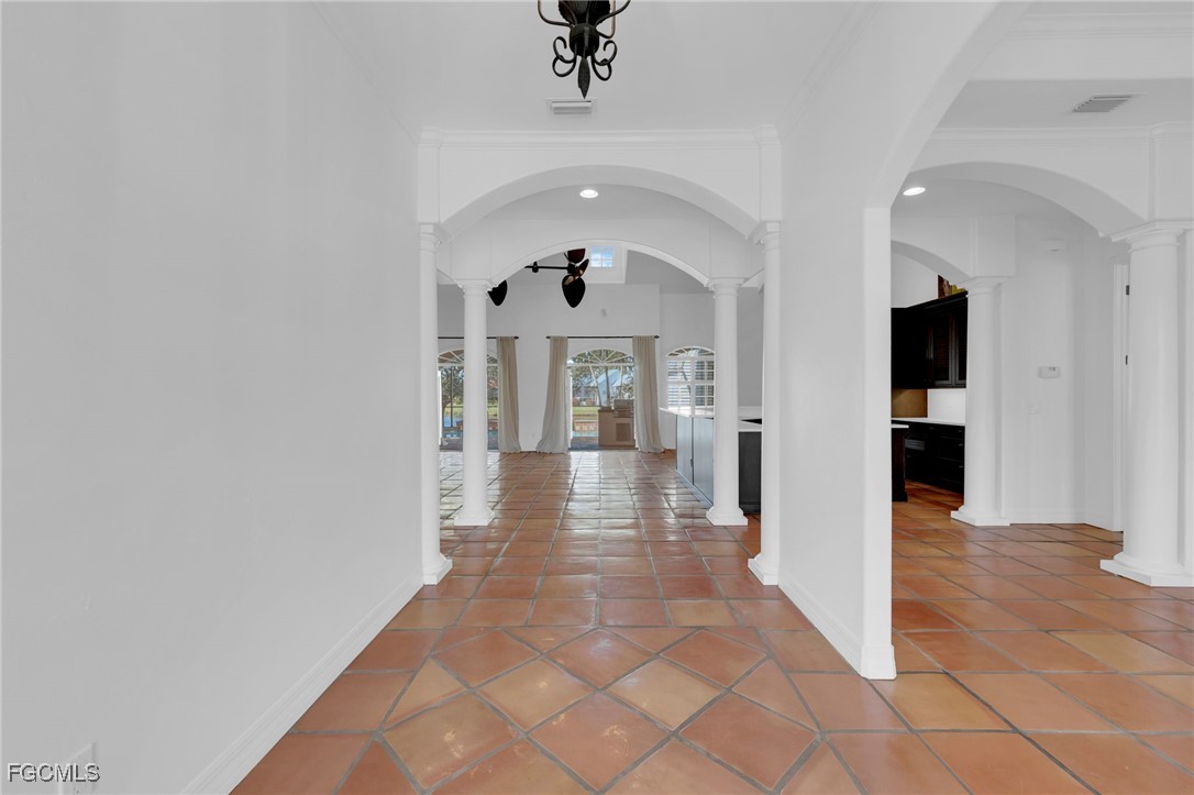 The large game room (600+ sq. ft.) features a wet bar and flexible space for entertainment, a pool table, or home office. Additional highlights include: 3-car garage with workshop space, garage fridge, and cabinets, new AC, new roof (2023, tile), new interior doors, plantation shutters, exterior paint, generator piping and ample storage throughout.