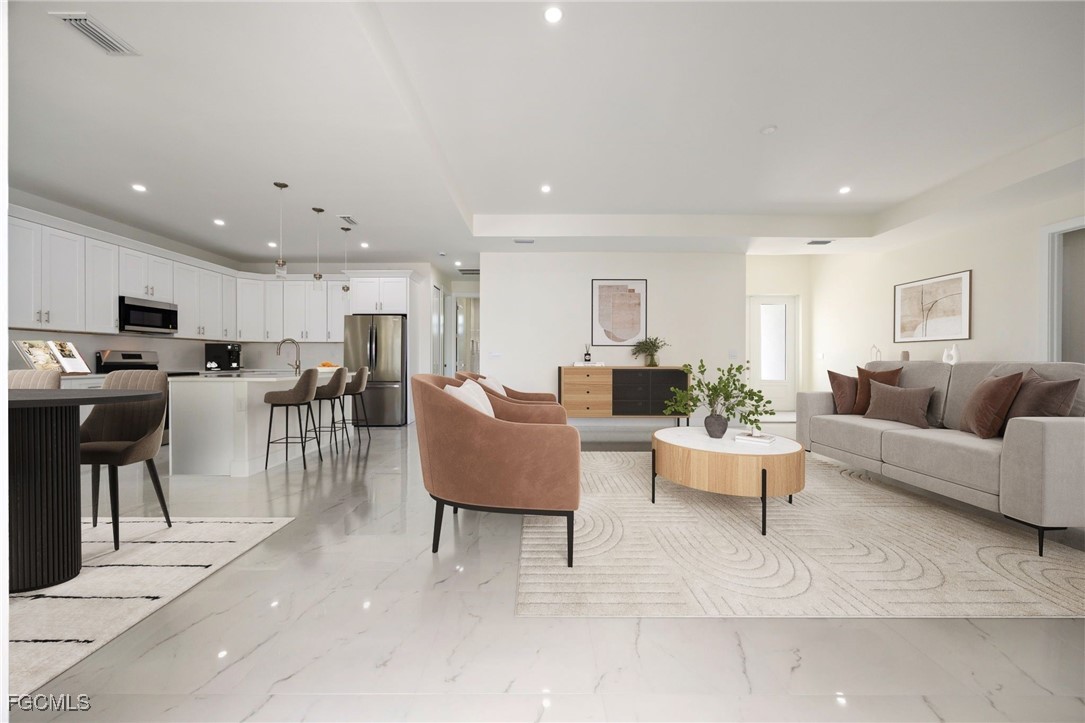 Welcome to this beautifully crafted, brand-new home offering the perfect blend of modern design, quality construction, and long-lasting peace of mind. Built with durable CBS construction and topped with a sleek metal roof, this property is engineered for longevity. Hurricane impact windows and doors ensure superior protection and energy efficiency, while bright white and gray ceramic tile flooring flows throughout the 1,710 sq. ft. of air-conditioned living space, creating a clean and inviting atmosphere.