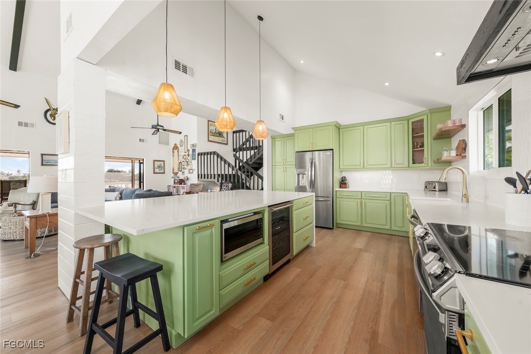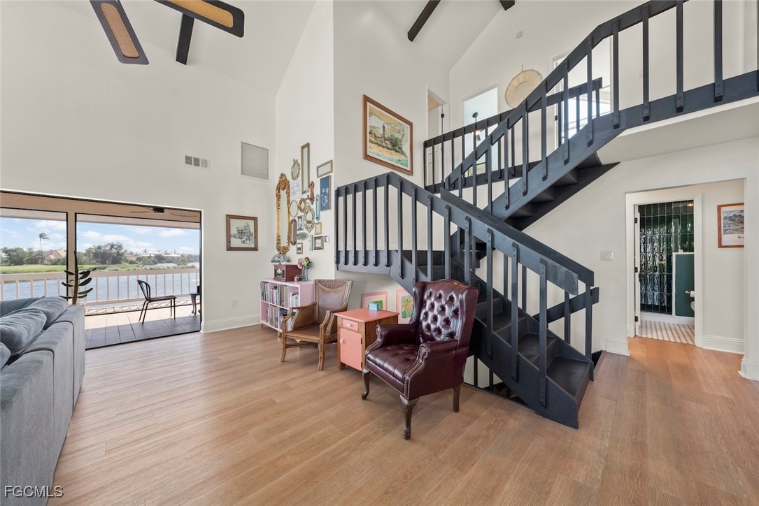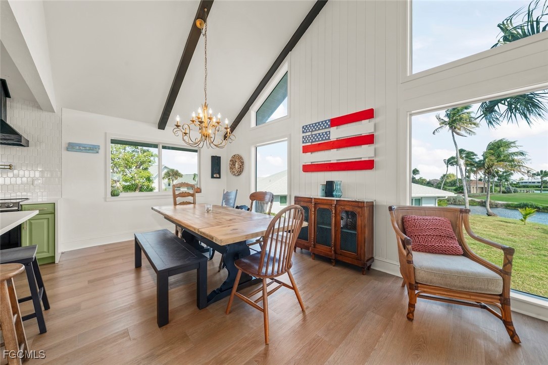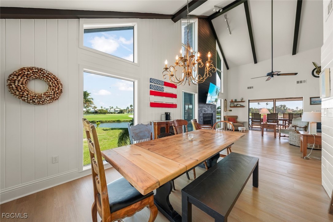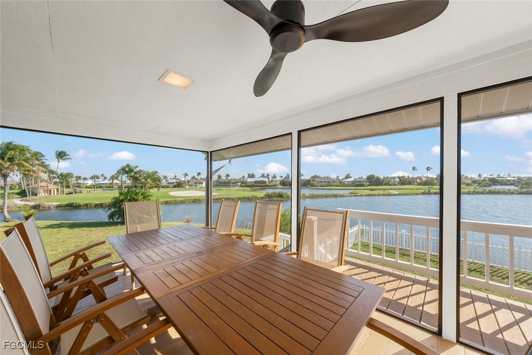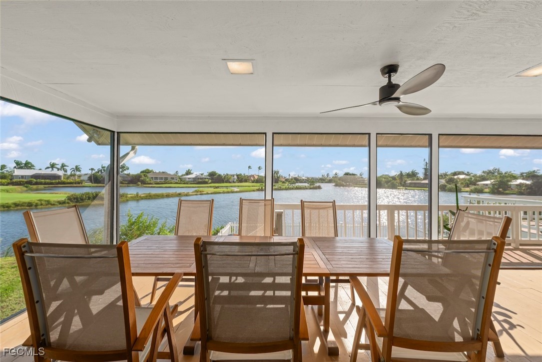 Panoramic lake and golf course views from this elegant island retreat in The Dunes!Welcome to this beautiful home perfectly positioned on Mockingbird Drive within the desirable Dunes Golf, Tennis & Pickleball Club community. Set on a quiet cul-de-sac, this property captures sweeping views of the golf course lake and fairways of holes 5 and 6, offering a picturesque backdrop for both sunrise and sunset enjoyment.Step inside to an inviting open floor plan highlighted by vaulted ceilings, hardwood floors, and a cozy fireplace, creating a warm and relaxed island atmosphere. The impact-rated windows and doors allow natural light to fill the home while providing peace of mind, and the durable metal roof adds lasting value and protection.The primary suite and a second bedroom are conveniently located on the main living level, each with access to the spacious screened porch and open deck — perfect for enjoying morning coffee or evening breezes overlooking the lake. Upstairs, two additional bedrooms and a full bath provide comfort and privacy for family and friends.The enclosed non-conforming lower level offers additional flexibility — ideal for fitness, crafts, or storage — while preserving valuable above-flood living space. An interior staircase connects the lower level and garage area seamlessly to the main living level, providing convenient access throughout the home. A pavered driveway leads to multiple garage bays with ample room for vehicles, golf carts, and island gear.Living in The Dunes means enjoying one of Sanibel’s most welcoming communities, with optional membership opportunities for golf, tennis, pickleball, and social activities. The location provides easy access on and off the island while keeping you close to Sanibel’s shops, restaurants, and world-renowned beaches celebrated for their shelling, wildlife, and natural beauty.This home is offered turnkey furnished and ready for you to move in and begin enjoying the best of Sanibel’s island lifestyle — where comfort, community, and the sanctuary setting come together beautifully.