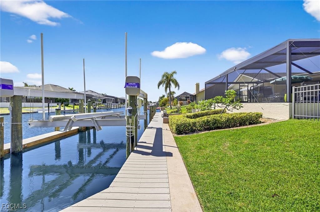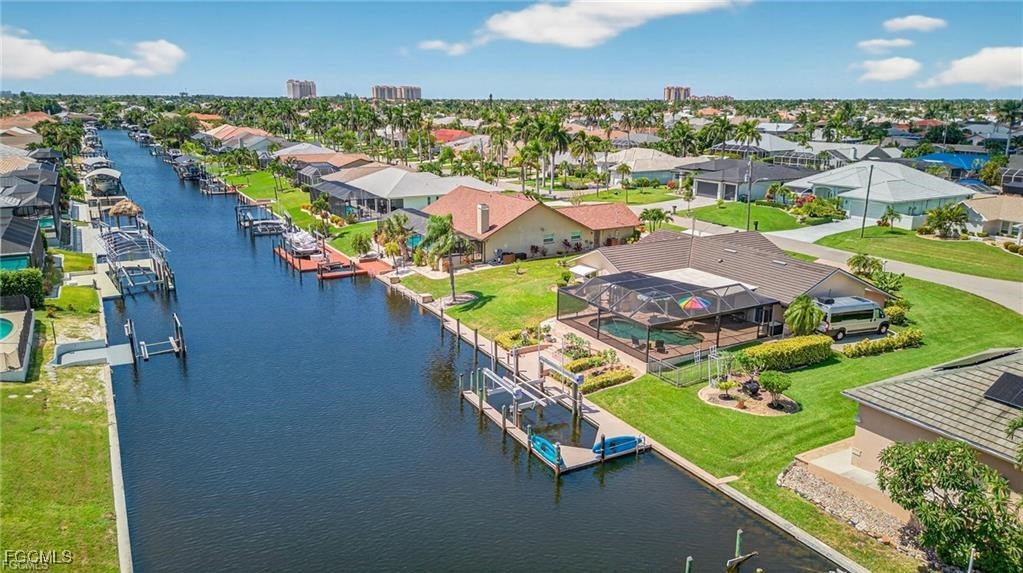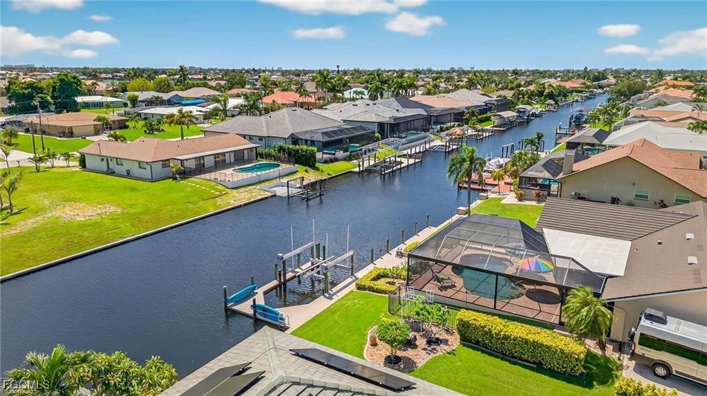 - - SAILBOAT ACCESS/NO BRIDGES - - Impressive Gulf Access Canal + Pool Home in SW Cape Coral - OVERSIZE LOT - CAPT'S WALK + LONG COMPOSITE DOCK & 16K# BOAT LIFT - HIGH & DRY/NO FLOODING IN THIS HOME - NEW, HIGH END ROOF - BEAUTIFUL HEATED POOL W/ SALT WATER SYSTEM - ONLY 15 MINUTES TO RIVER & 2 BEAUTIFUL MARINAS - IN THE COVETED SOUTHWEST AREA OF CAPE CORAL - PEACEFUL CUL DE SAC - IMPACT WINDOWS AND SLIDERS - WOW!!! Additionally: Side yard parking space for boat, trailer, and RV with 30 amp charging outlet, prewired for generator, lush well kept lawn with irrigation system, lanai flat roof has been enhanced with two layers of Tropicool 100% silicone roof coating. The inside of the home is well maintained and has matching tile throughout. It is located in a beautiful and convenient area, offering easy access to restaurants and shopping destinations. Rotary Park with walking trails, playground, and dog park is just 1.5 miles. Key amenities are nearby, including Publix, which is less than 2 miles away, Sanibel/Fort Myers Beach bridges are only 12 miles, and the airport is a short 16-mile drive. [All measurements are approximate] This is a fantastic area to call home, offering the best of Southwest Florida living. With your boat practically in your backyard, you're primed for endless adventures: fishing, discovering serene little beaches, delightful days on the bay, or trips to the nearby islands of Sanibel, Fort Myers Beach, Captiva, exploring the beauty of Charlotte Harbor, or even venturing further to Key West!