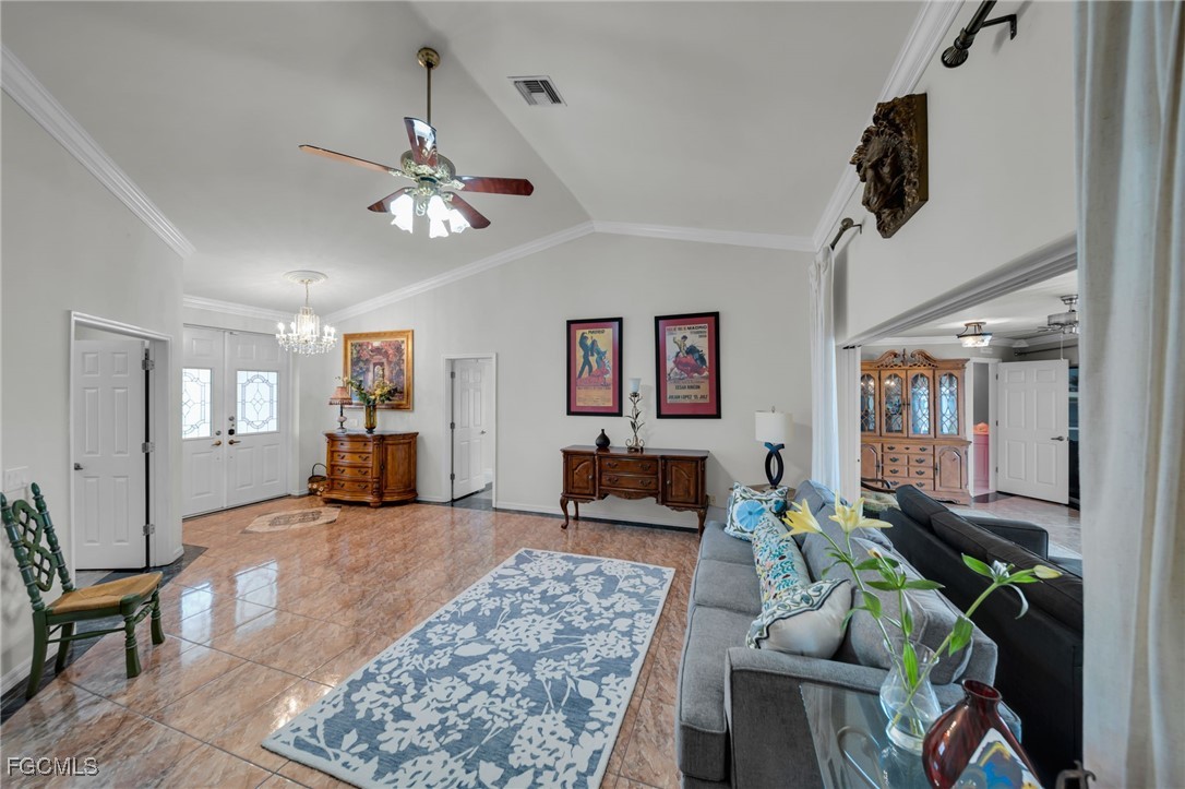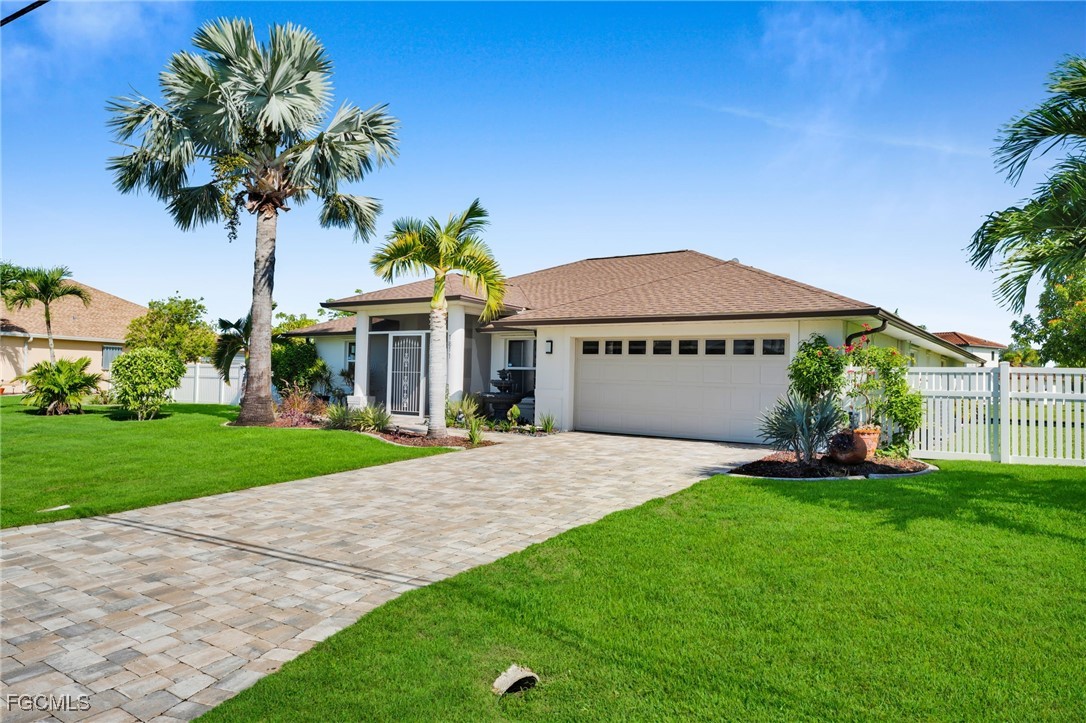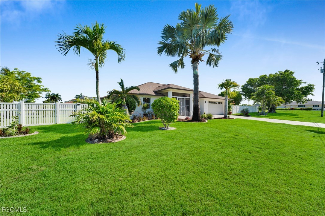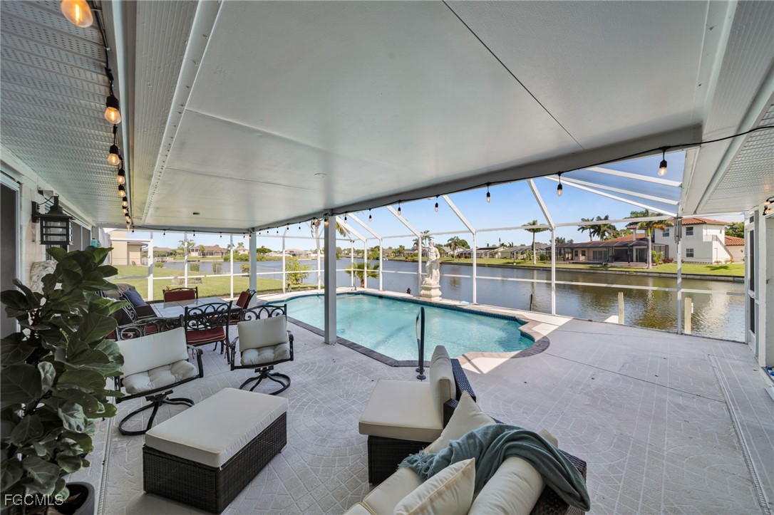 No Flood Insurance Required for this Beautiful Lakefront Home on a Half Acre Lot! Step into your own Florida dream lifestyle with this exceptional lakefront and canal-access home, tucked away on an extraordinary four-lot parcel in the heart of Cape Coral. From the moment you arrive, you'll be captivated by the serene water views, the relaxing outdoor amenities, and the expansive, modern living spaces designed for both comfort and entertaining. This sprawling 4-bedroom, 3-bathroom residence offers nearly 2,700 square feet total space — including a beautifully integrated Florida room/lanai, seamlessly blending indoor and outdoor living. With its generous size, this space is ideal for a second living area, poolside entertaining, or a peaceful morning coffee spot overlooking the water. There’s even a full bathroom connected to the lanai, making post-swim transitions a breeze. Enjoy the best of Florida living with your screened-in pool, private boat dock, and direct canal access — perfect for boating, fishing, or simply soaking in the tranquility of the water from your own backyard oasis. The newer roof (2020) and updated A/C system (2022) provide peace of mind, while fully paid assessments and a no flood insurance requirement add to the home’s value and convenience. Inside, you'll find spacious bedrooms, and natural light pouring into every corner. For added convenience, the home is available partially furnished, offering flexibility for those seeking a move-in-ready experience or a seasonal retreat — though furnishings can be negotiated to suit your vision. Located in a quiet, established neighborhood, yet just minutes from local supermarkets, dining, schools, and entertainment, this home offers the rare blend of privacy, and location — all on a one-of-a-kind oversized property. Homes like this don’t come around often — this is your chance to own a spacious waterfront retreat in one of Southwest Florida’s most desirable areas. Whether you're looking to unwind in your backyard sanctuary, entertain guests by the pool, or cruise the canals from your private dock, this home delivers the lifestyle you've been dreaming of.